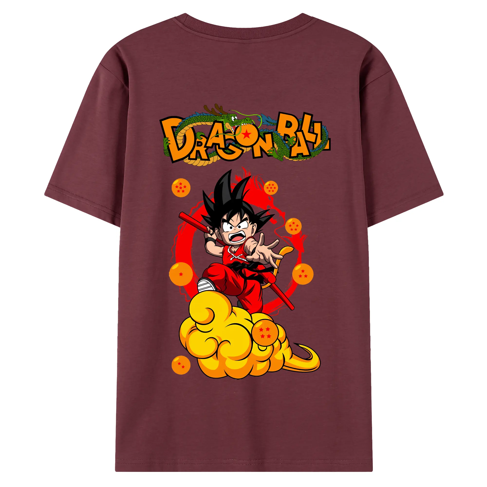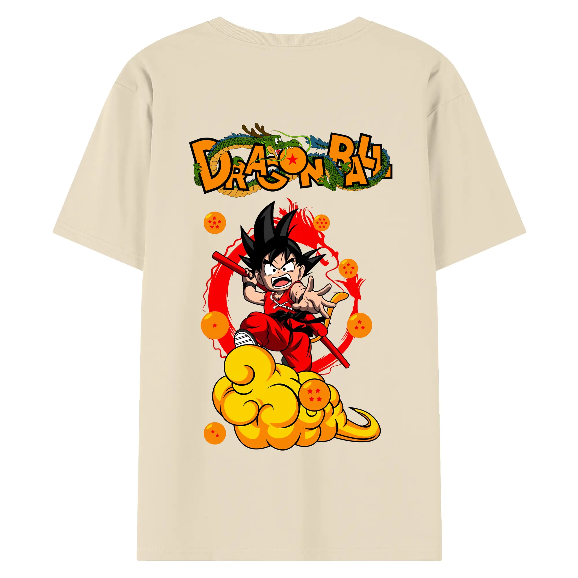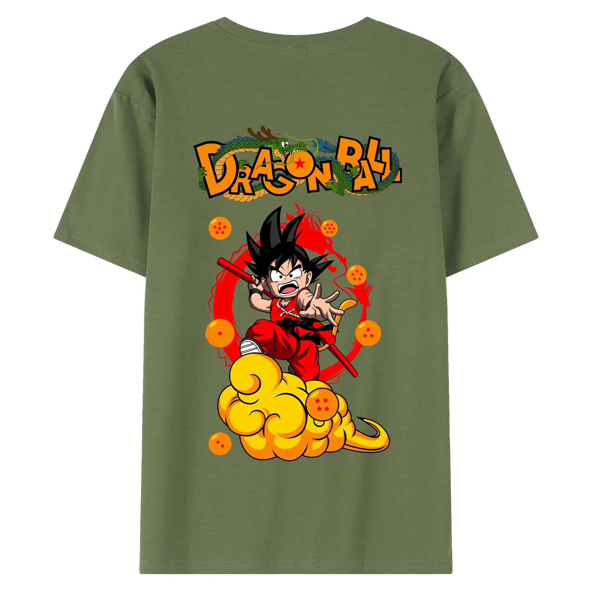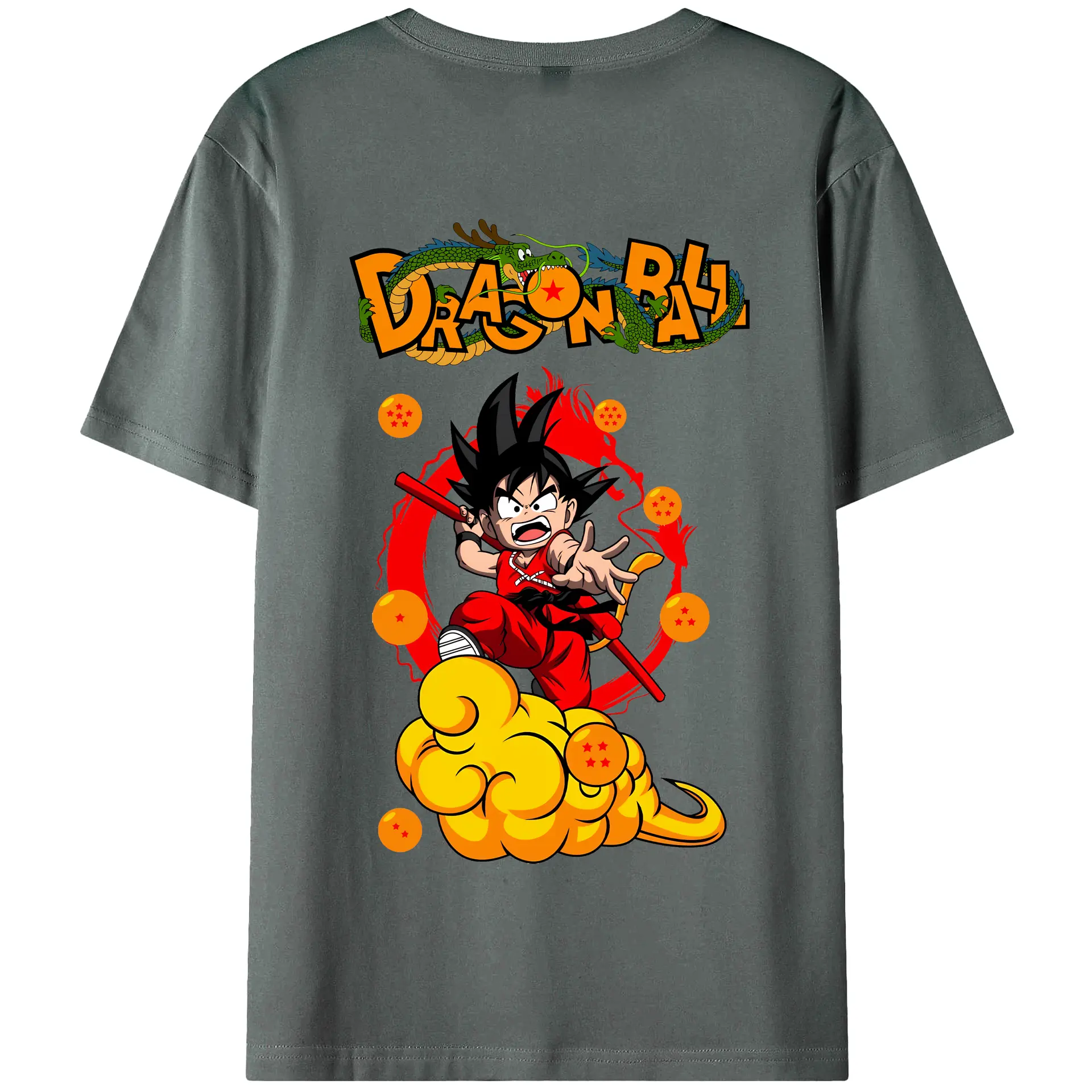 ドラゴンボール グッズ 孫 悟空 - 綿100% ヴィンテージ風 半袖Tシャツ ・ 背面プリント ・ 柔らか肌触り ・ 通気性 快適 ・ スポーツ カジュアル 外出用