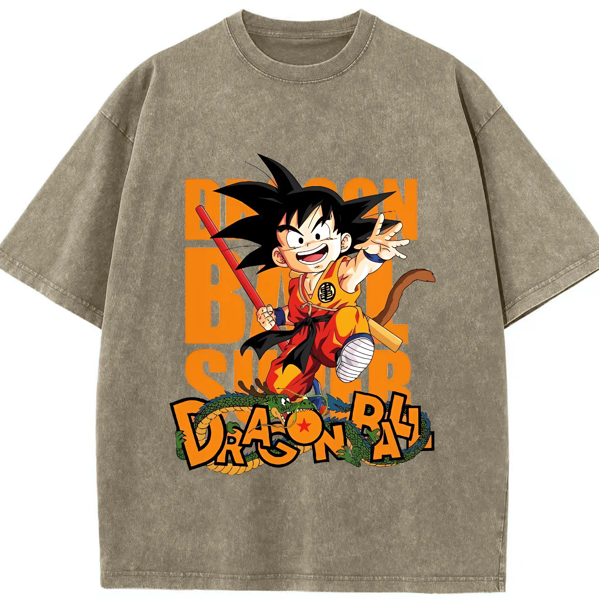 ドラゴンボール グッズ 孫 悟空 - 綿100% ヴィンテージ風 半袖Tシャツ ・ フロントプリント ・ 柔らか肌触り ・ 通気性 快適 ・ スポーツ カジュアル 外出用