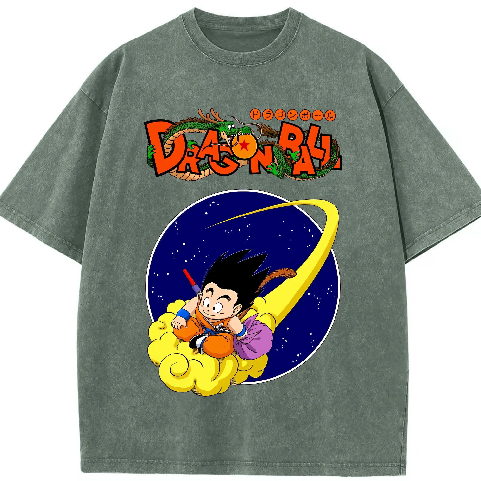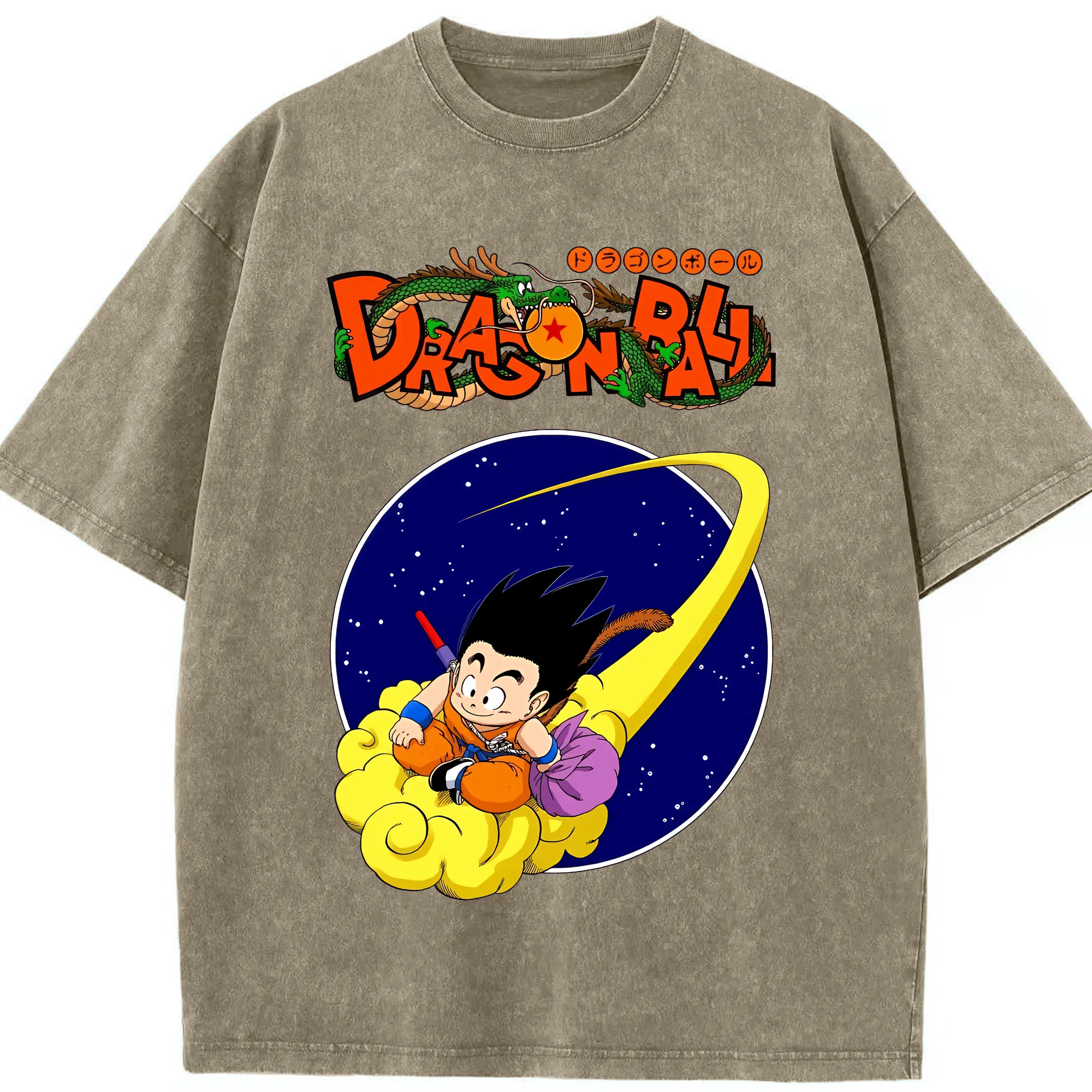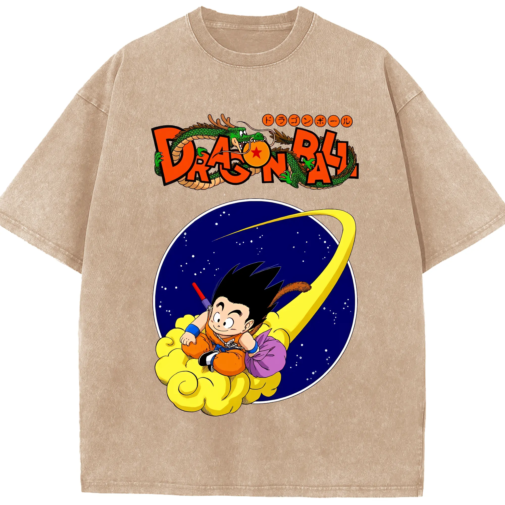 ドラゴンボール グッズ 孫 悟空 - 綿100% ヴィンテージ風 半袖Tシャツ ・ 背面プリント ・ 柔らか肌触り ・ 通気性 快適 ・ スポーツ カジュアル 外出用