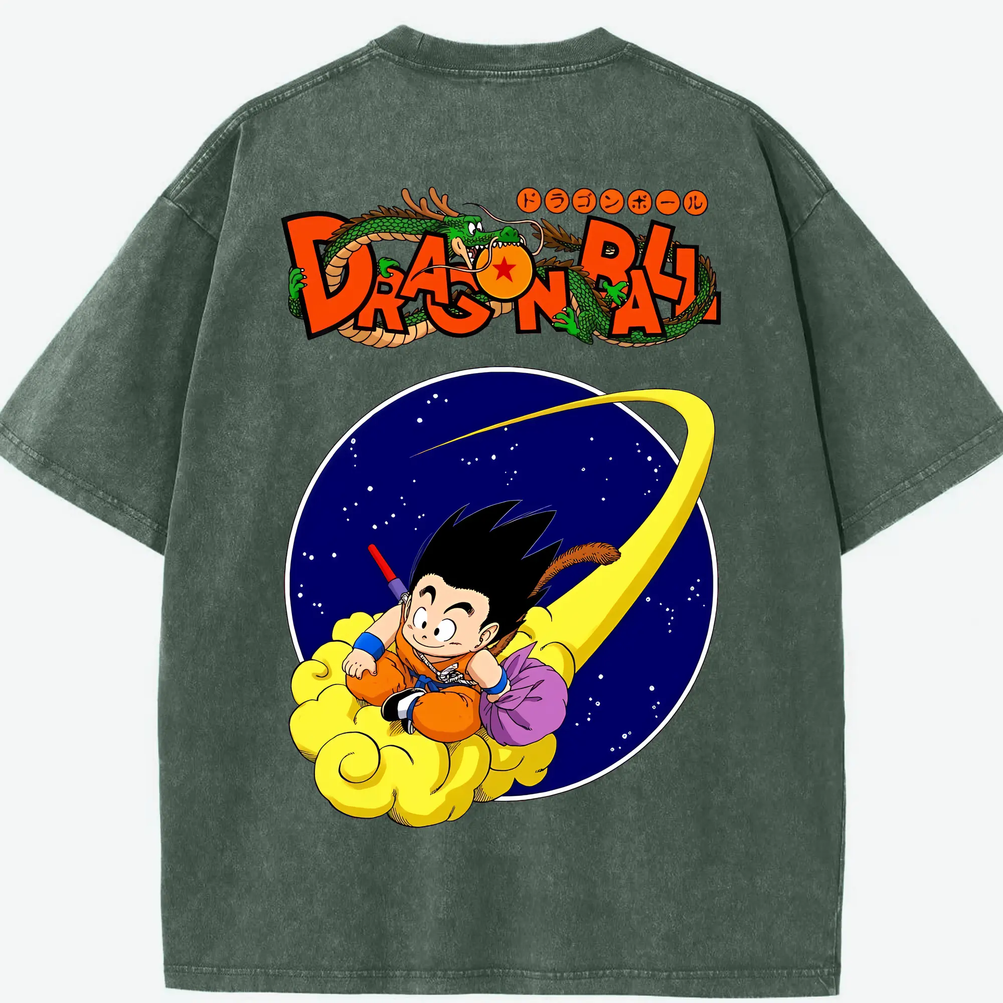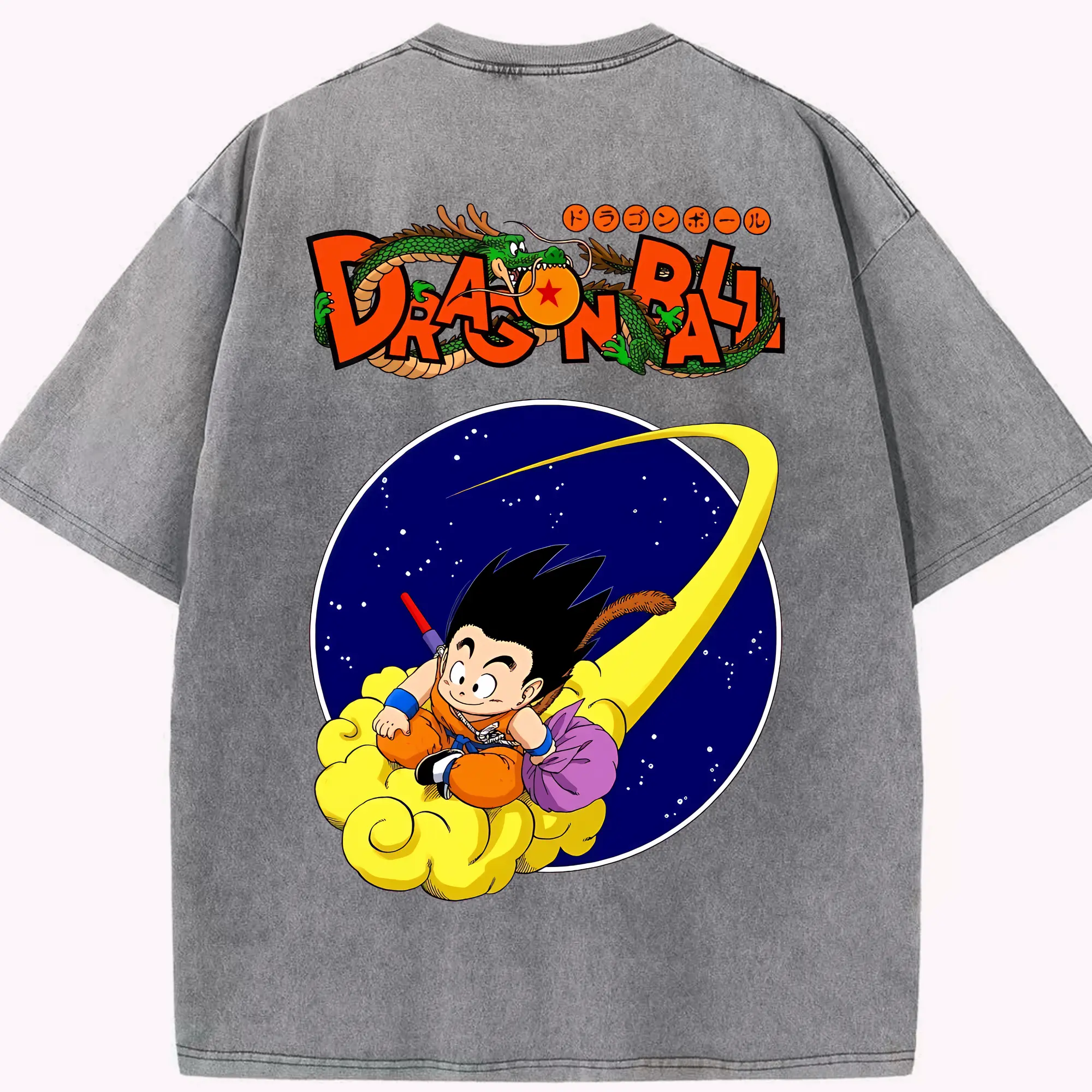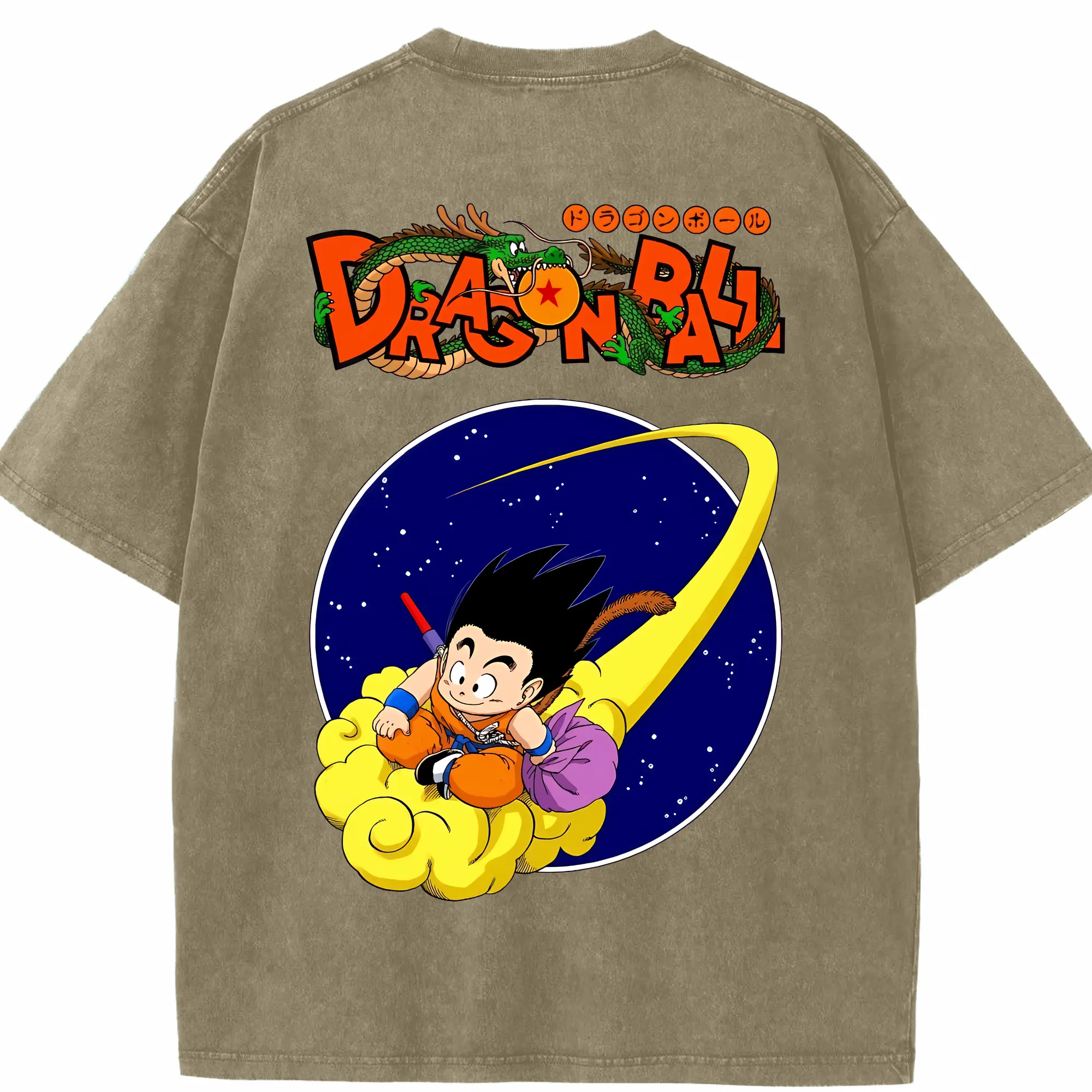 ドラゴンボール グッズ 孫 悟空 - 綿100% ヴィンテージ風 半袖Tシャツ ・ フロントプリント ・ 柔らか肌触り ・ 通気性 快適 ・ スポーツ カジュアル 外出用
