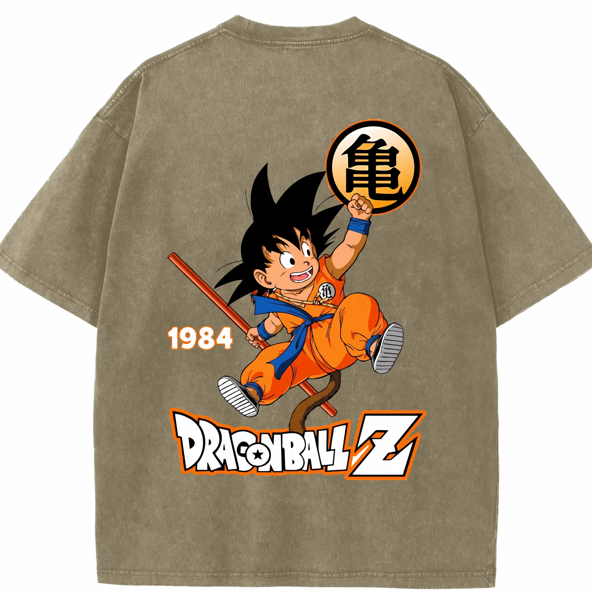 ドラゴンボール グッズ 孫 悟空 - 綿100% ヴィンテージ風 半袖Tシャツ ・ フロントプリント ・ 柔らか肌触り ・ 通気性 快適 ・ スポーツ カジュアル 外出用
