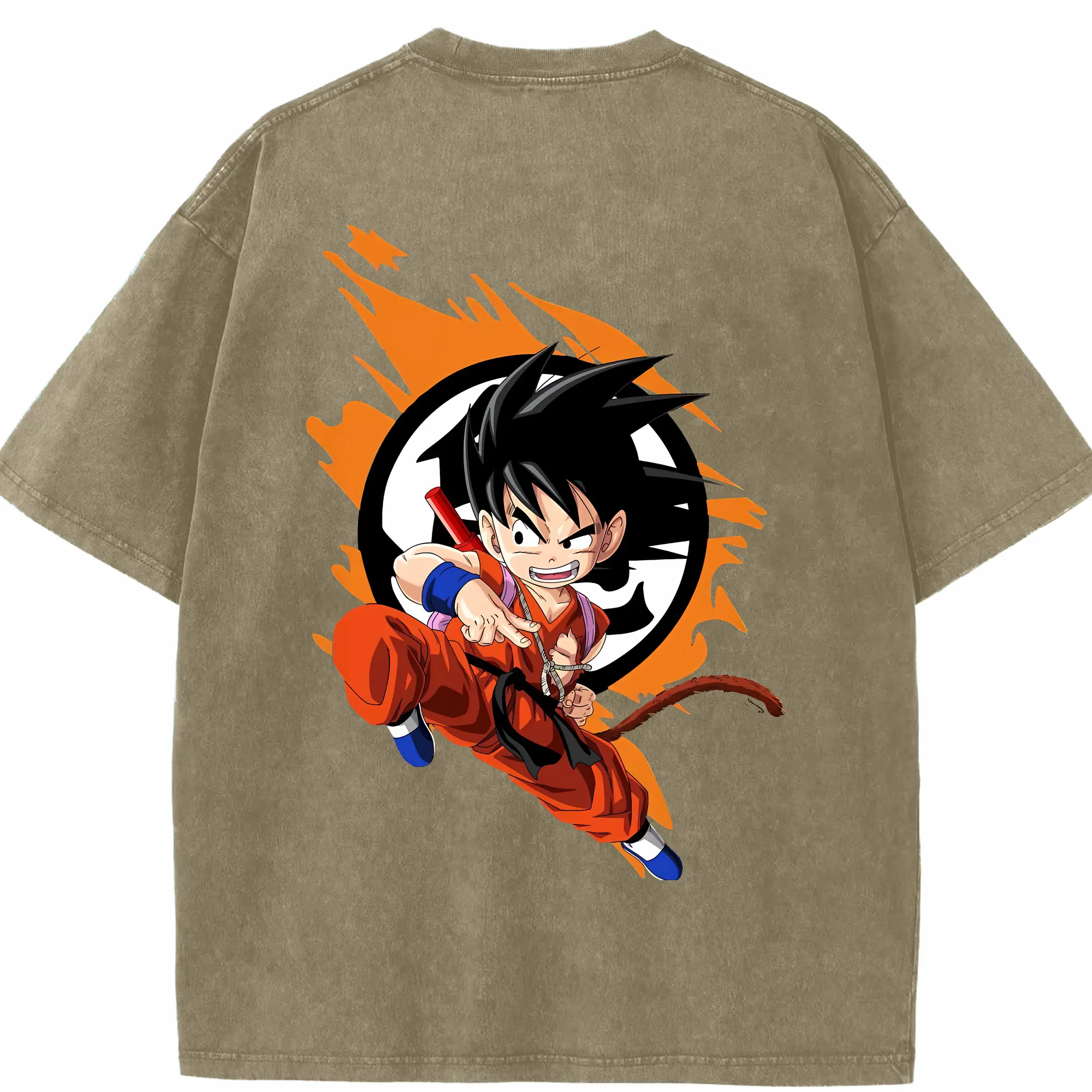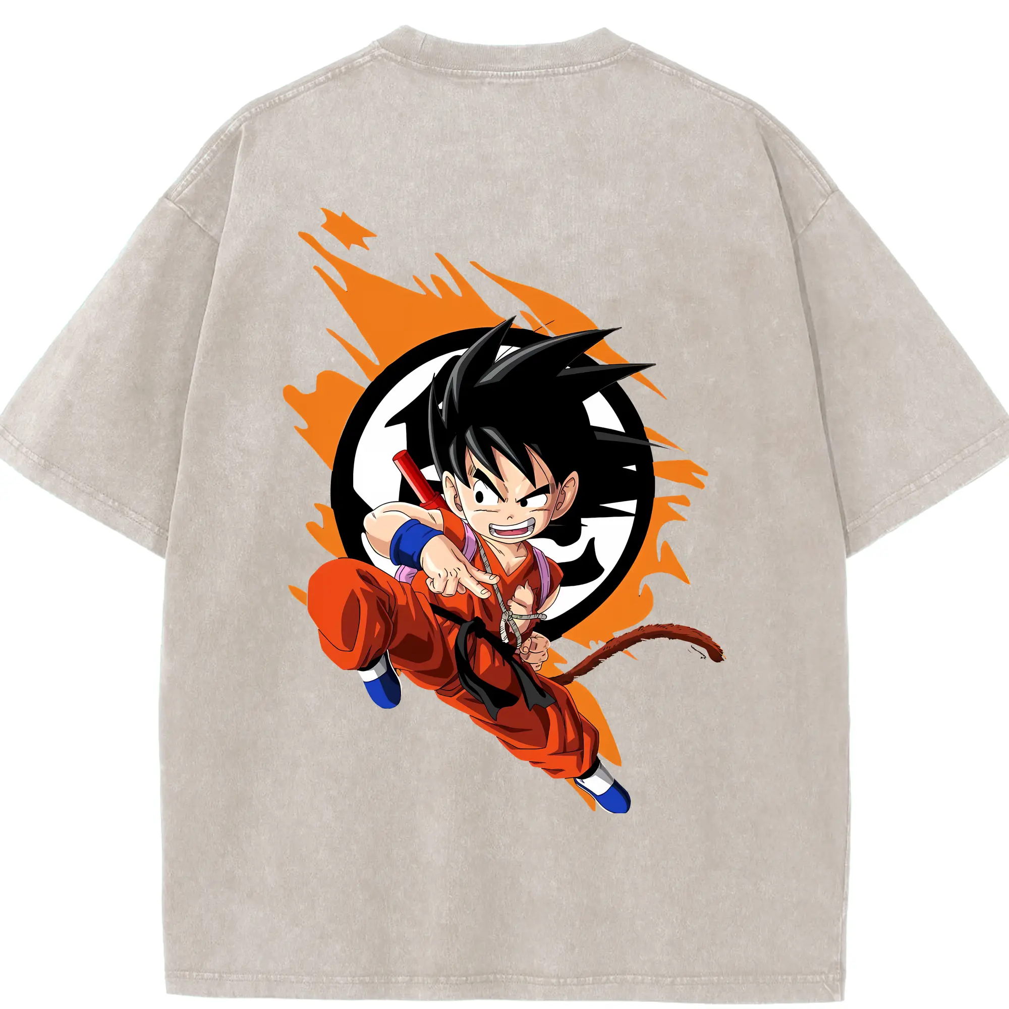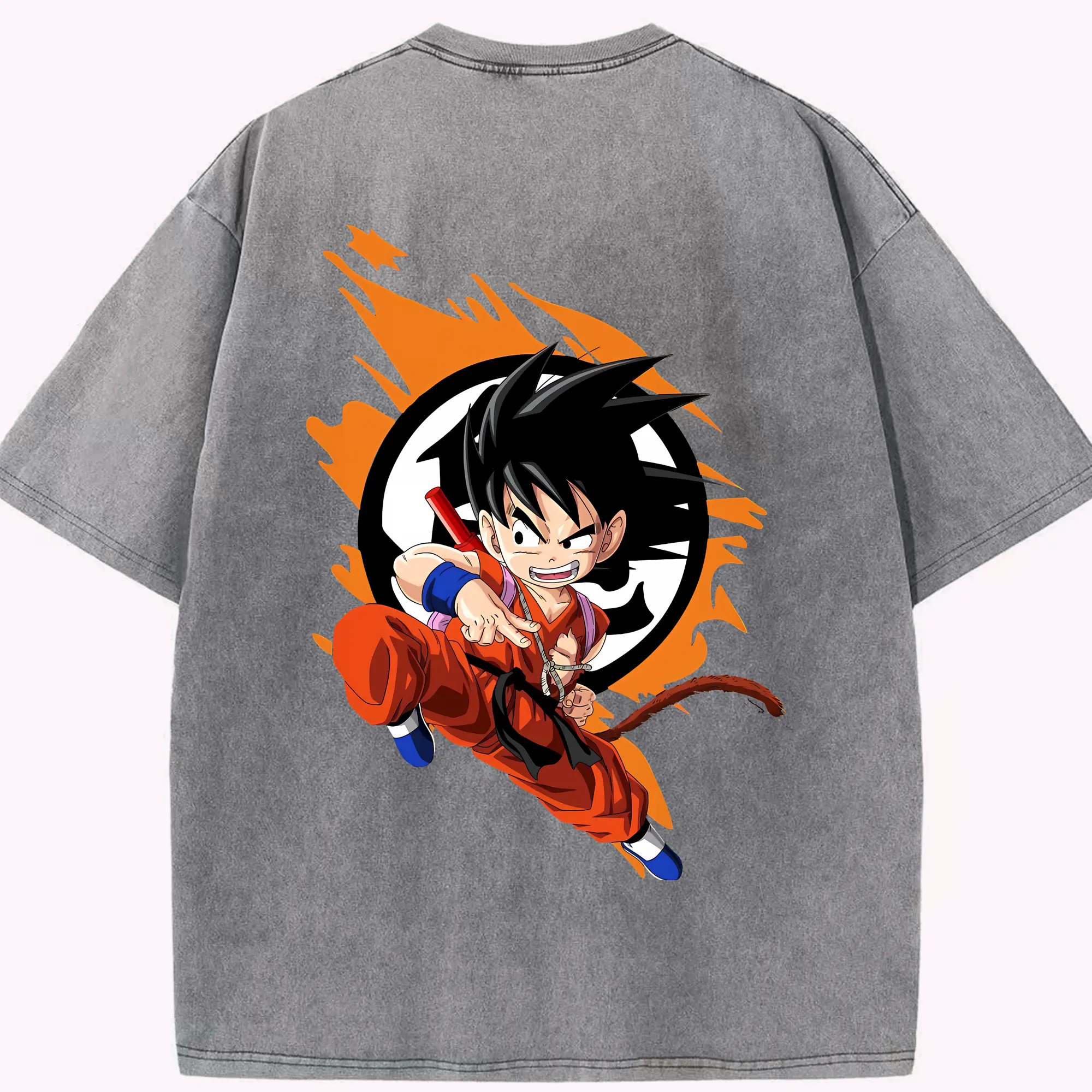 ドラゴンボール グッズ 孫 悟空 - 綿100% ヴィンテージ風 半袖Tシャツ ・ フロントプリント ・ 柔らか肌触り ・ 通気性 快適 ・ スポーツ カジュアル 外出用