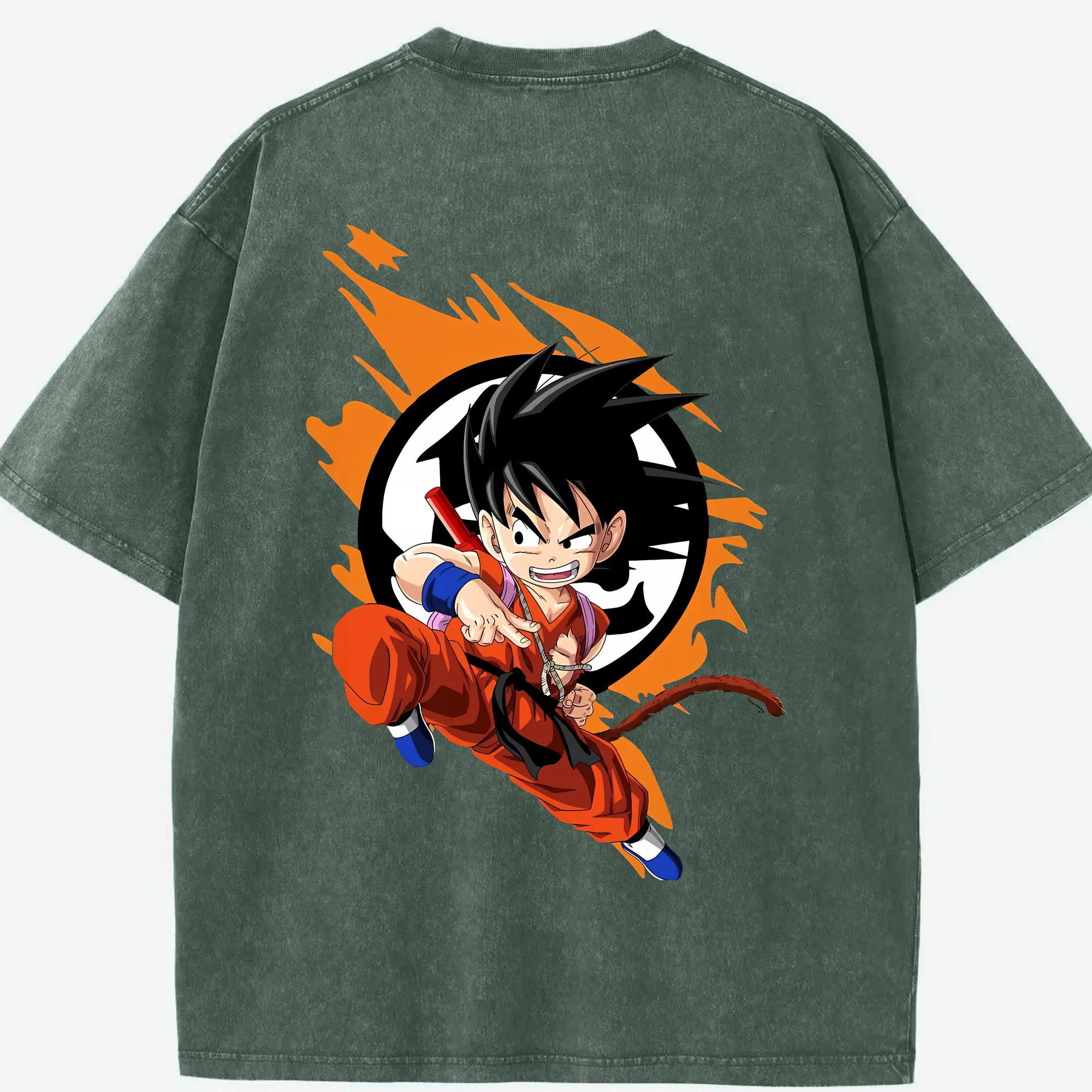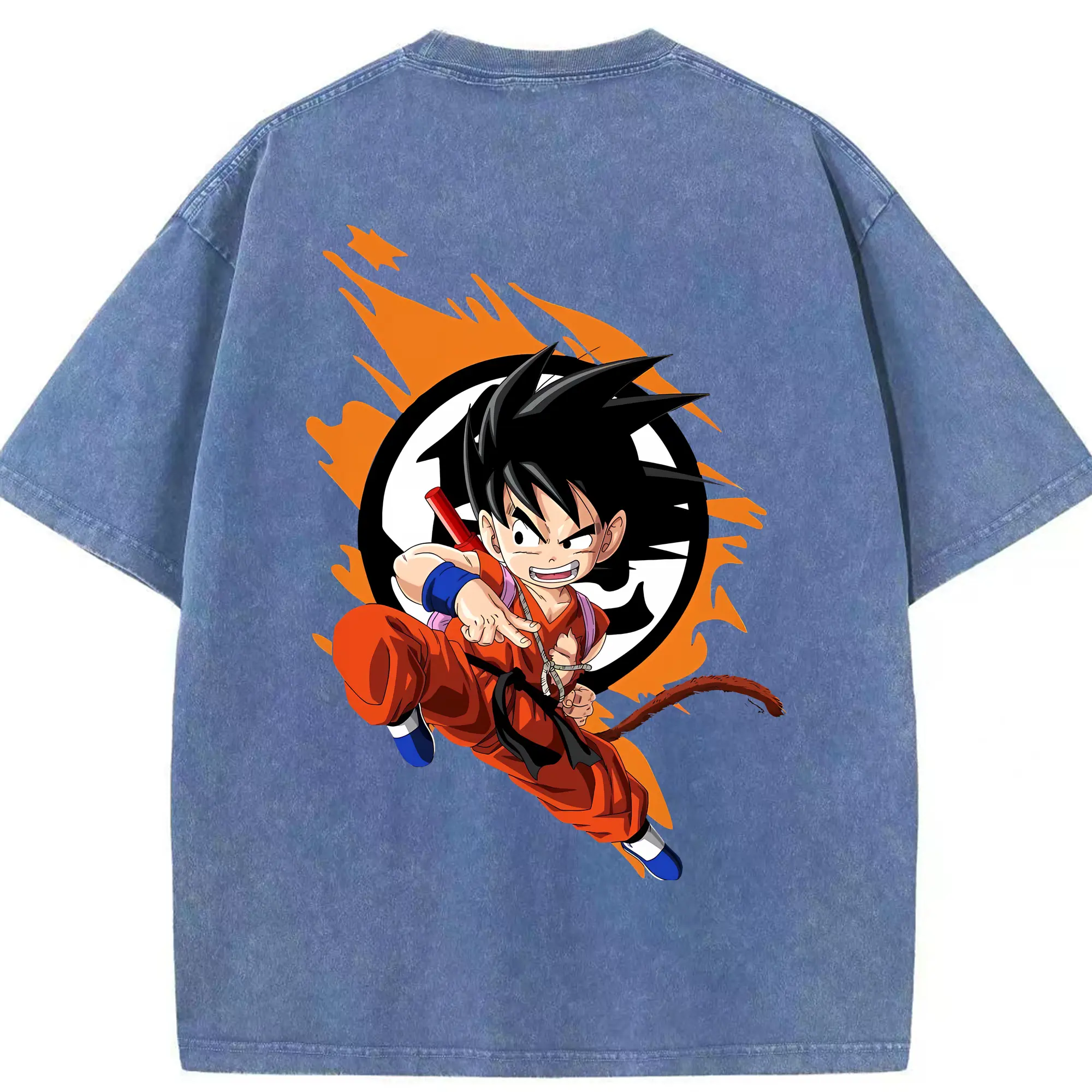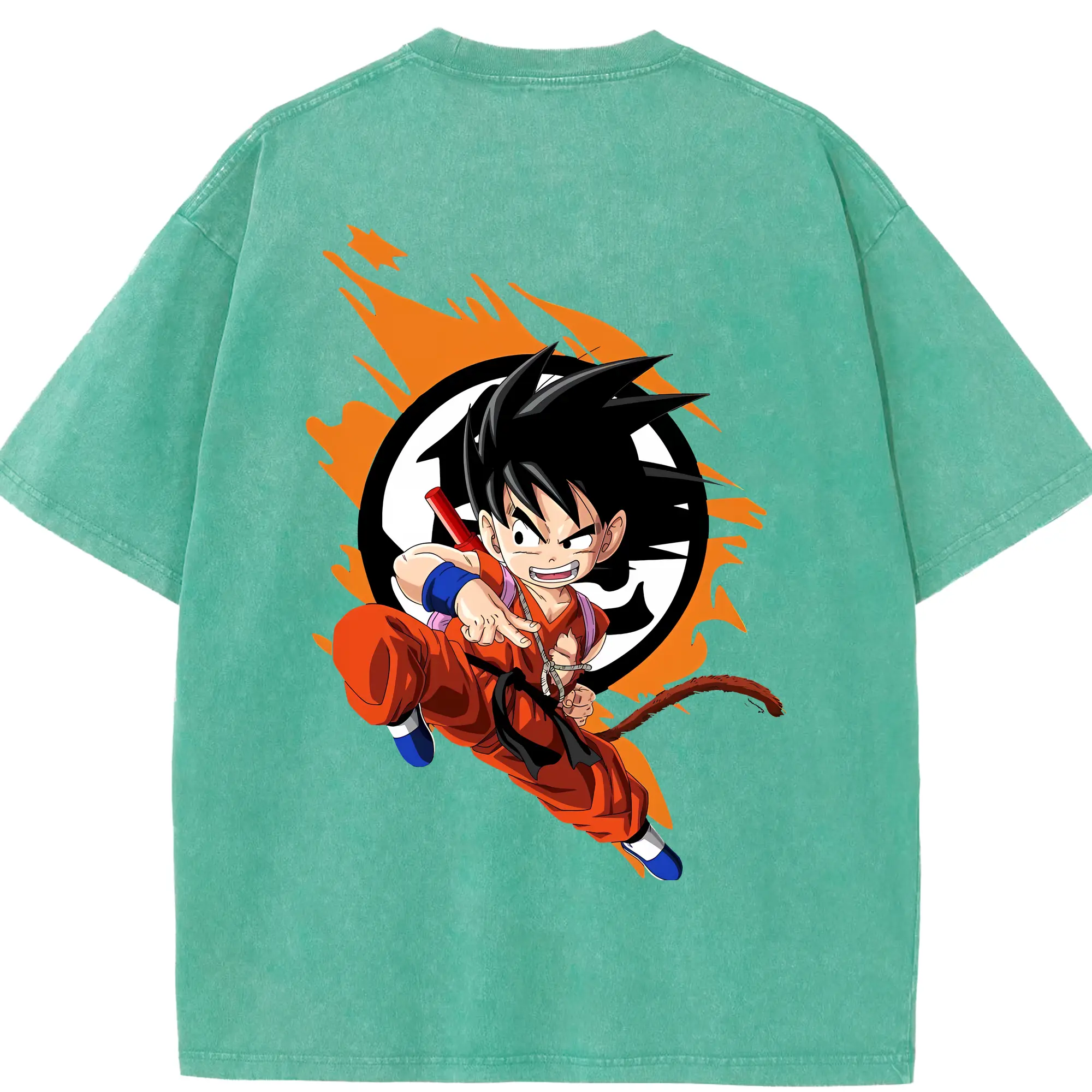 ドラゴンボール グッズ 孫 悟空 - 綿100% ヴィンテージ風 半袖Tシャツ ・ フロントプリント ・ 柔らか肌触り ・ 通気性 快適 ・ スポーツ カジュアル 外出用