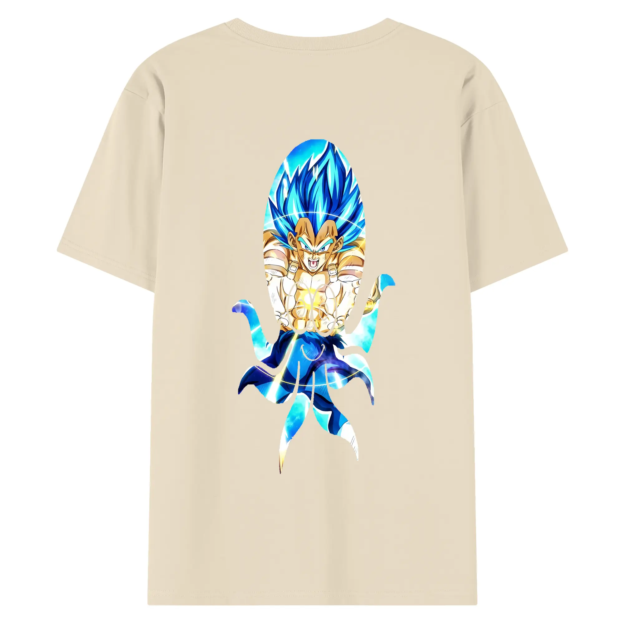 ドラゴンボール グッズ ベジータ - 綿100% ヴィンテージ風 半袖Tシャツ ・ 背面プリント ・ 柔らか肌触り ・ 通気性 快適 ・ スポーツ カジュアル 外出用