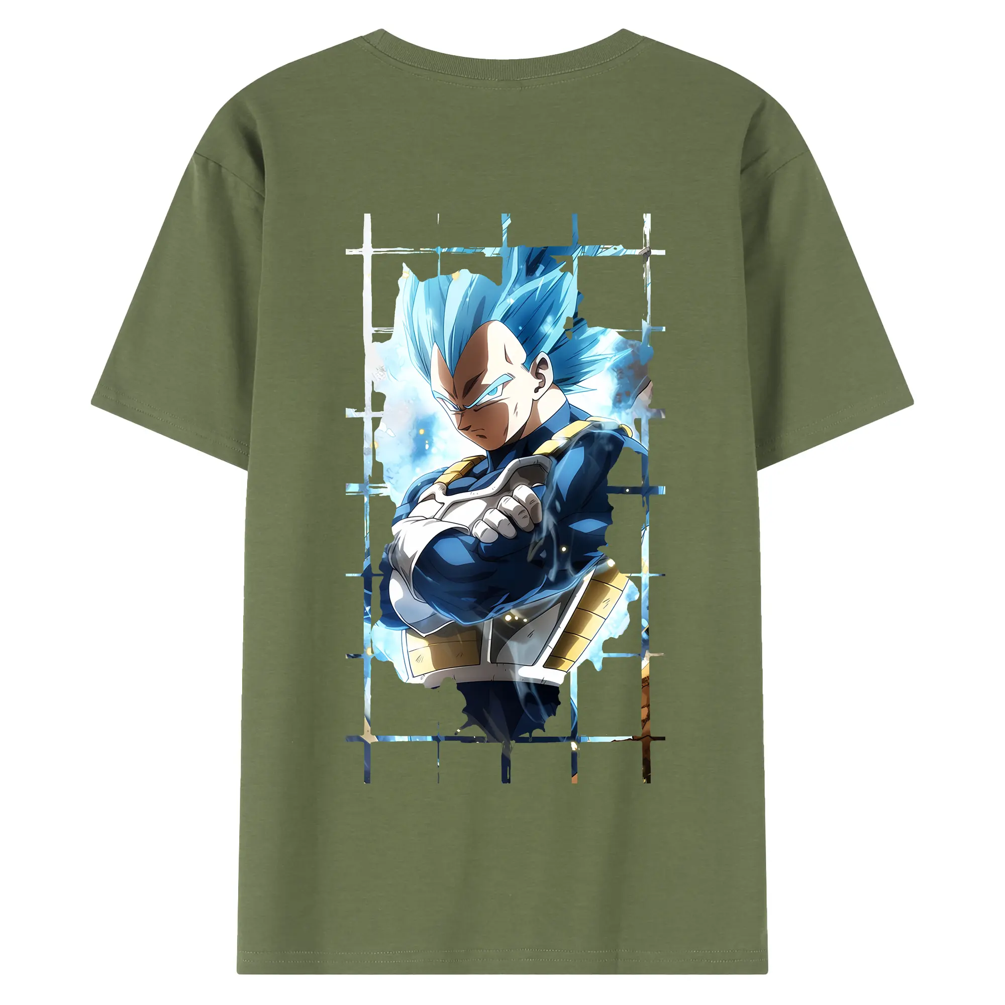 ドラゴンボール グッズ ベジータ - 綿100% ヴィンテージ風 半袖Tシャツ ・ 背面プリント ・ 柔らか肌触り ・ 通気性 快適 ・ スポーツ カジュアル 外出用