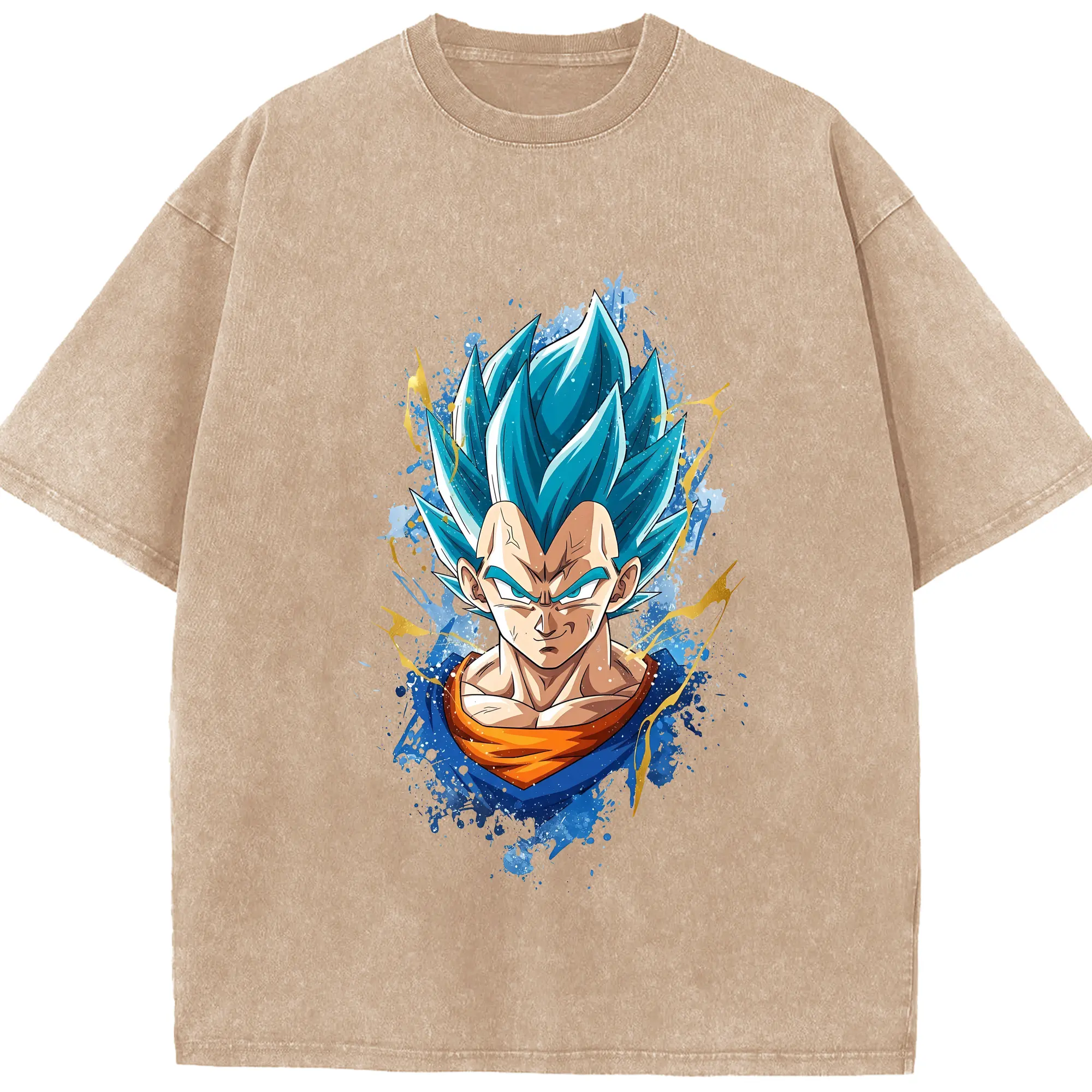 ドラゴンボール グッズ ベジータ - 綿100% ヴィンテージ風 半袖Tシャツ ・ 背面プリント ・ 柔らか肌触り ・ 通気性 快適 ・ スポーツ カジュアル 外出用