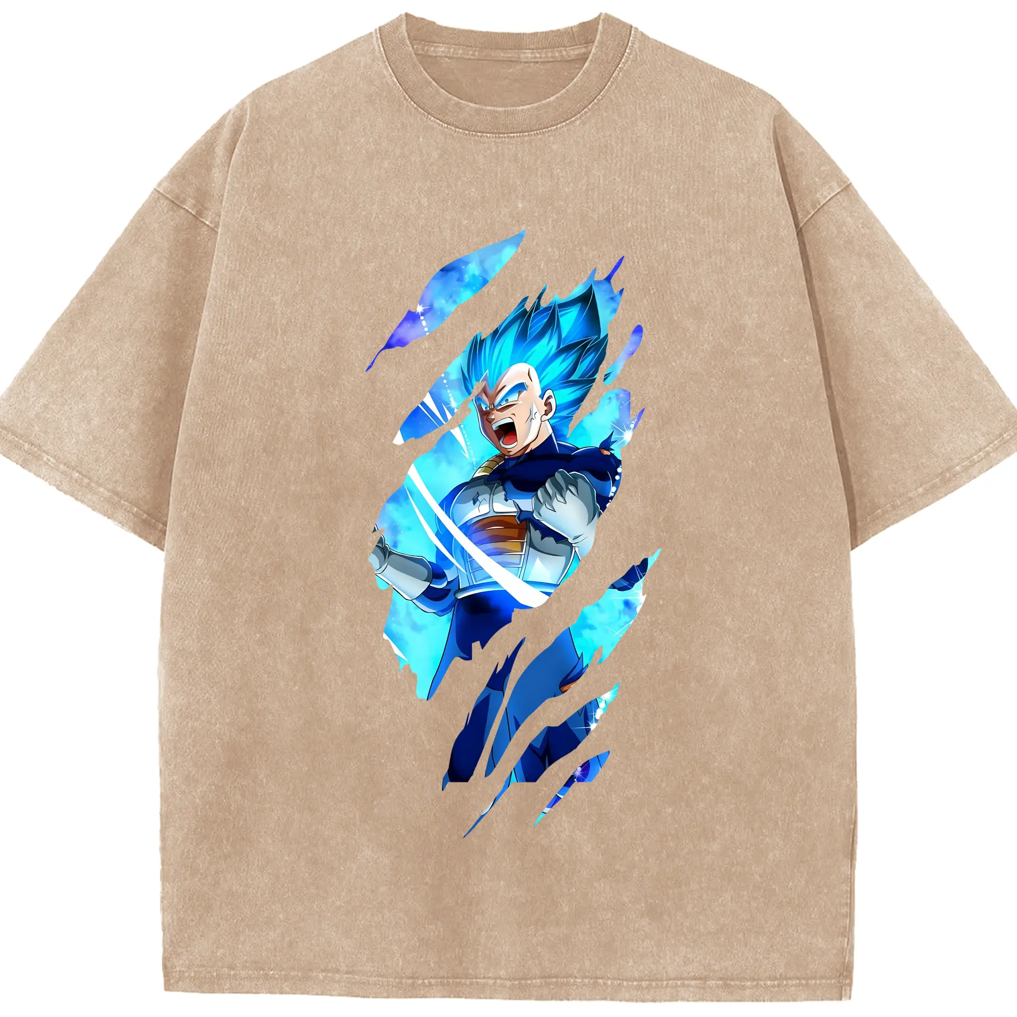 ドラゴンボール グッズ ベジータ - 綿100% ヴィンテージ風 半袖Tシャツ ・ 背面プリント ・ 柔らか肌触り ・ 通気性 快適 ・ スポーツ カジュアル 外出用