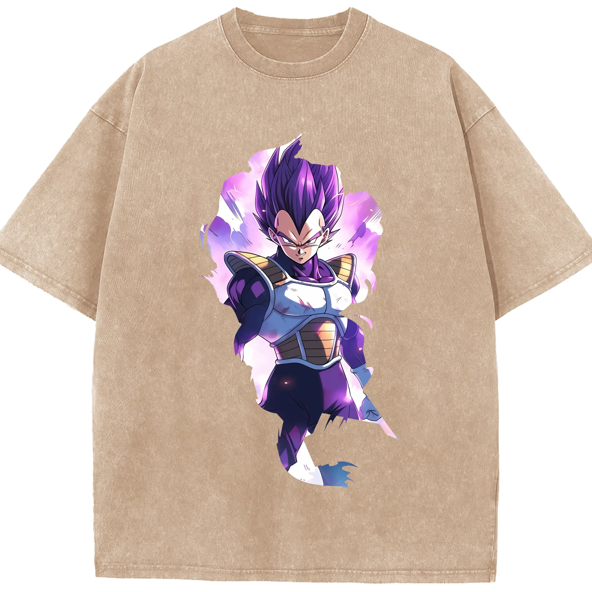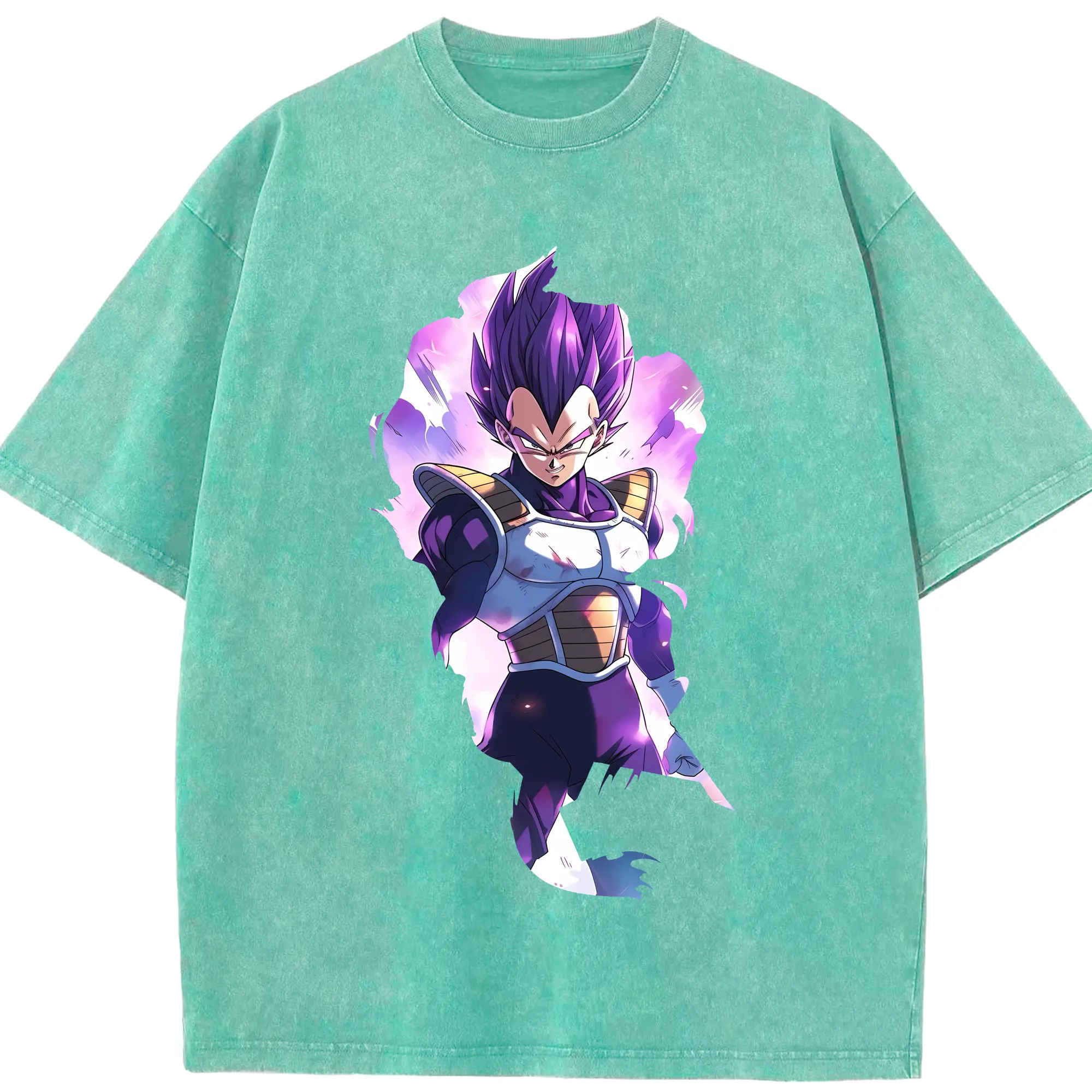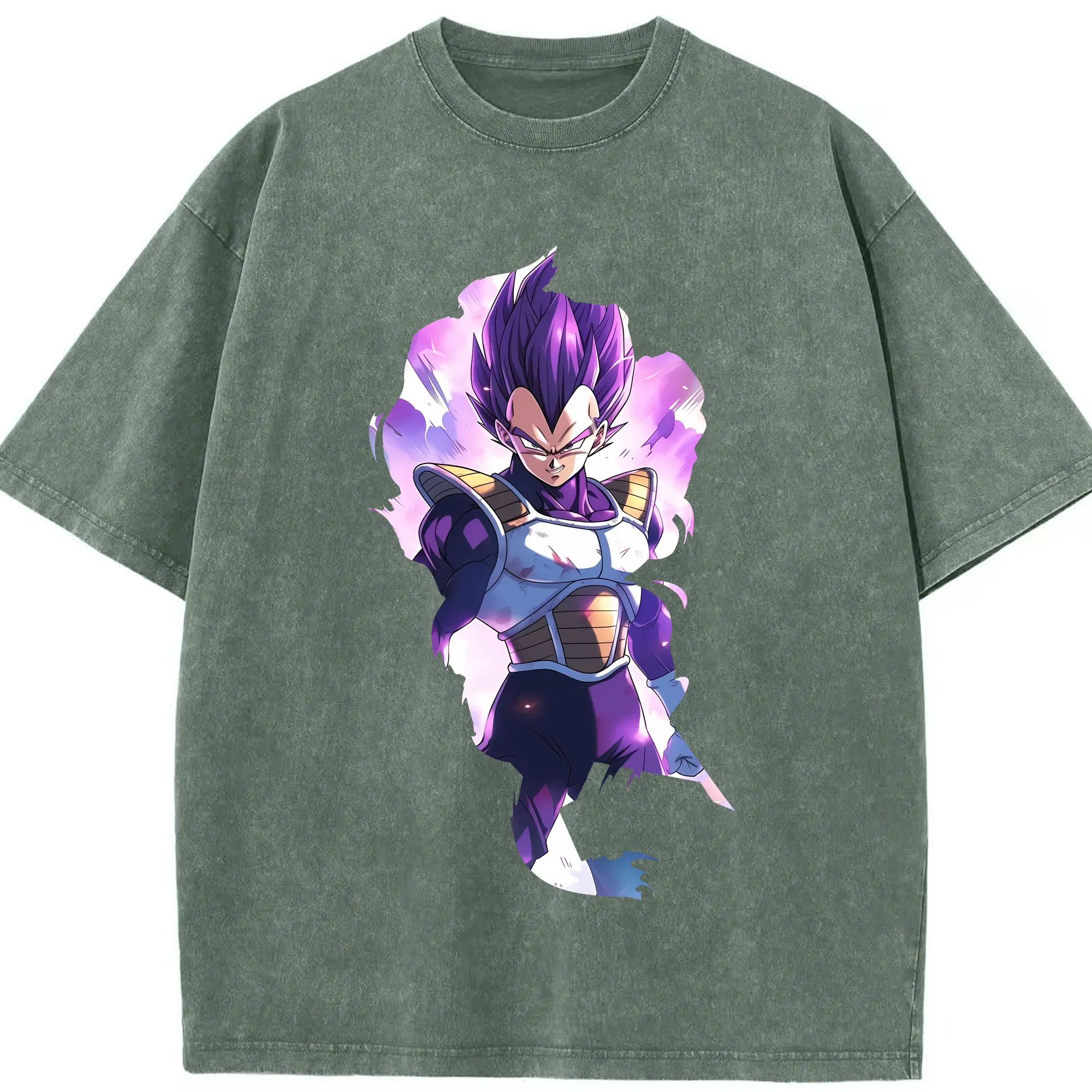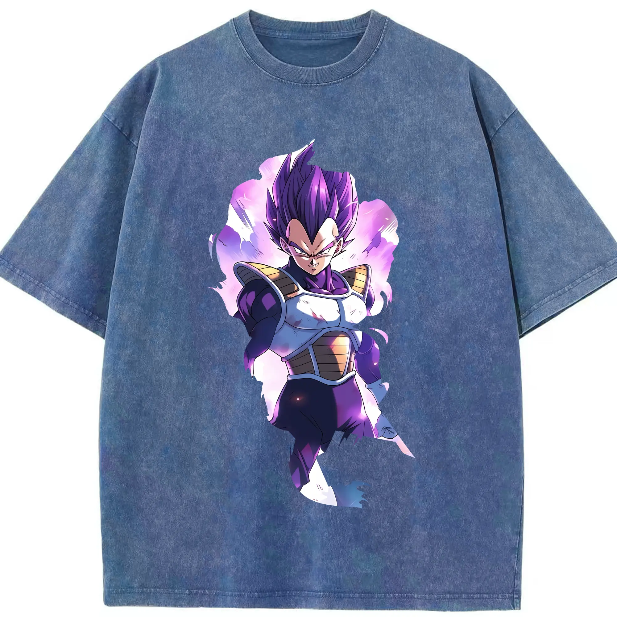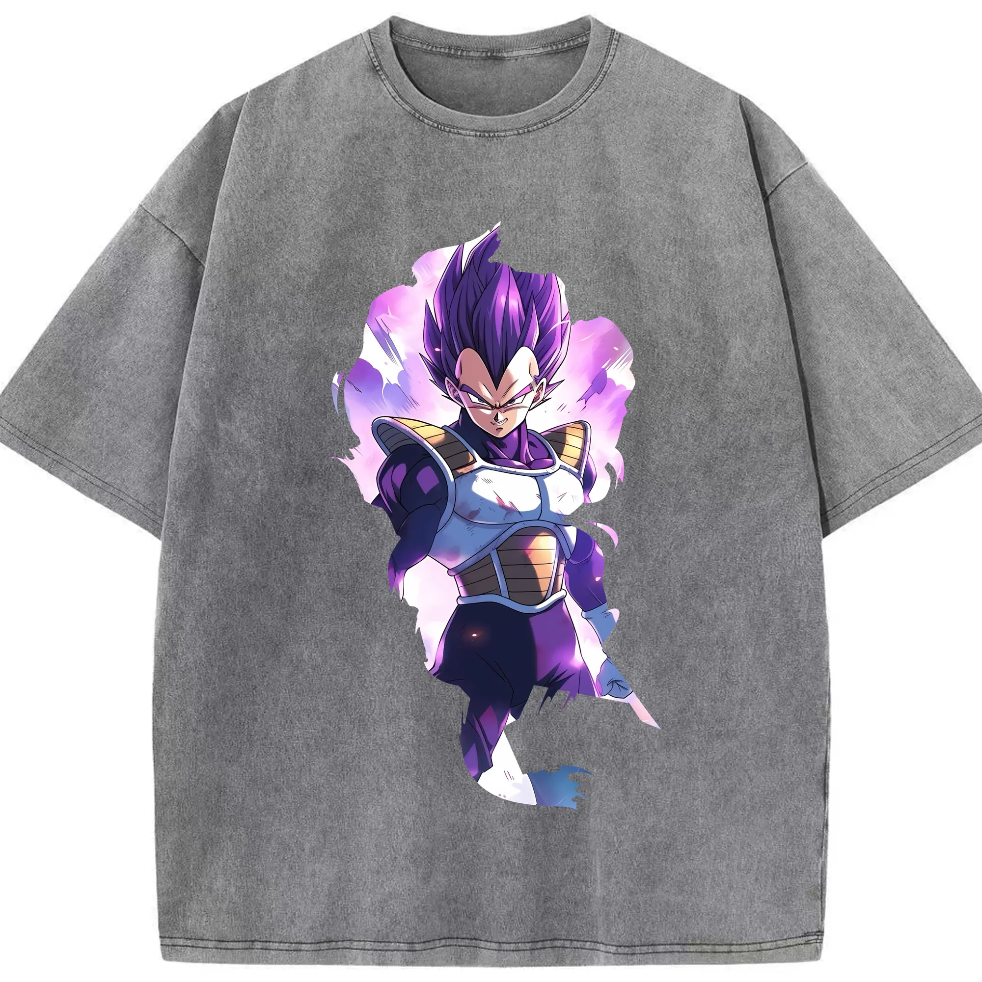 ドラゴンボール グッズ ベジータ - 綿100% ヴィンテージ風 半袖Tシャツ ・ 背面プリント ・ 柔らか肌触り ・ 通気性 快適 ・ スポーツ カジュアル 外出用