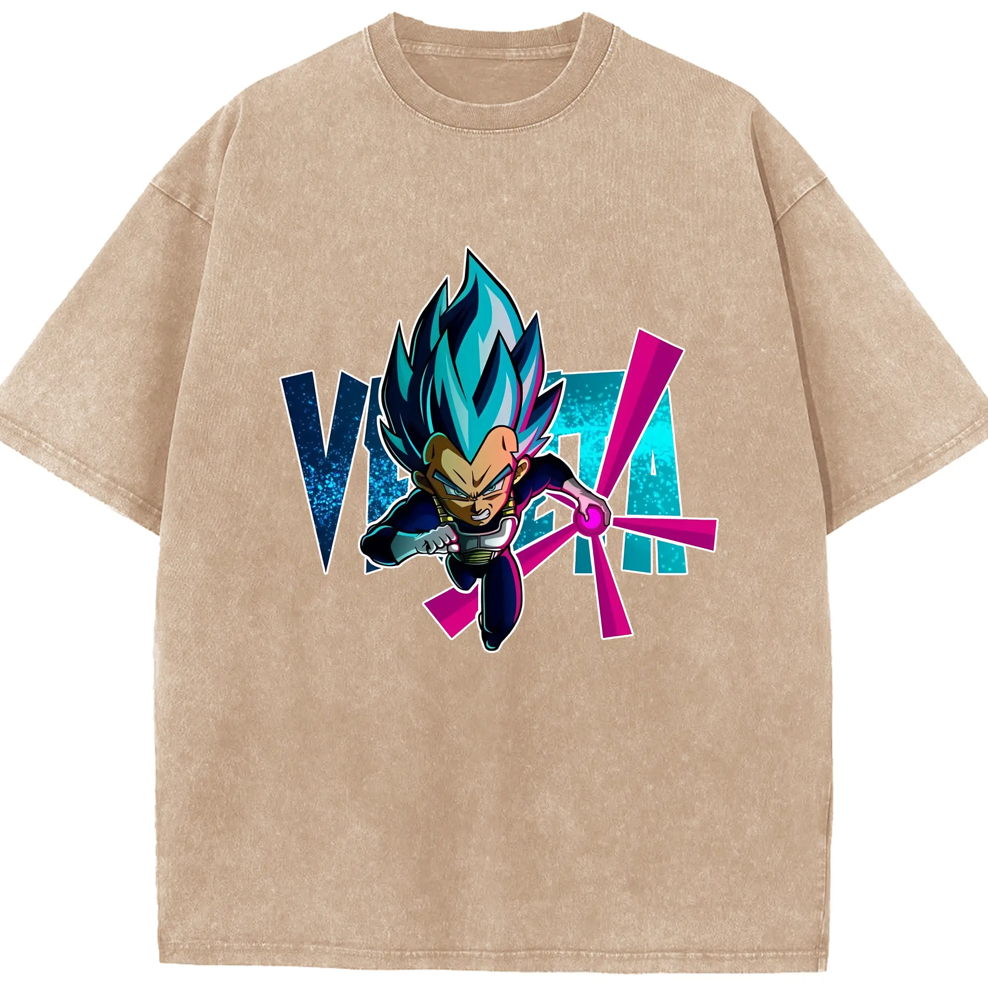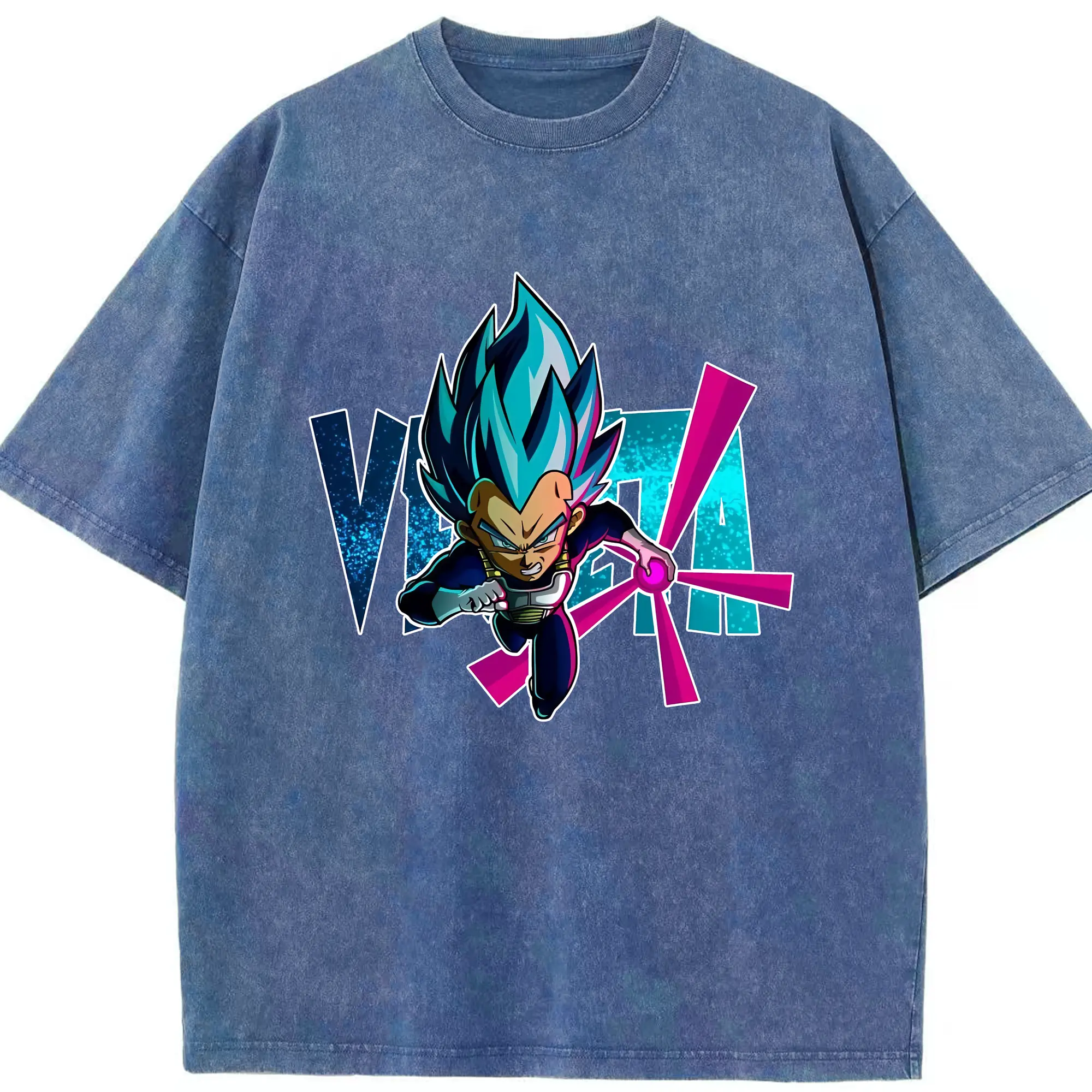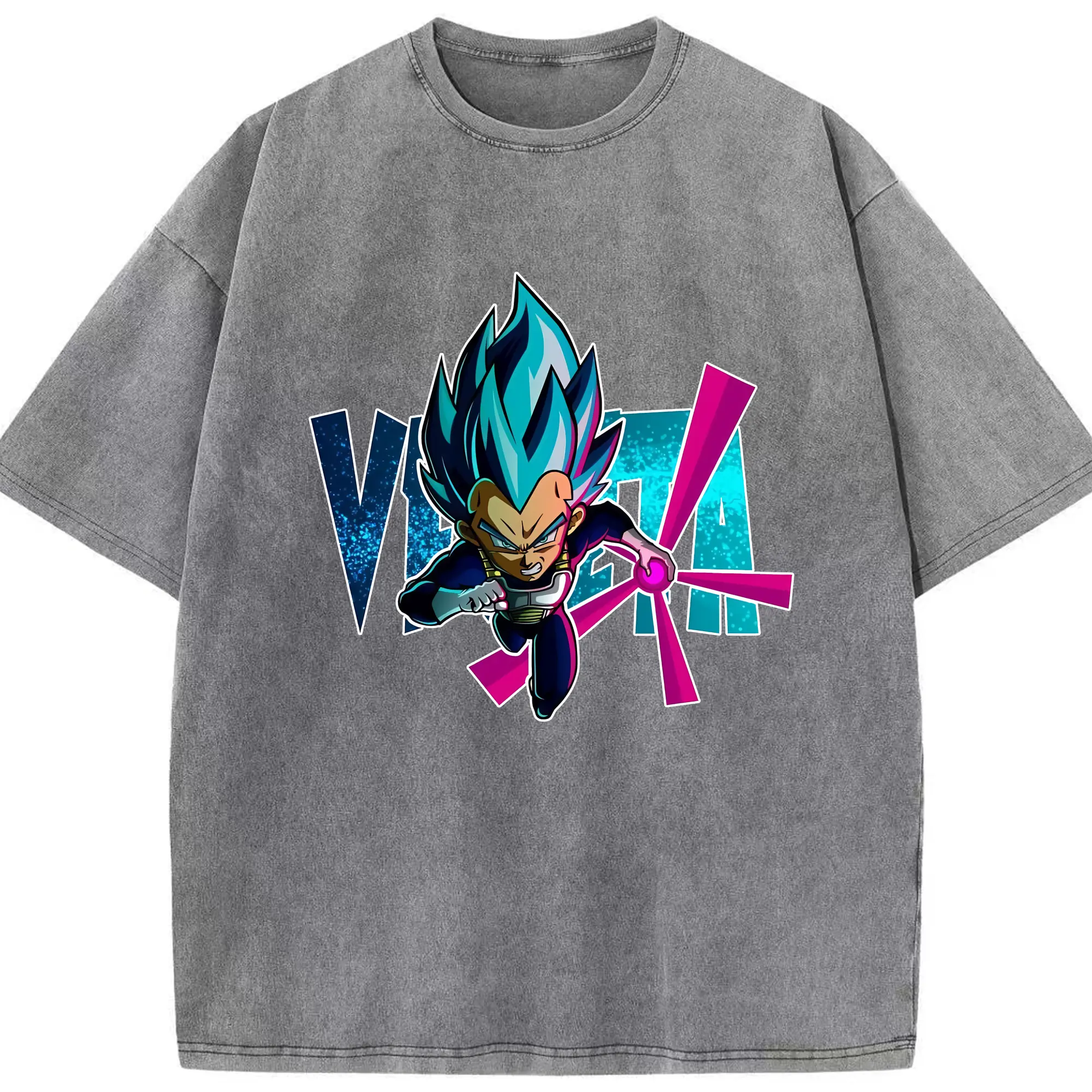 ドラゴンボール グッズ ベジータ - 綿100% ヴィンテージ風 半袖Tシャツ ・ 背面プリント ・ 柔らか肌触り ・ 通気性 快適 ・ スポーツ カジュアル 外出用