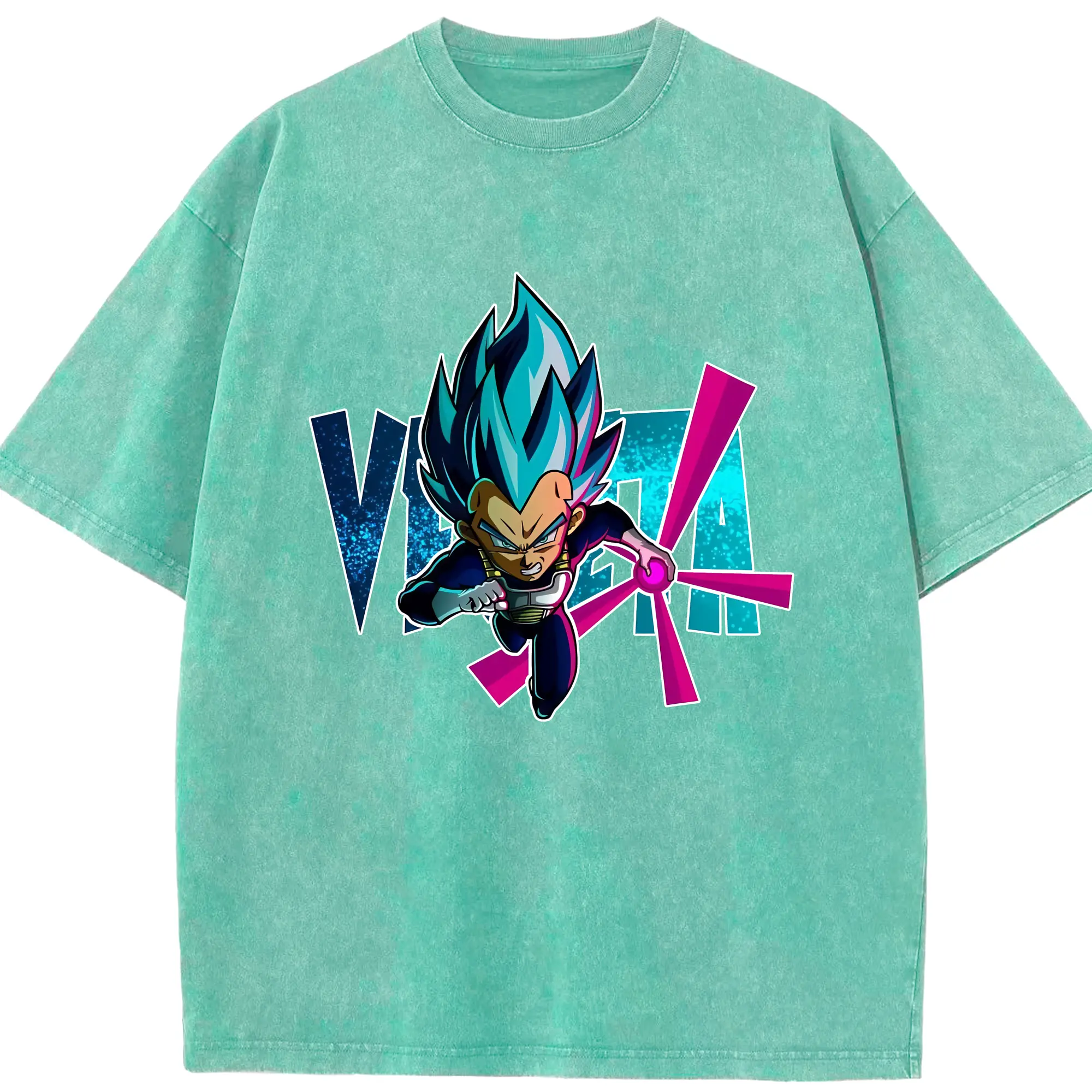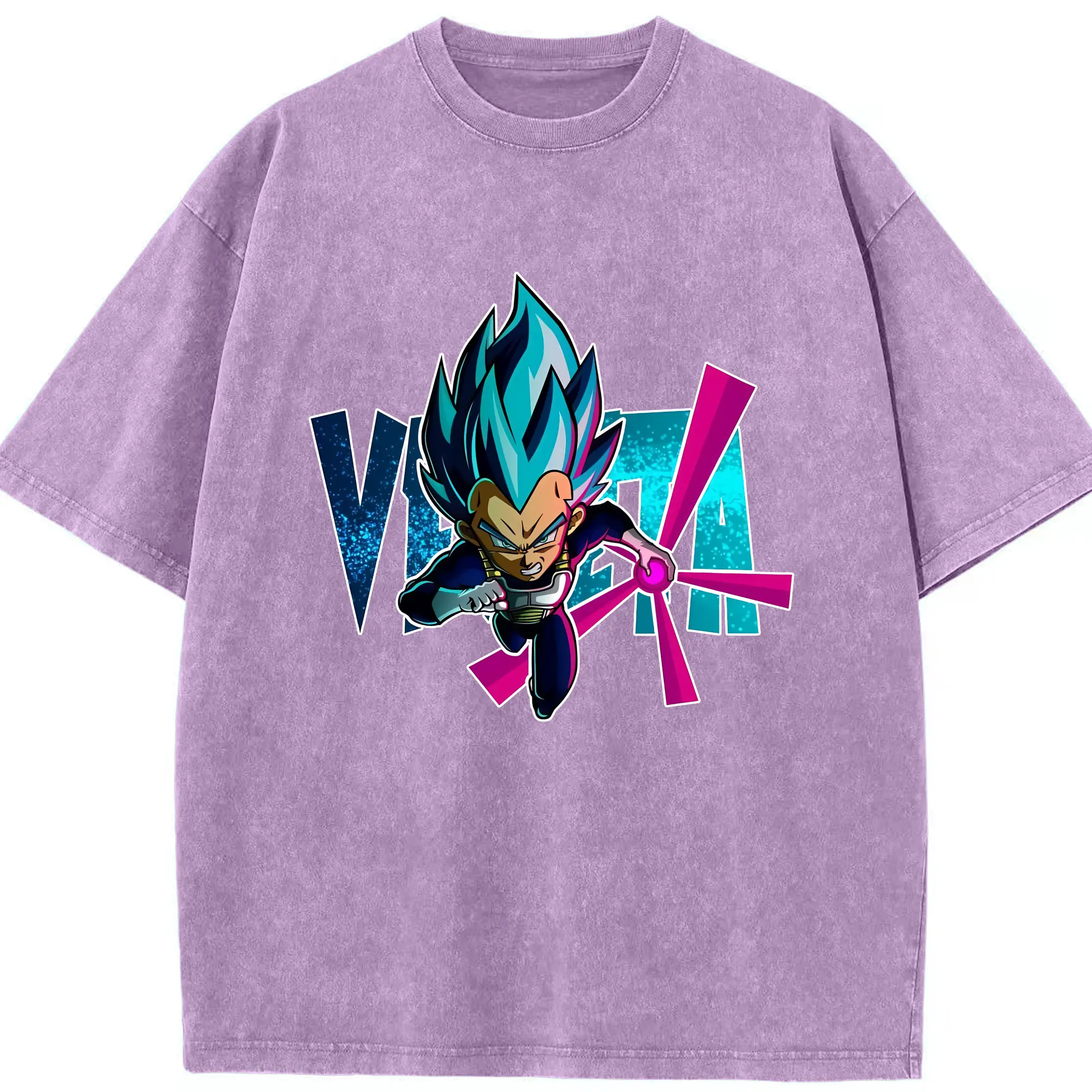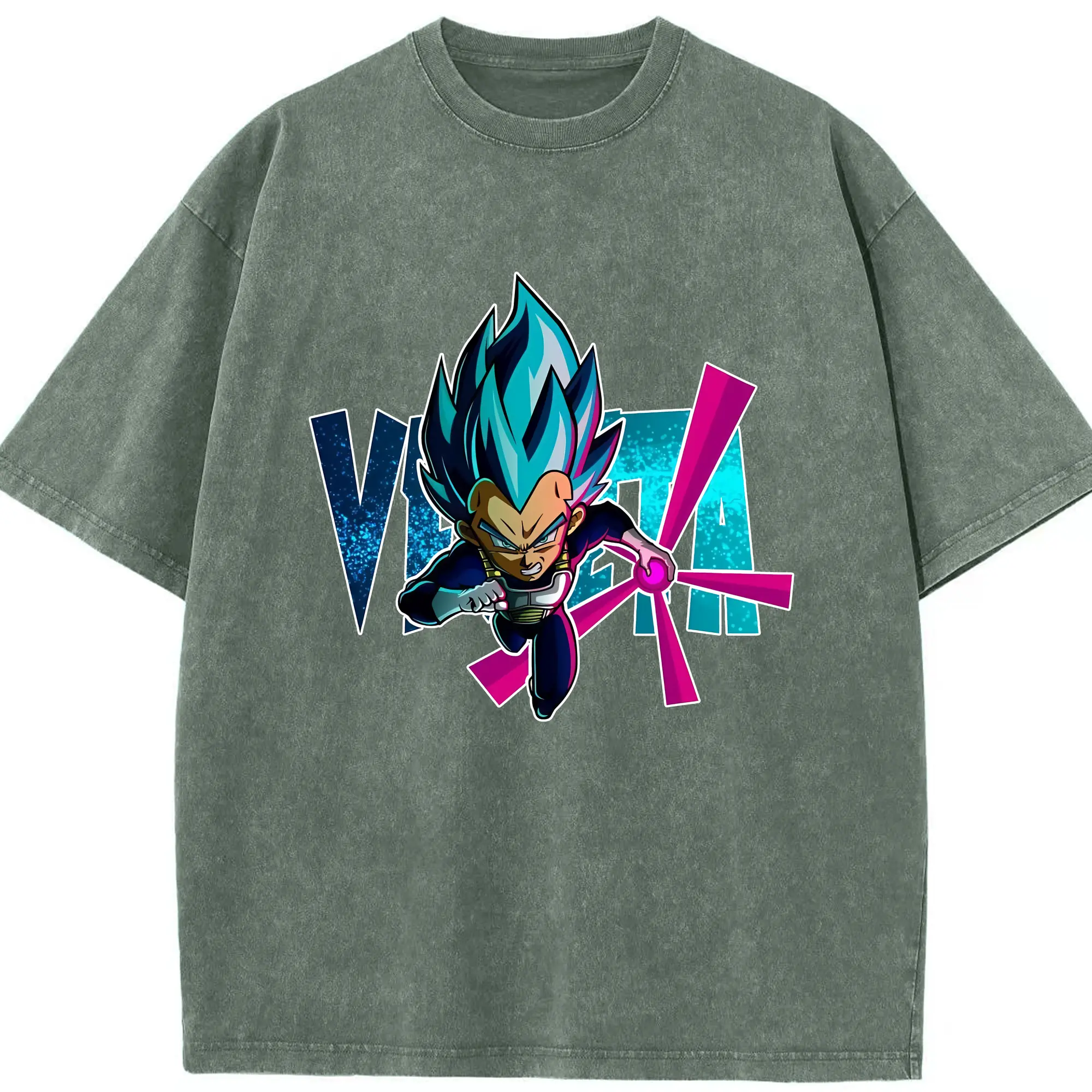 ドラゴンボール グッズ ベジータ - 綿100% ヴィンテージ風 半袖Tシャツ ・ 背面プリント ・ 柔らか肌触り ・ 通気性 快適 ・ スポーツ カジュアル 外出用