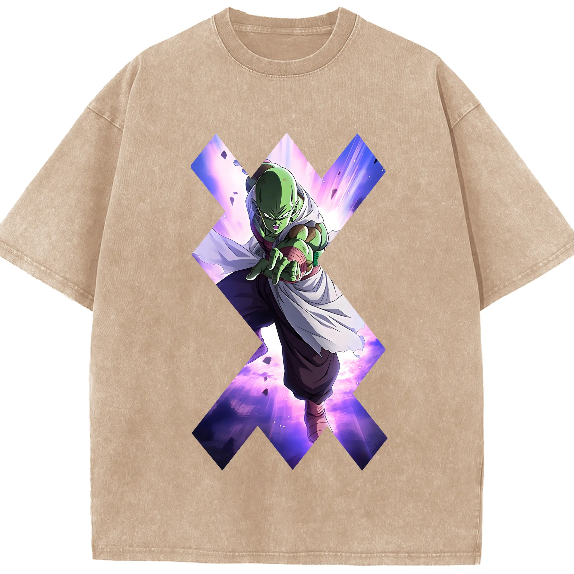 ドラゴンボール グッズ ピッコロ - 綿100% ヴィンテージ風 半袖Tシャツ ・ 背面プリント ・ 柔らか肌触り ・ 通気性 快適 ・ スポーツ カジュアル 外出用