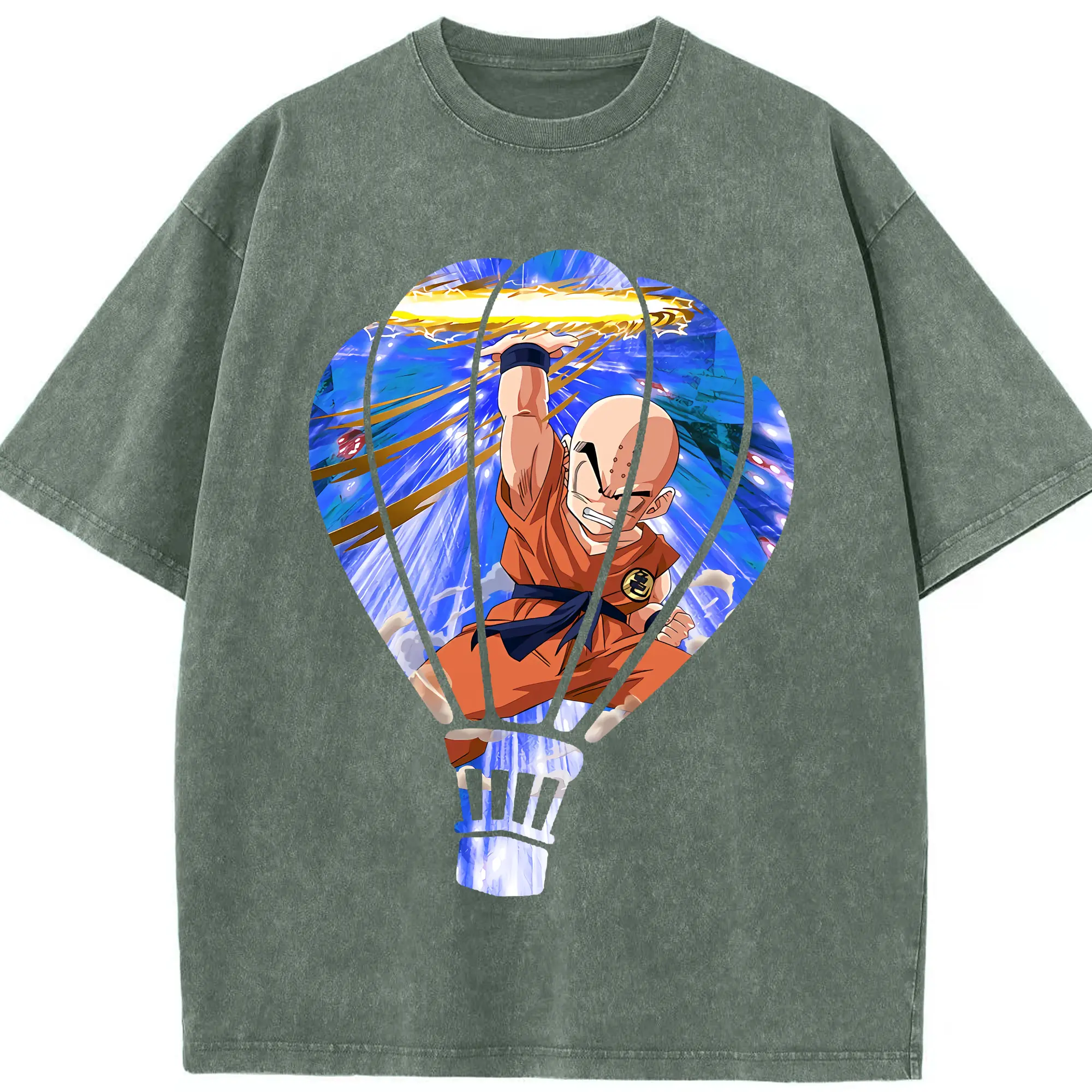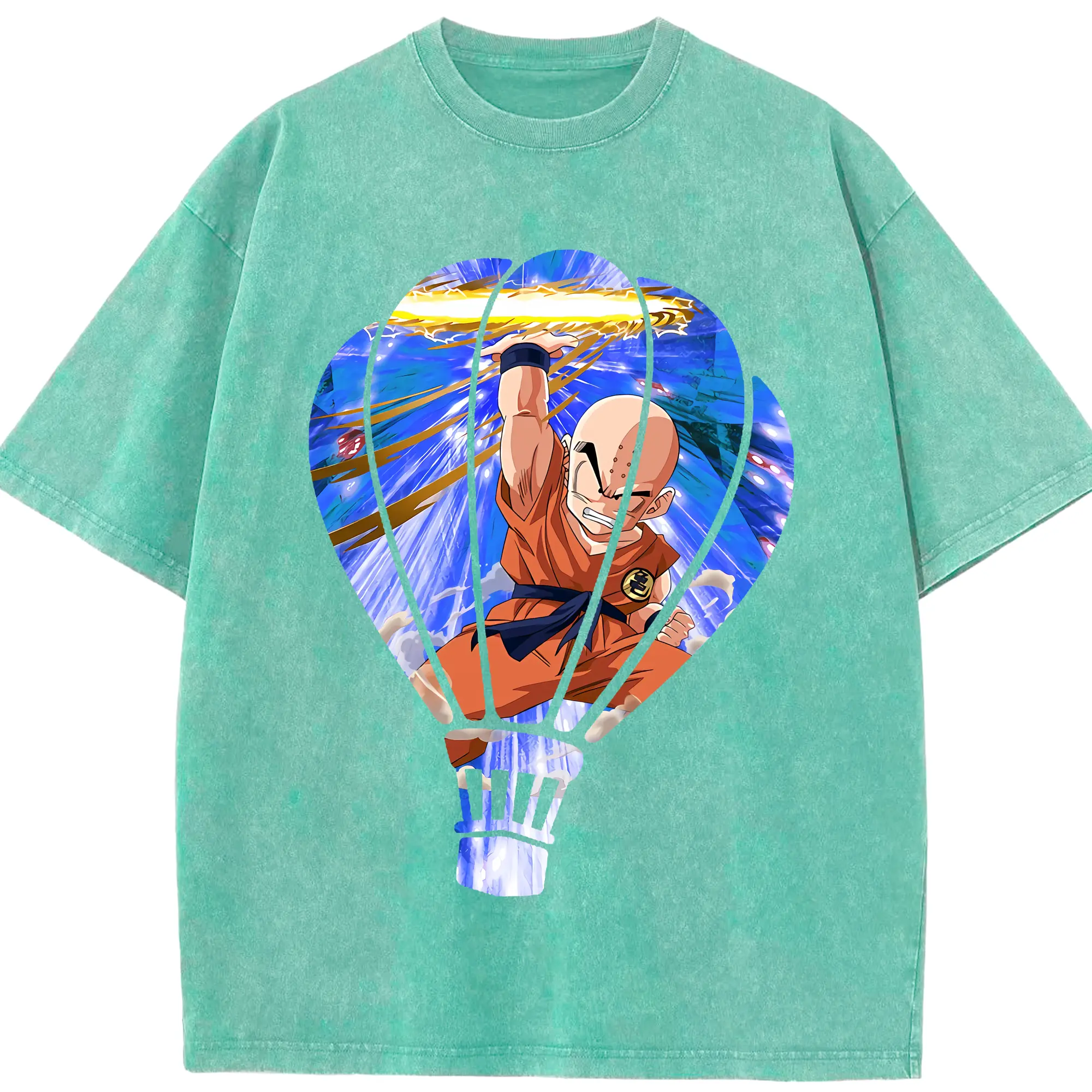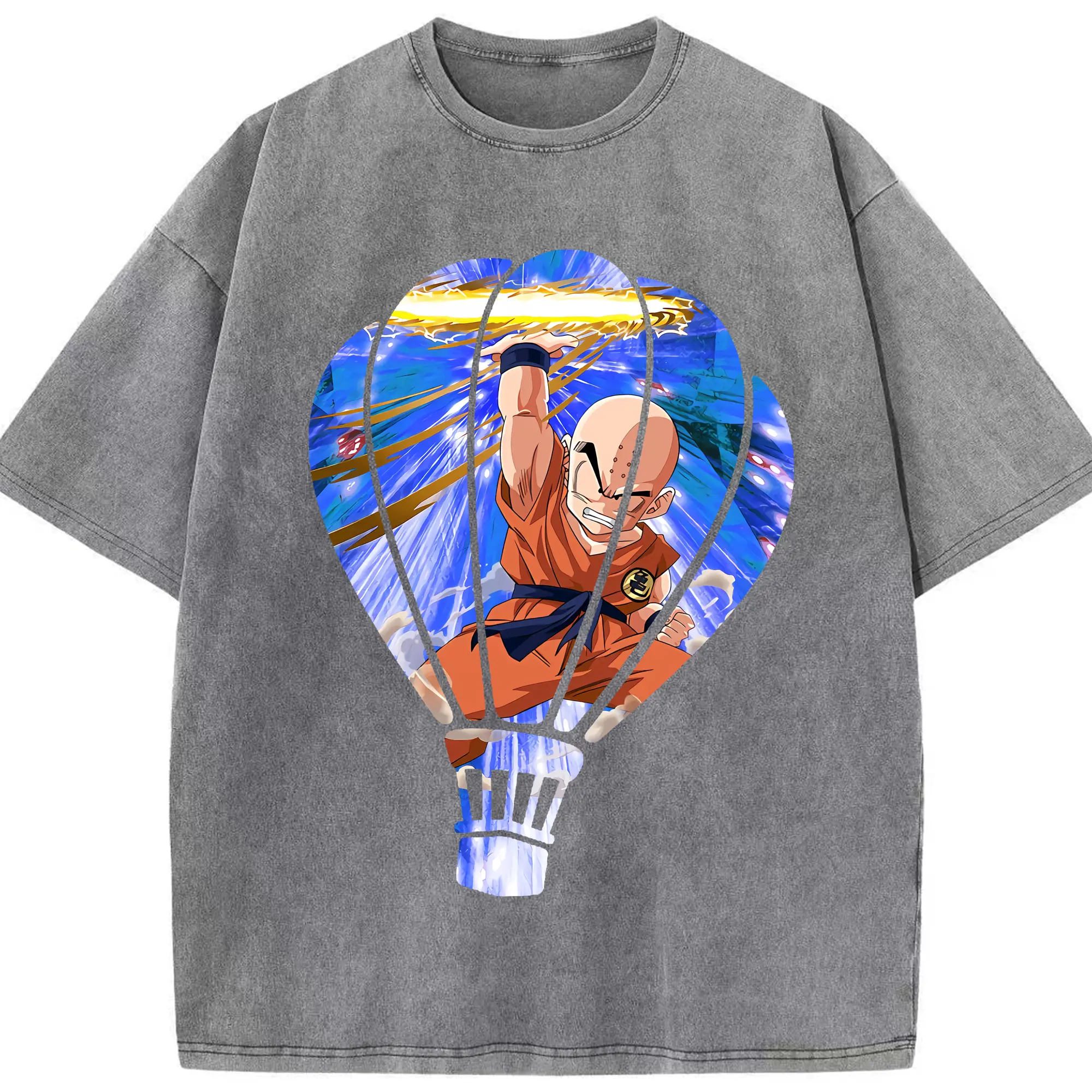 ドラゴンボール グッズクリリン - 綿100% ヴィンテージ風 半袖Tシャツ ・ 背面プリント ・ 柔らか肌触り ・ 通気性 快適 ・ スポーツ カジュアル 外出用