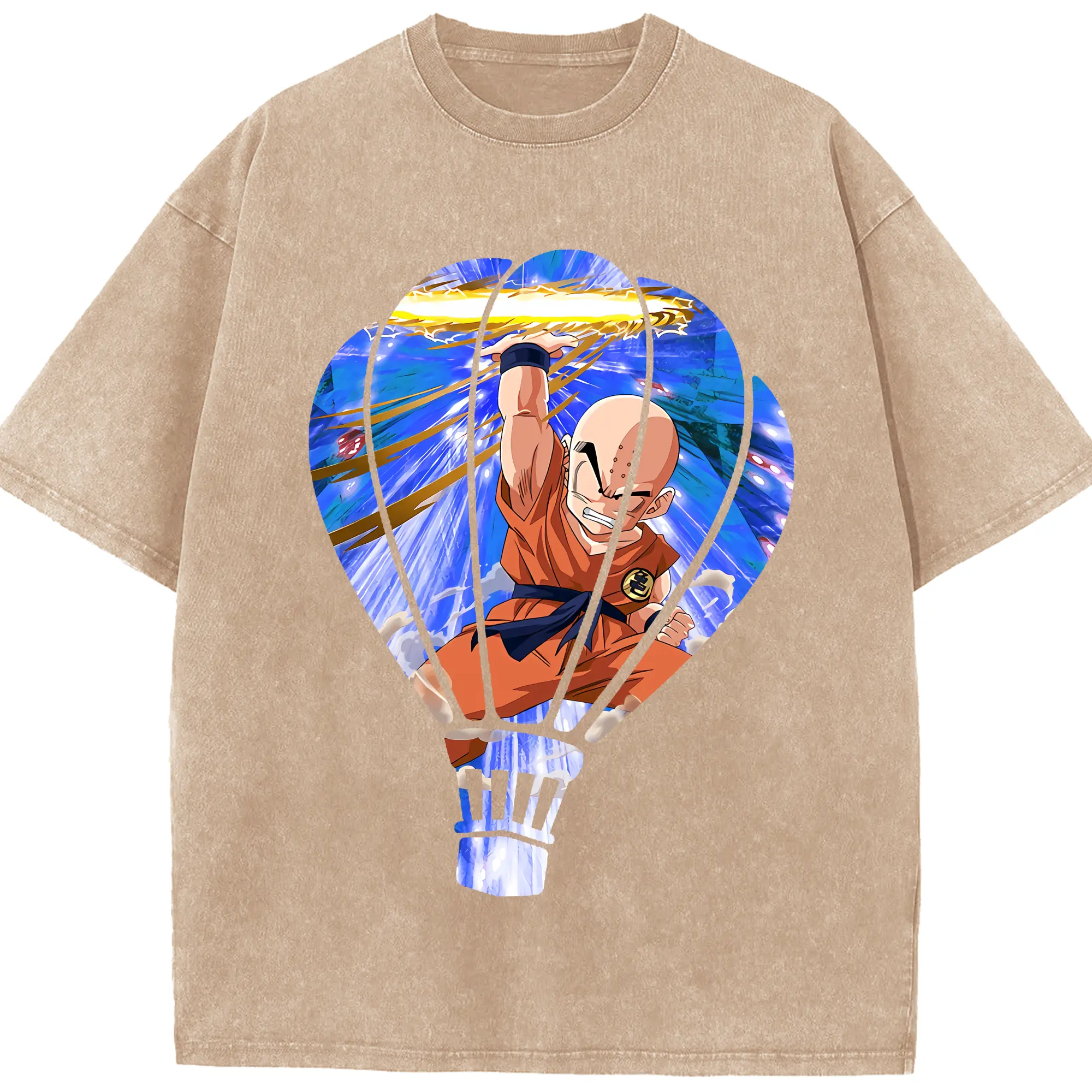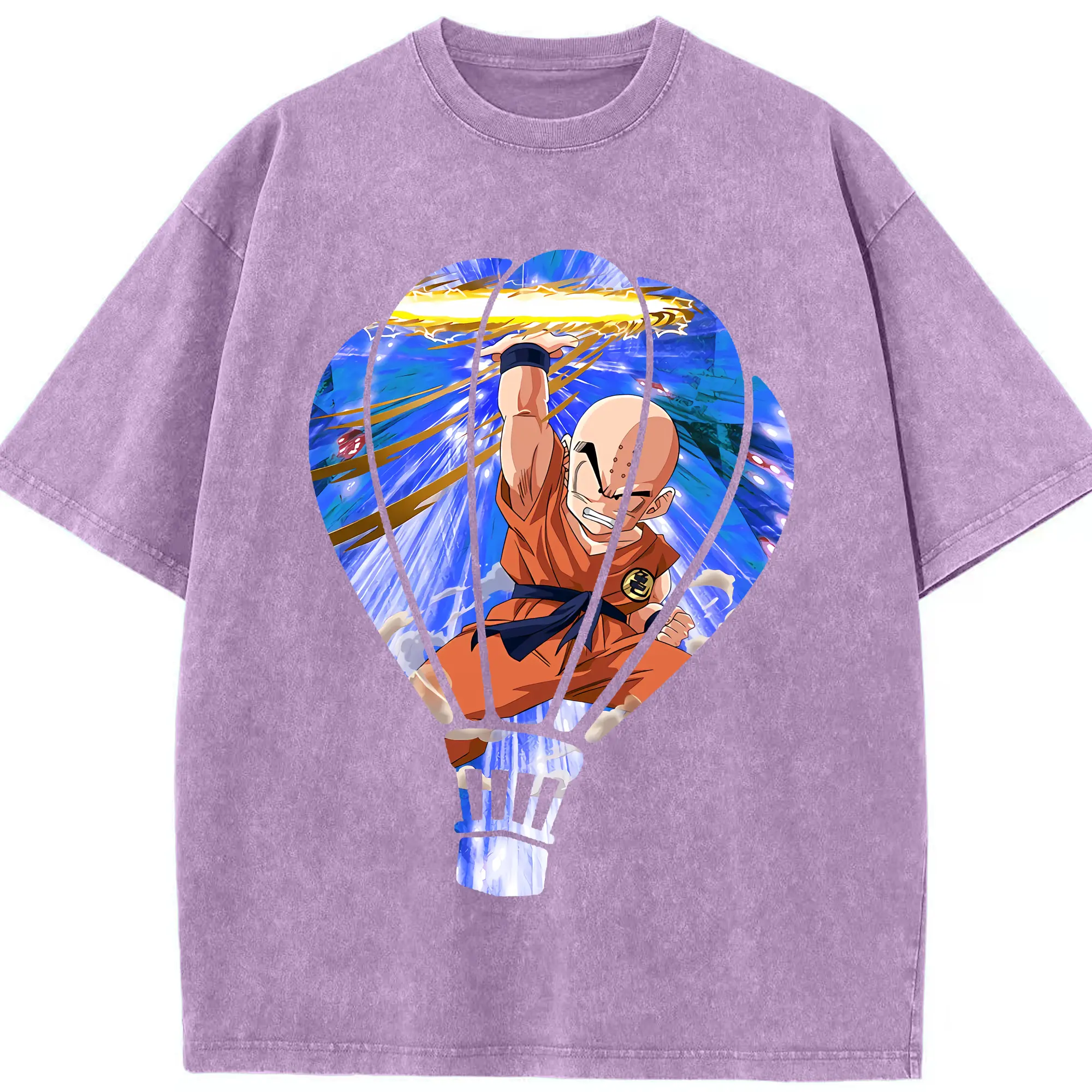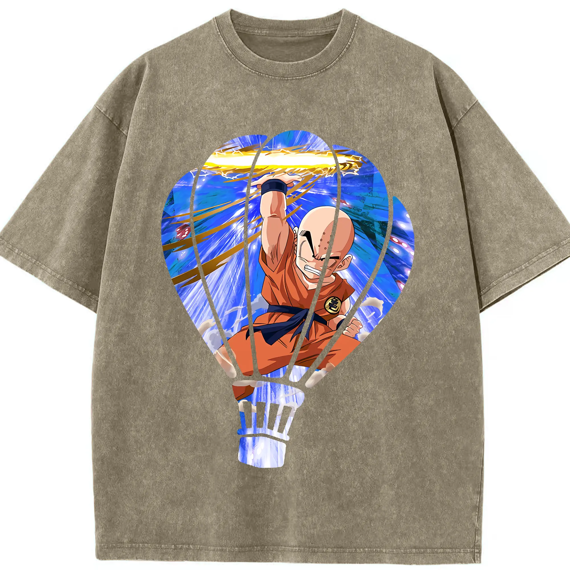 ドラゴンボール グッズクリリン - 綿100% ヴィンテージ風 半袖Tシャツ ・ 背面プリント ・ 柔らか肌触り ・ 通気性 快適 ・ スポーツ カジュアル 外出用