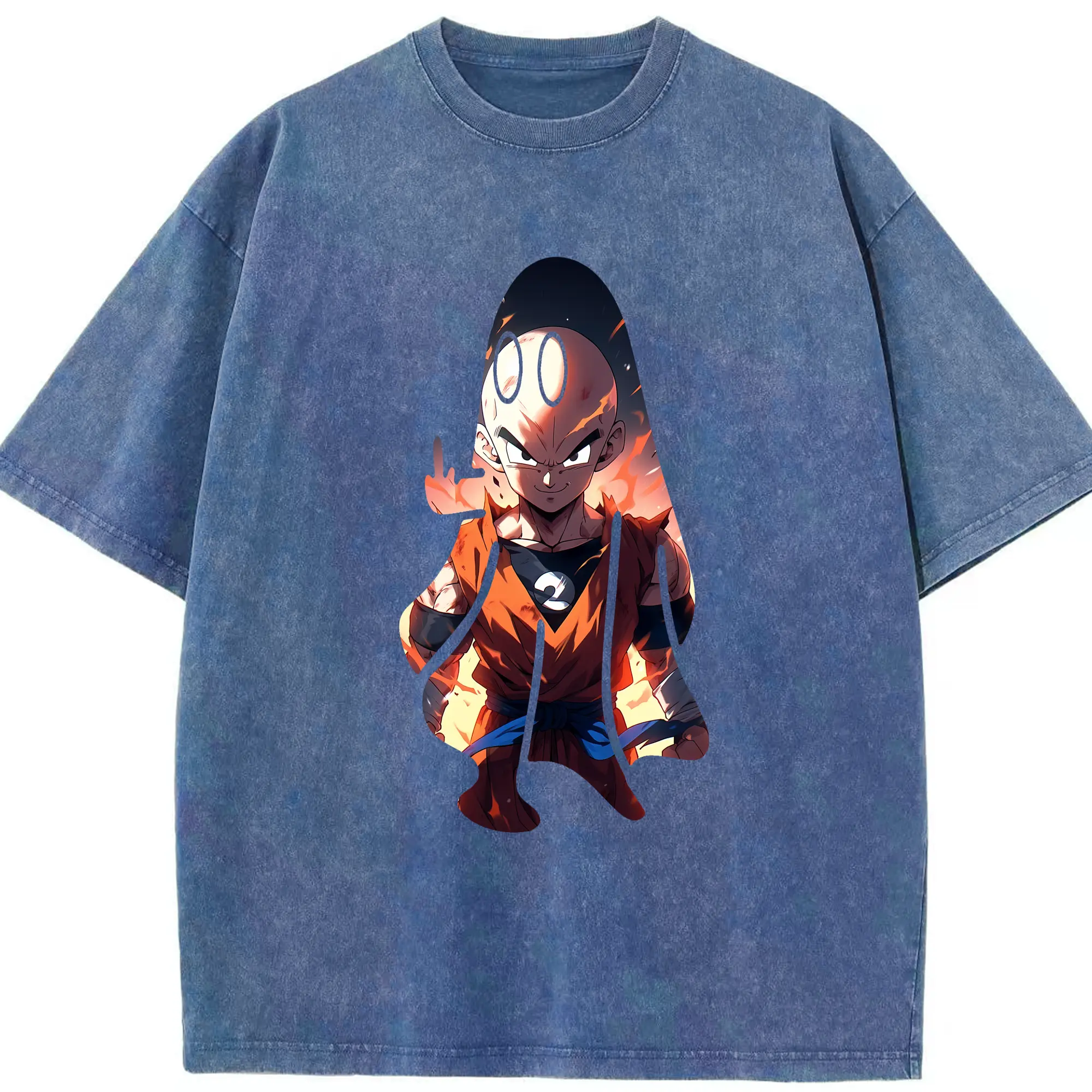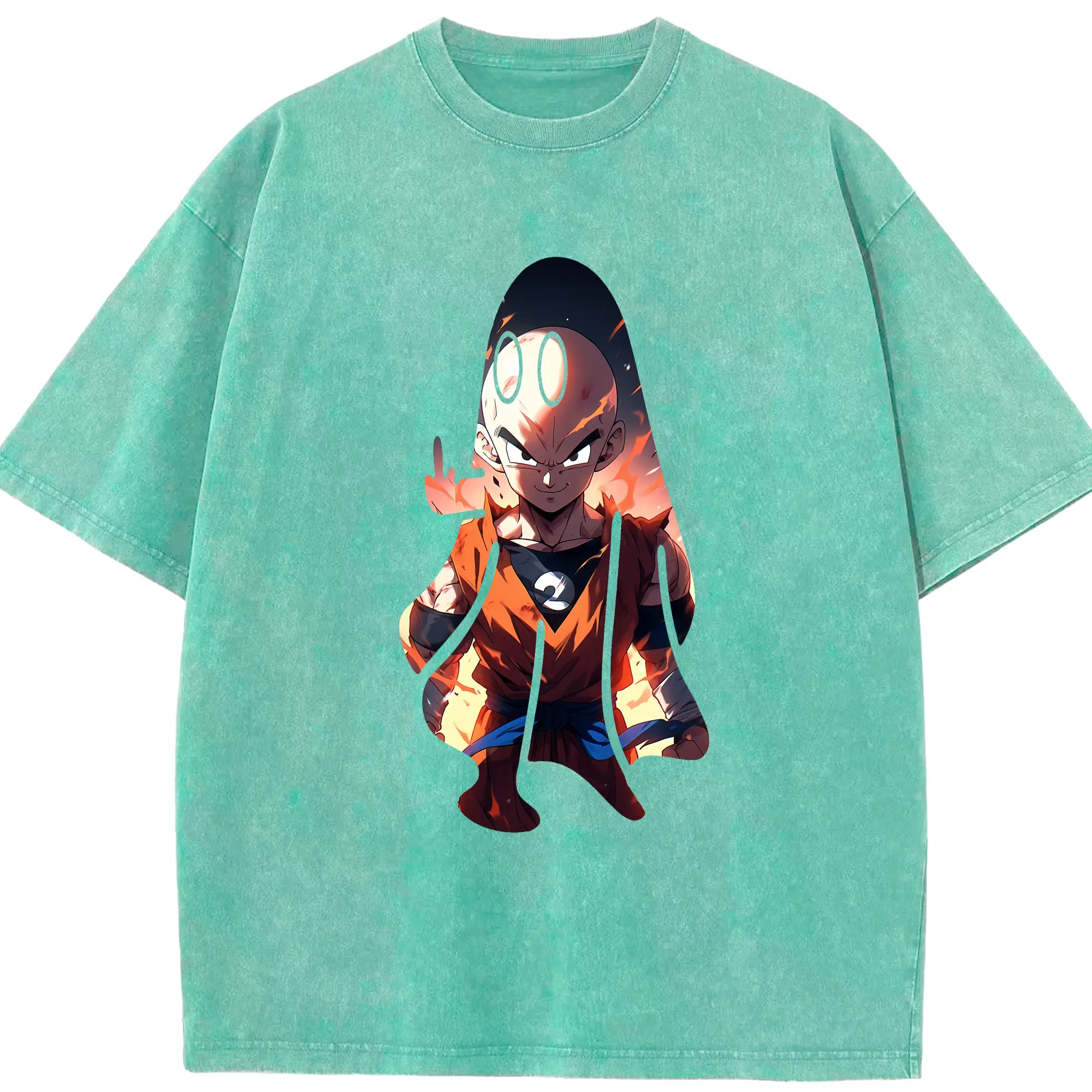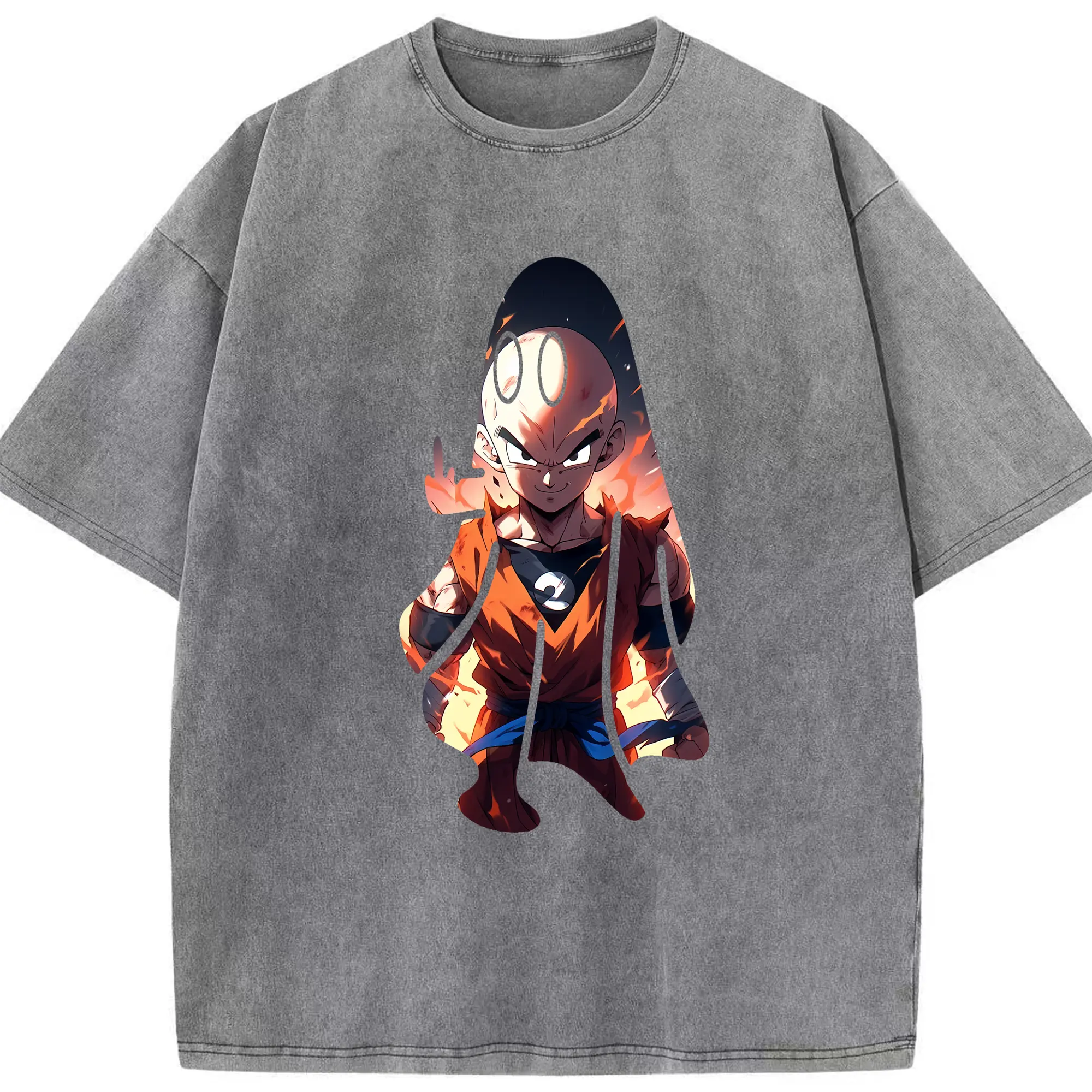 ドラゴンボール グッズクリリン - 綿100% ヴィンテージ風 半袖Tシャツ ・ 背面プリント ・ 柔らか肌触り ・ 通気性 快適 ・ スポーツ カジュアル 外出用