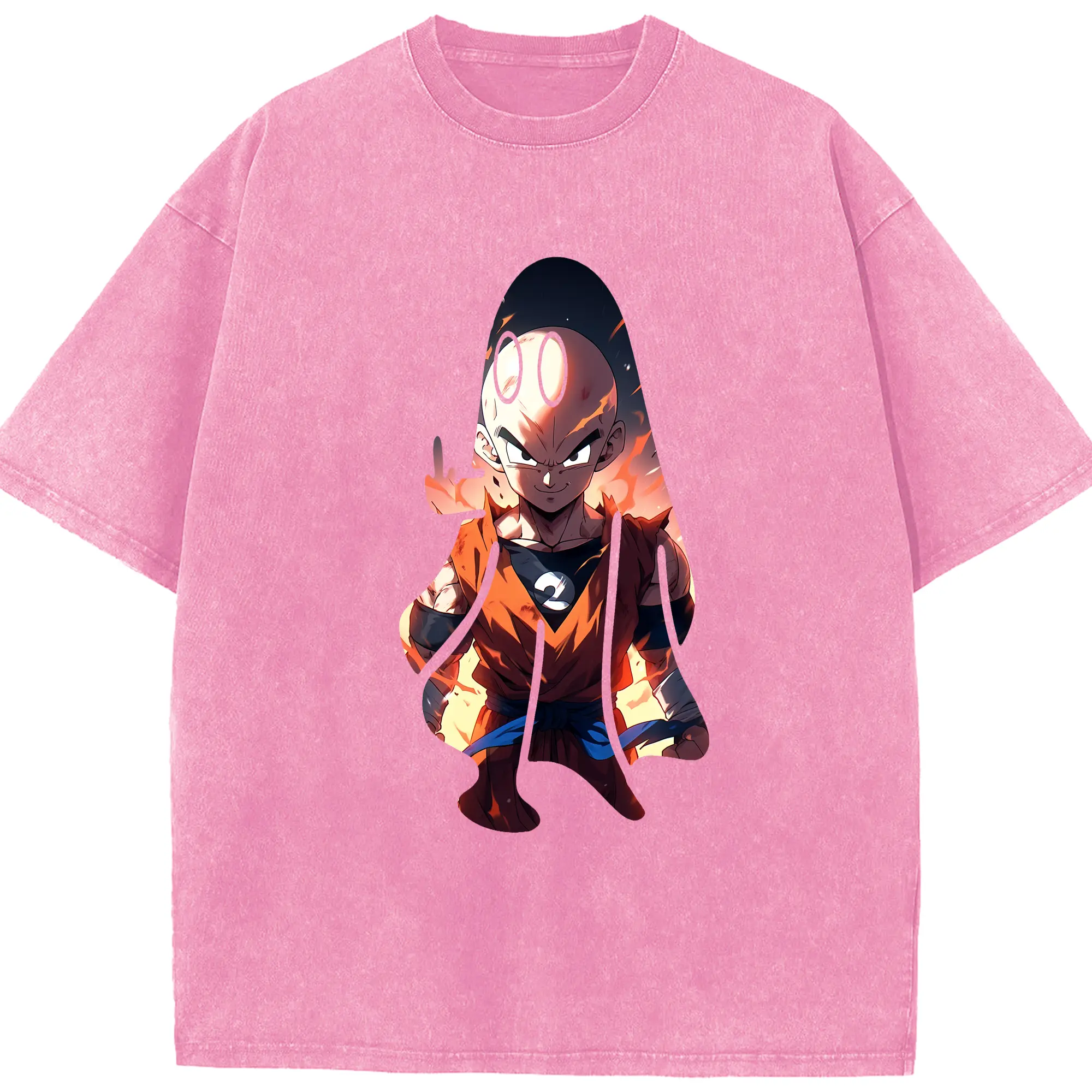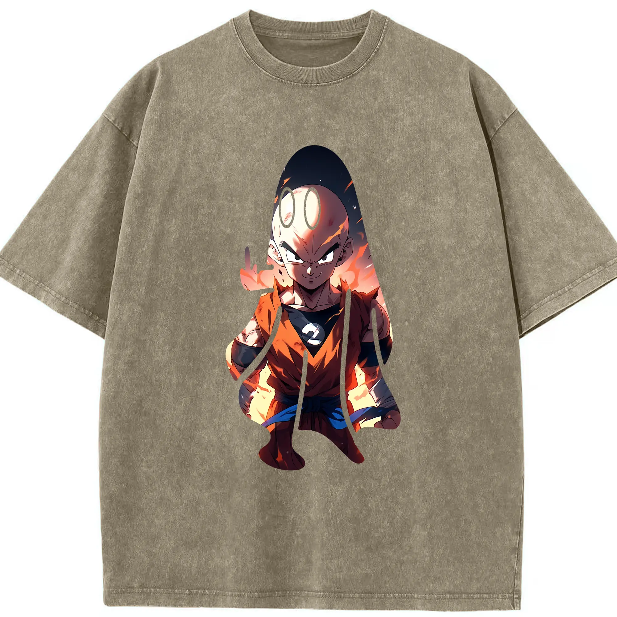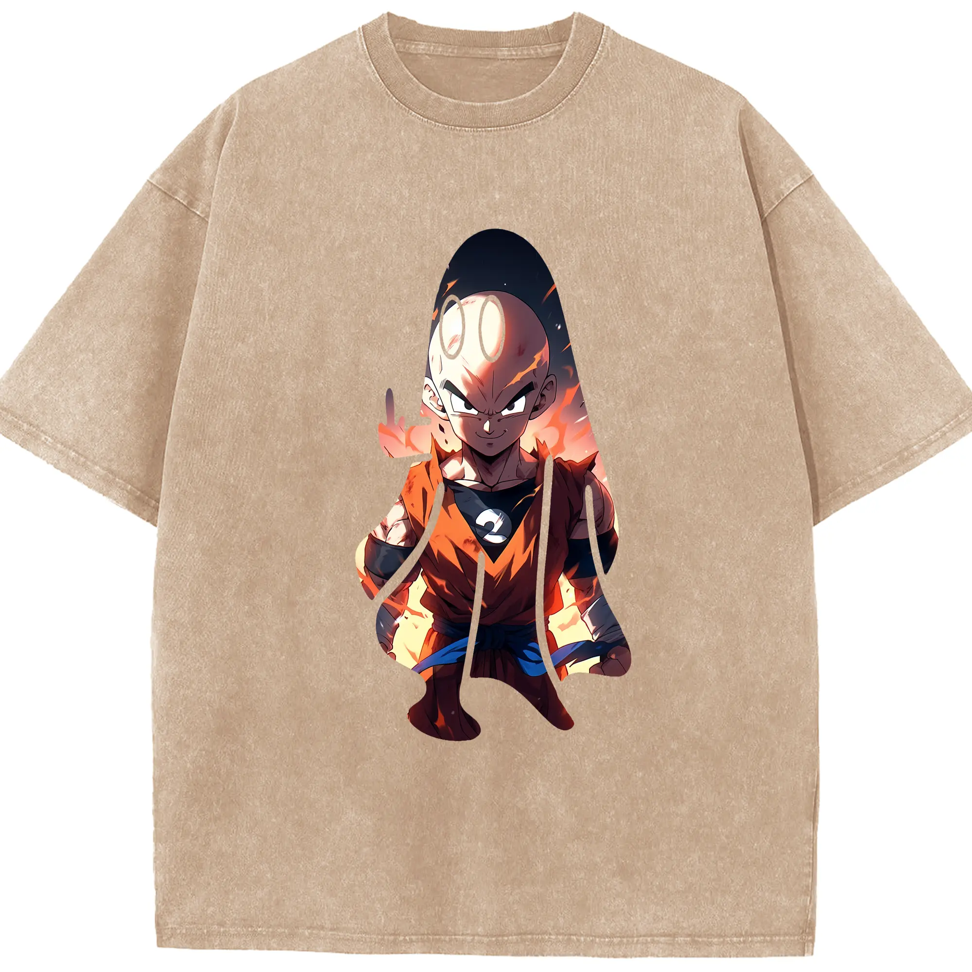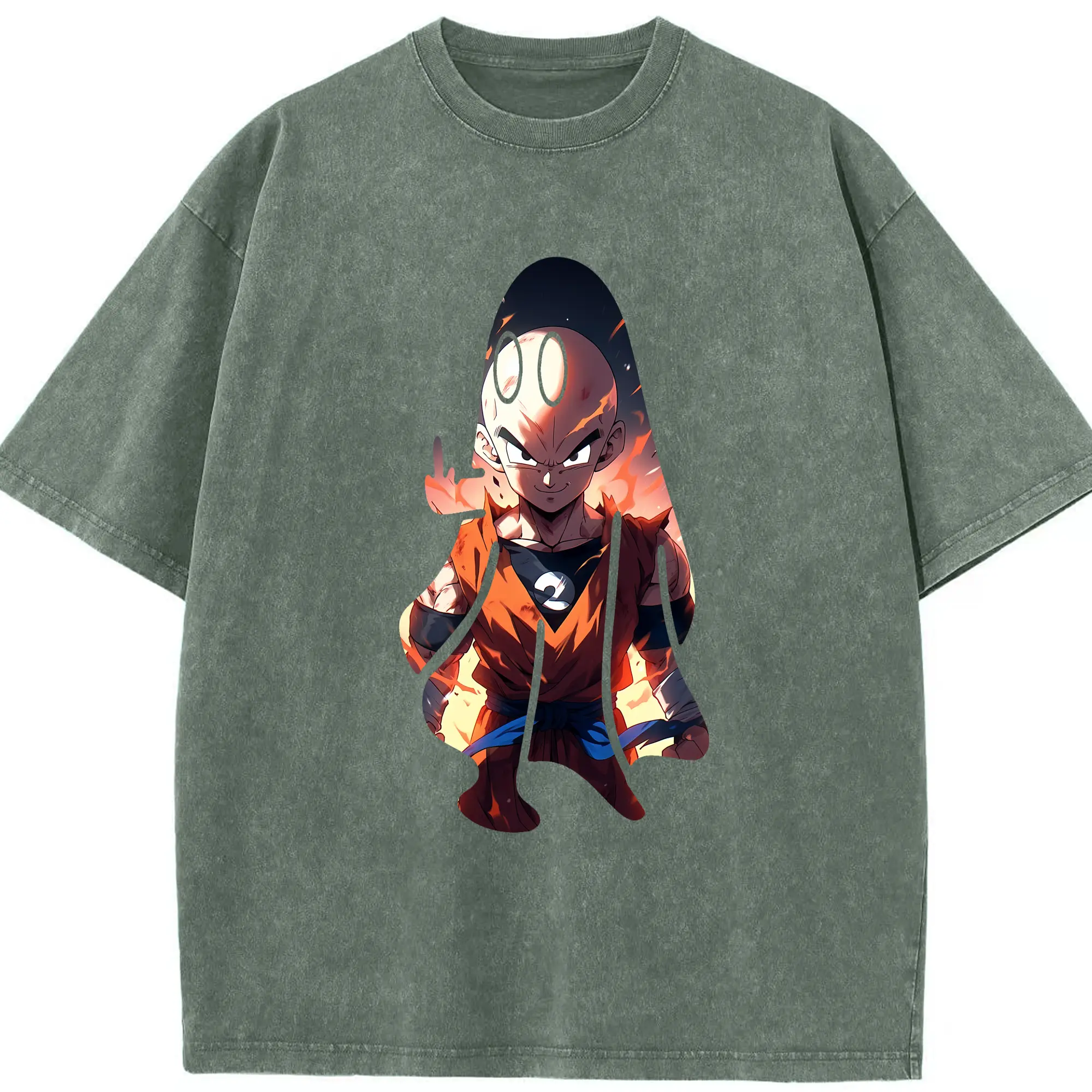 ドラゴンボール グッズクリリン - 綿100% ヴィンテージ風 半袖Tシャツ ・ 背面プリント ・ 柔らか肌触り ・ 通気性 快適 ・ スポーツ カジュアル 外出用