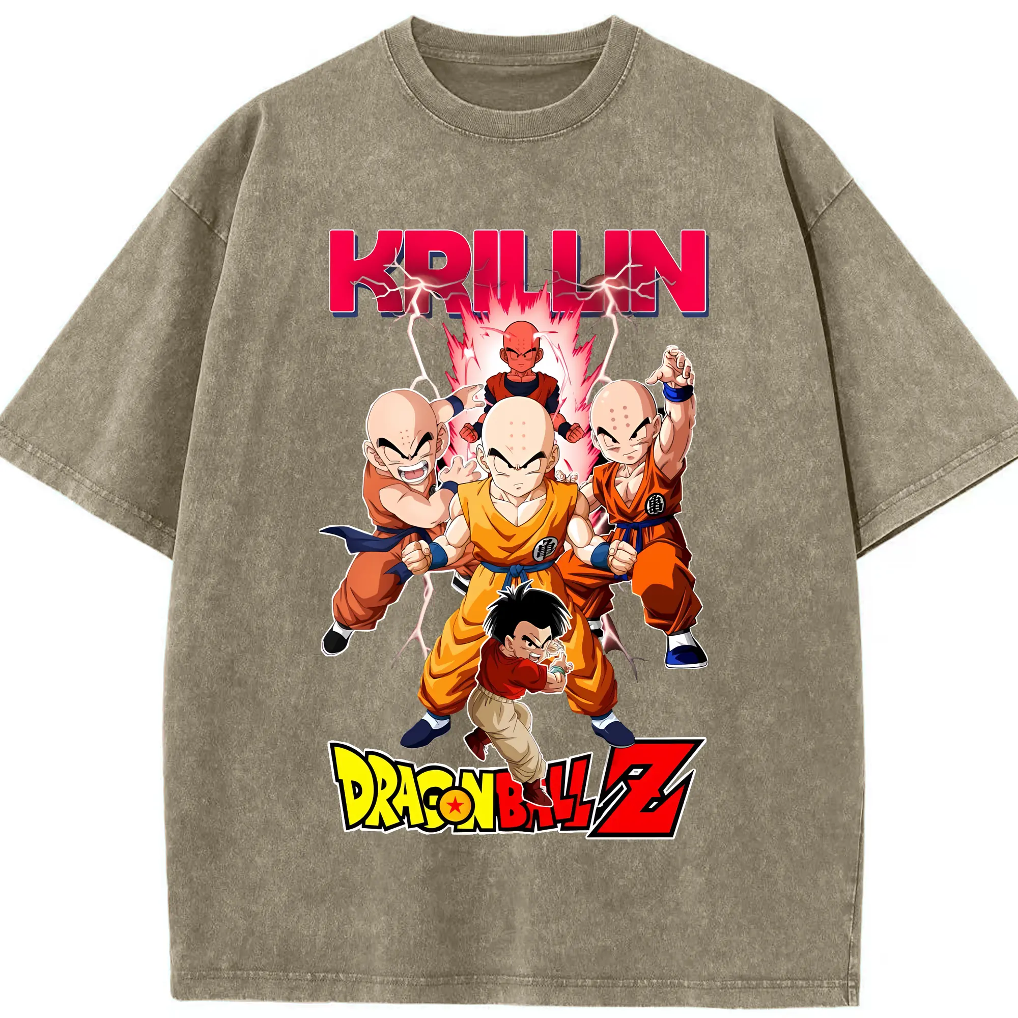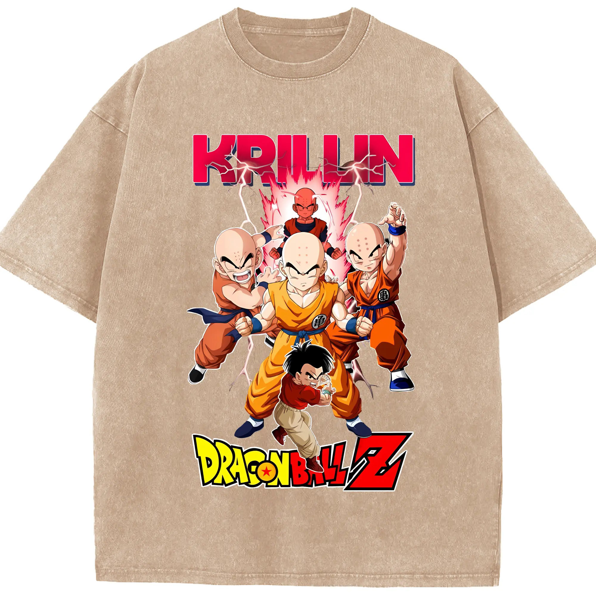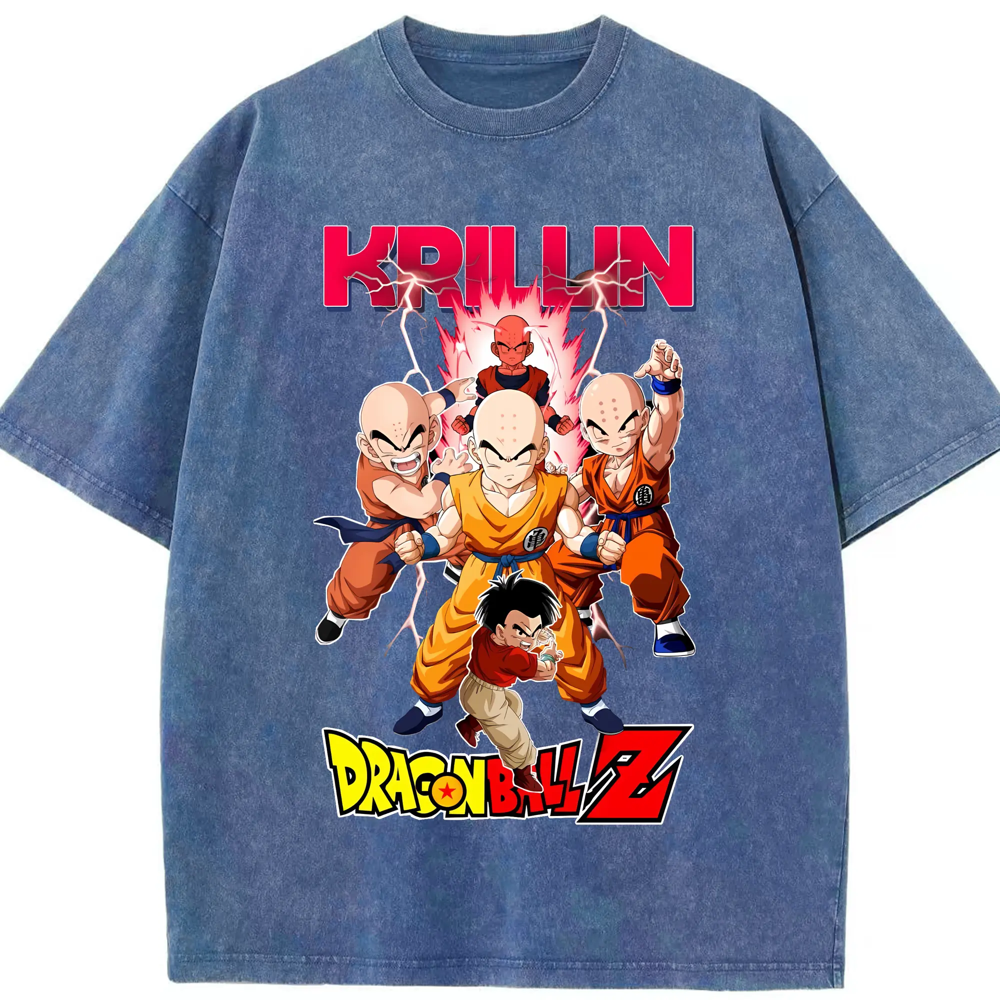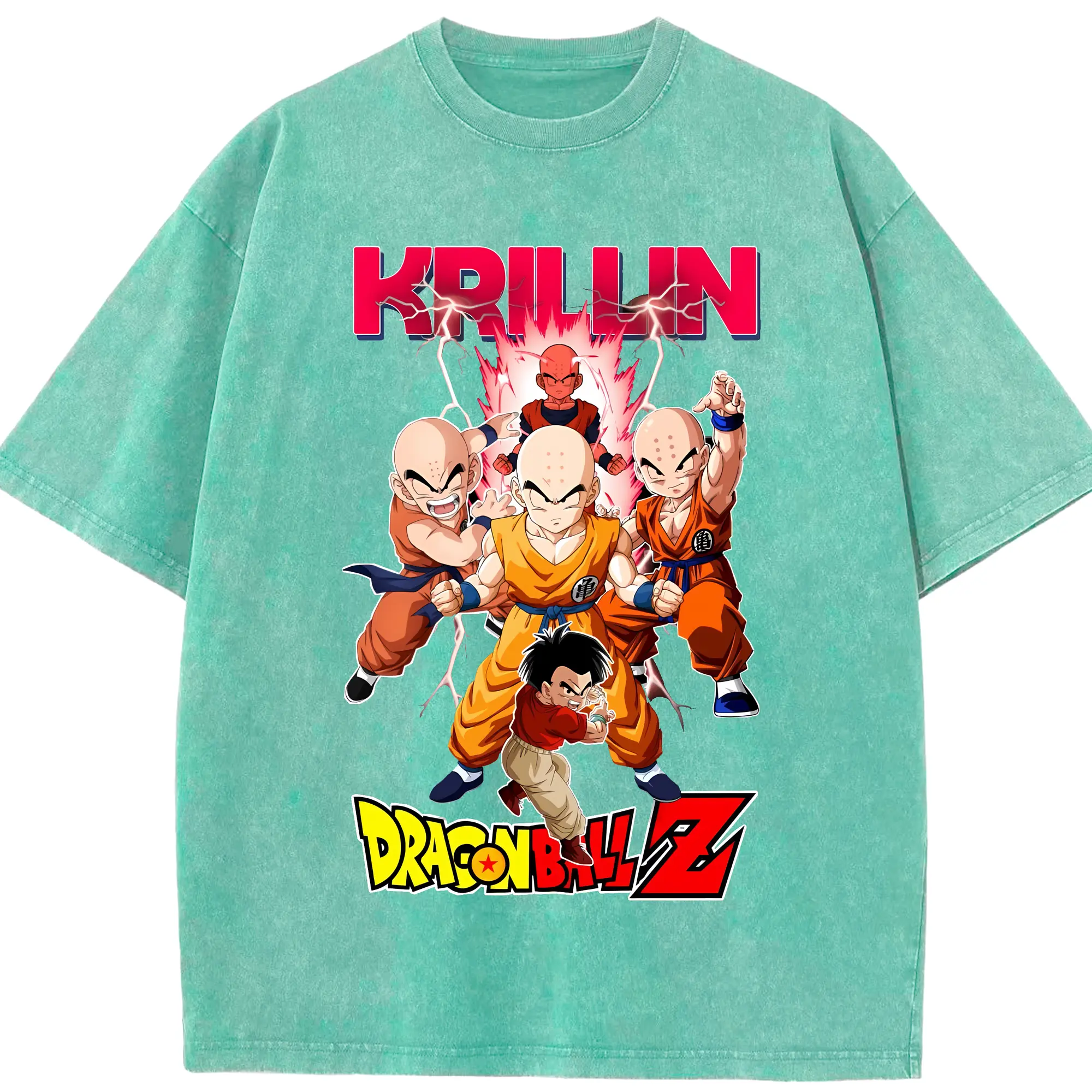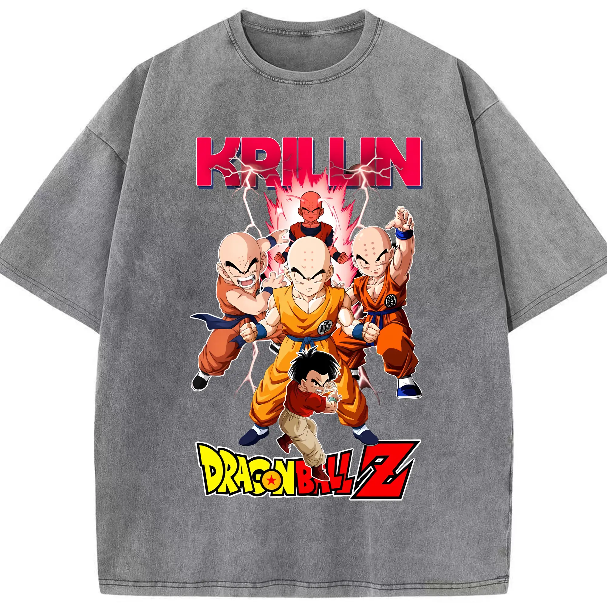 ドラゴンボール グッズクリリン - 綿100% ヴィンテージ風 半袖Tシャツ ・ 背面プリント ・ 柔らか肌触り ・ 通気性 快適 ・ スポーツ カジュアル 外出用