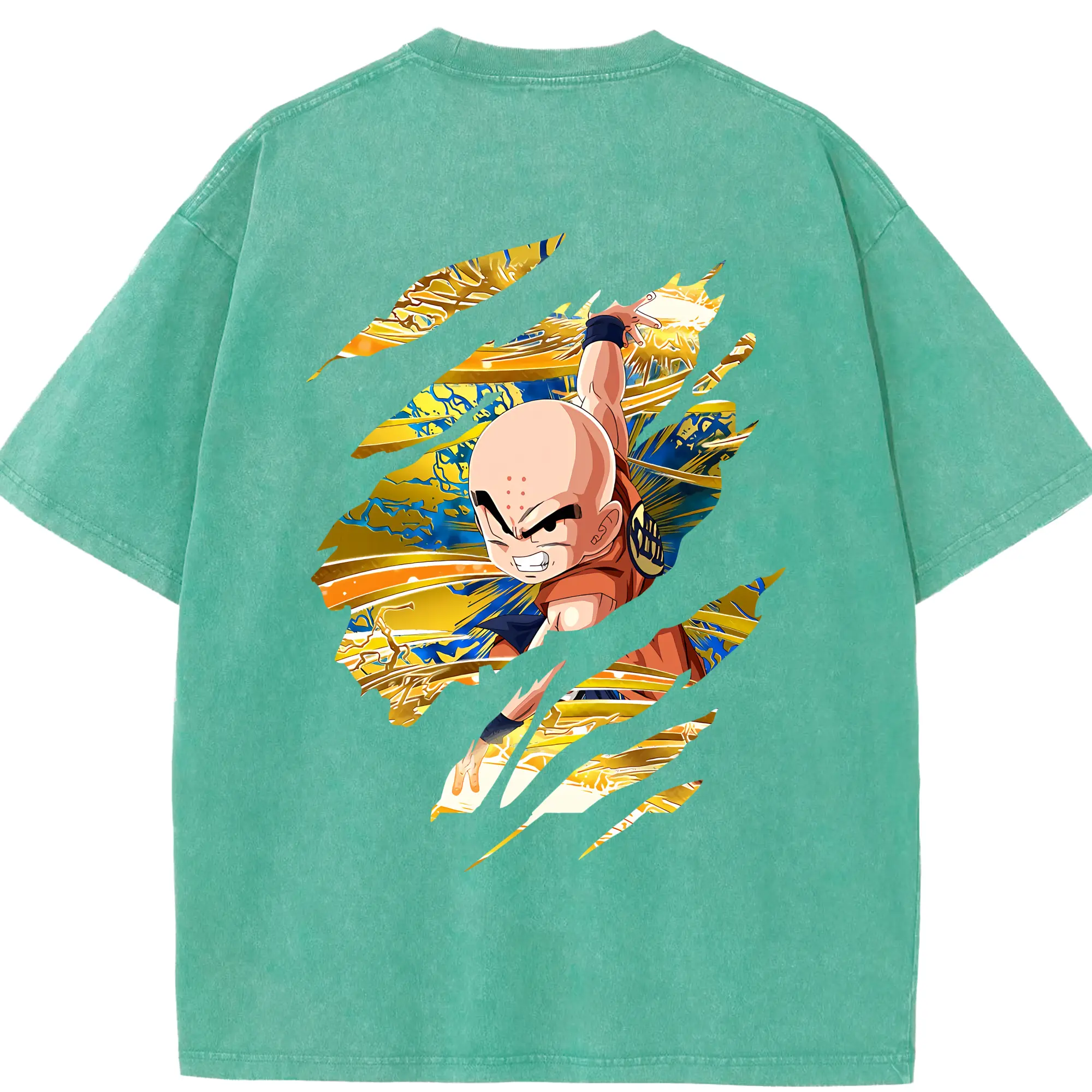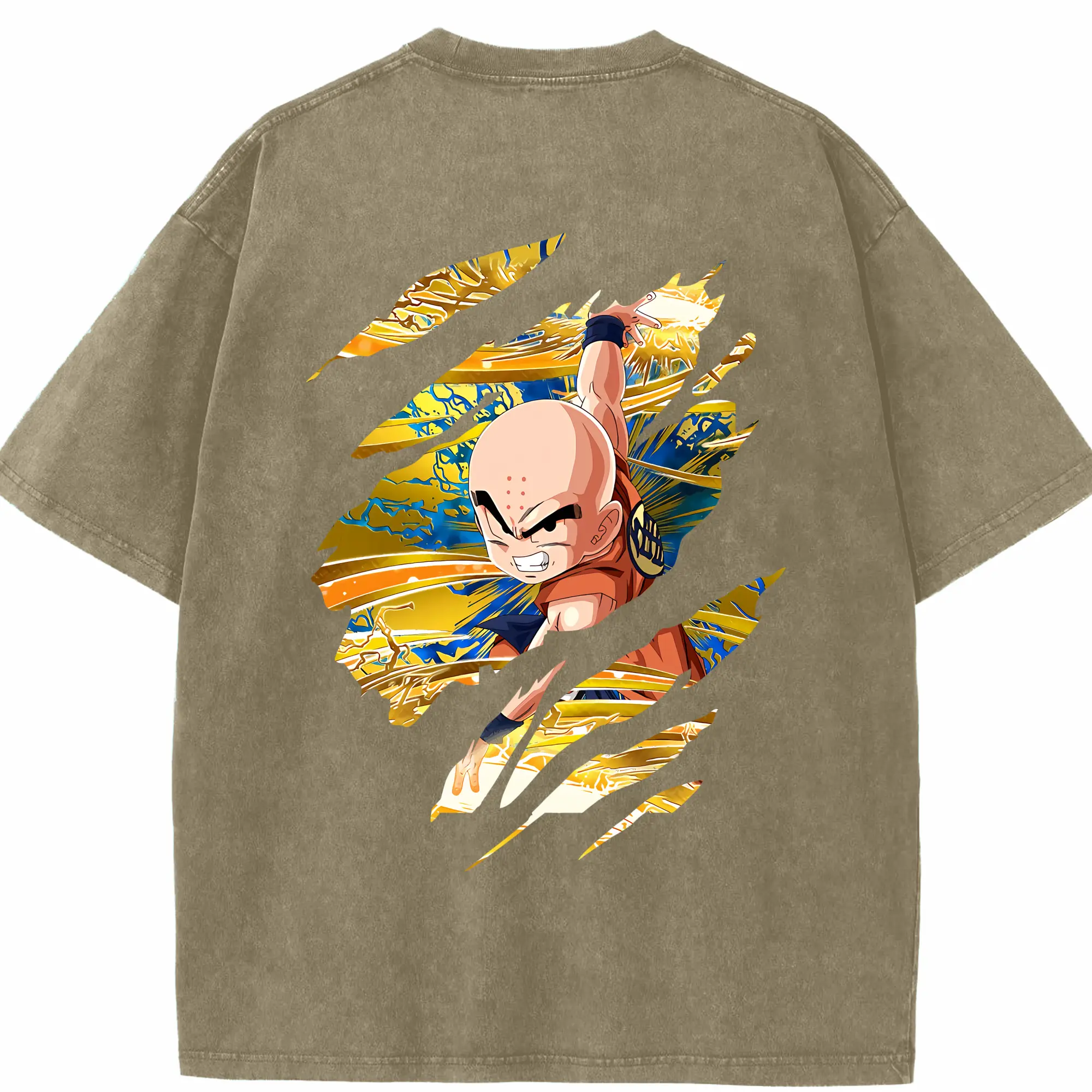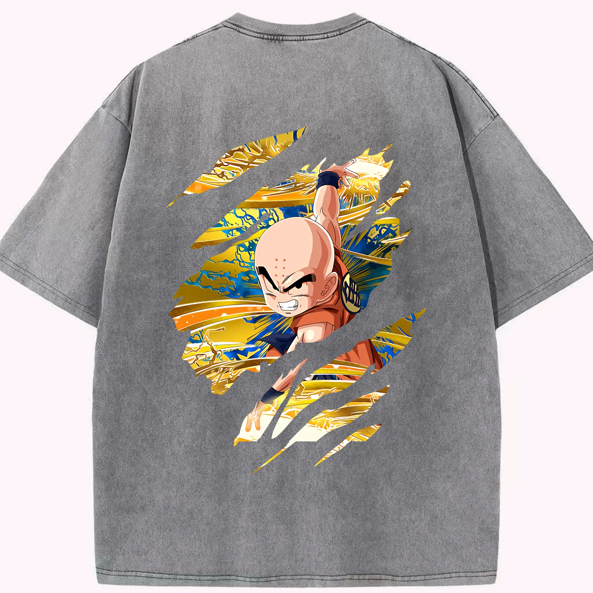 ドラゴンボール グッズクリリン - 綿100% ヴィンテージ風 半袖Tシャツ ・ フロントプリント ・ 柔らか肌触り ・ 通気性 快適 ・ スポーツ カジュアル 外出用