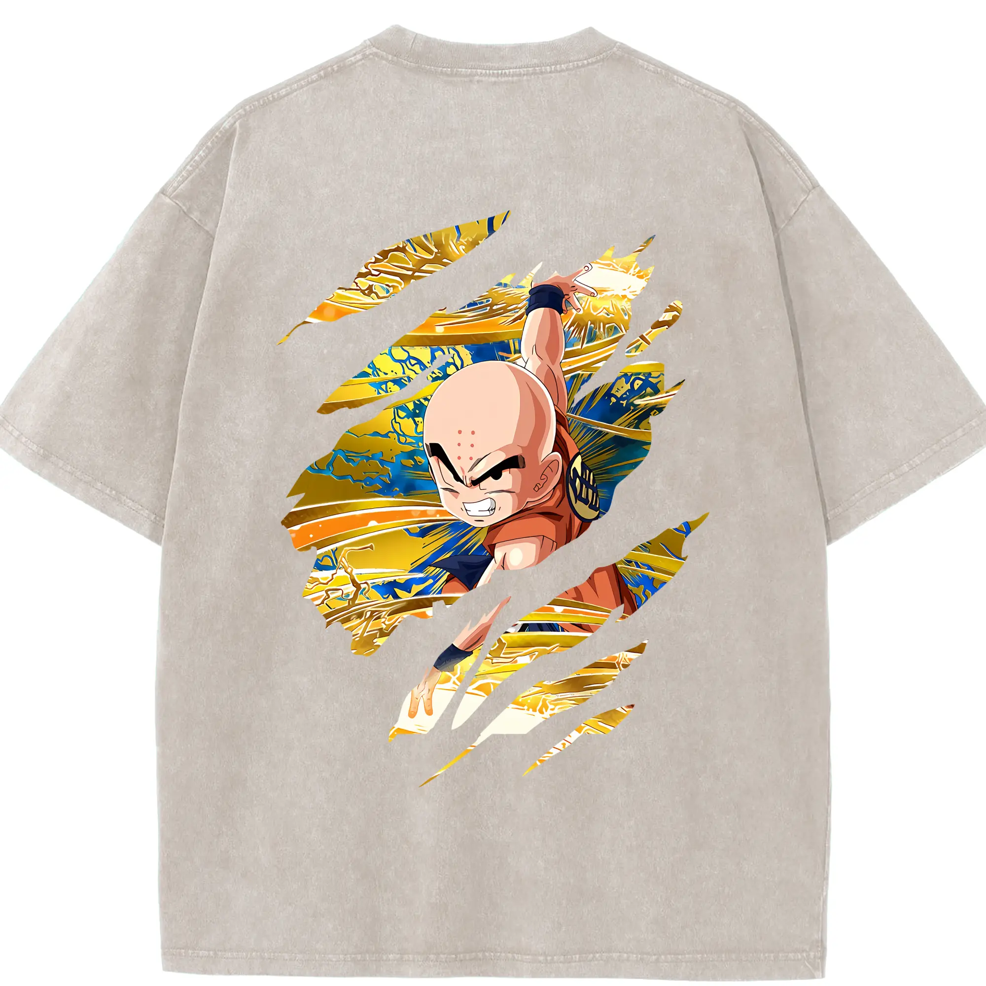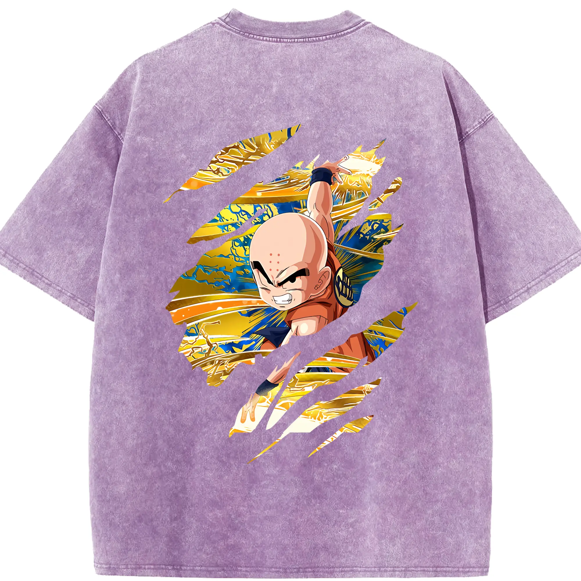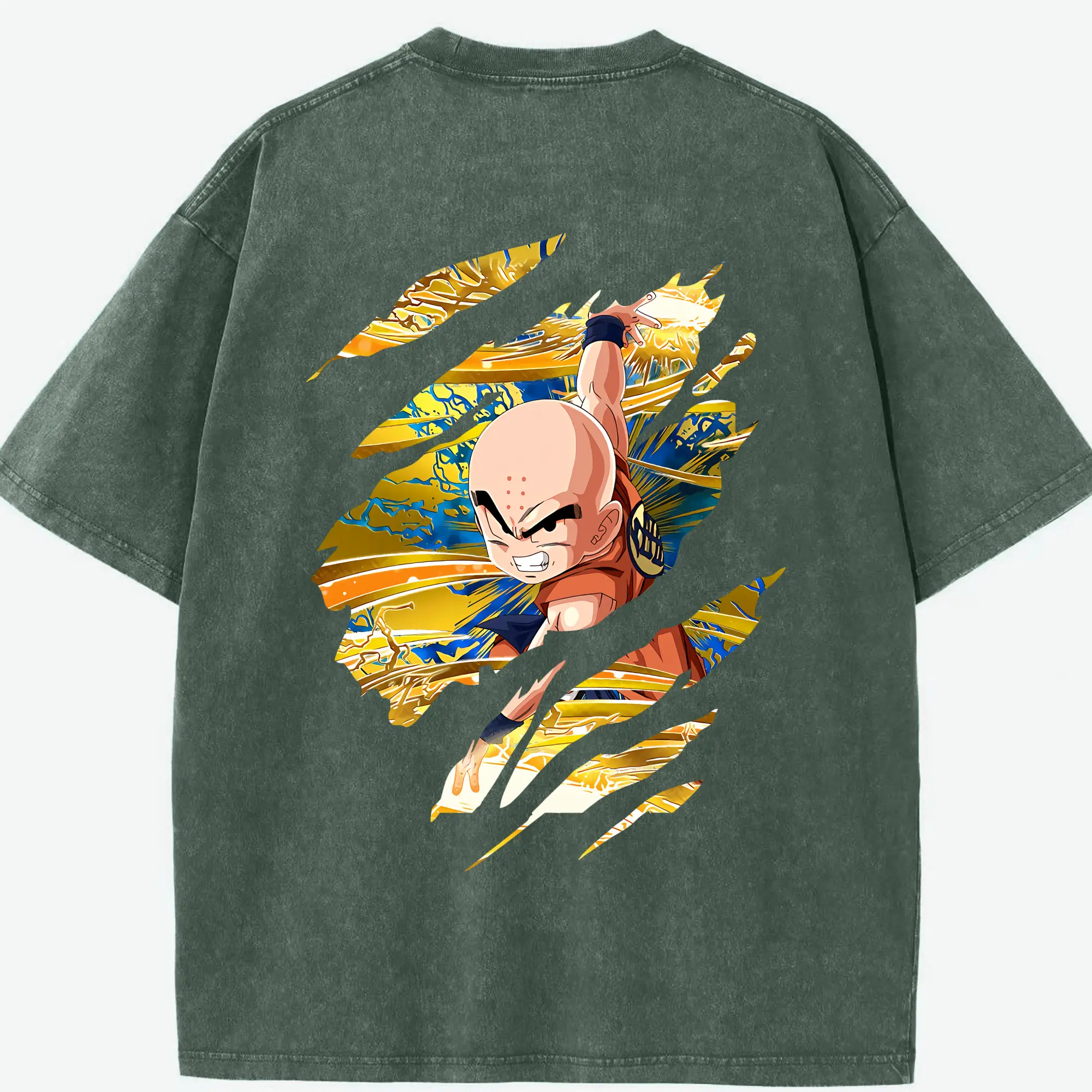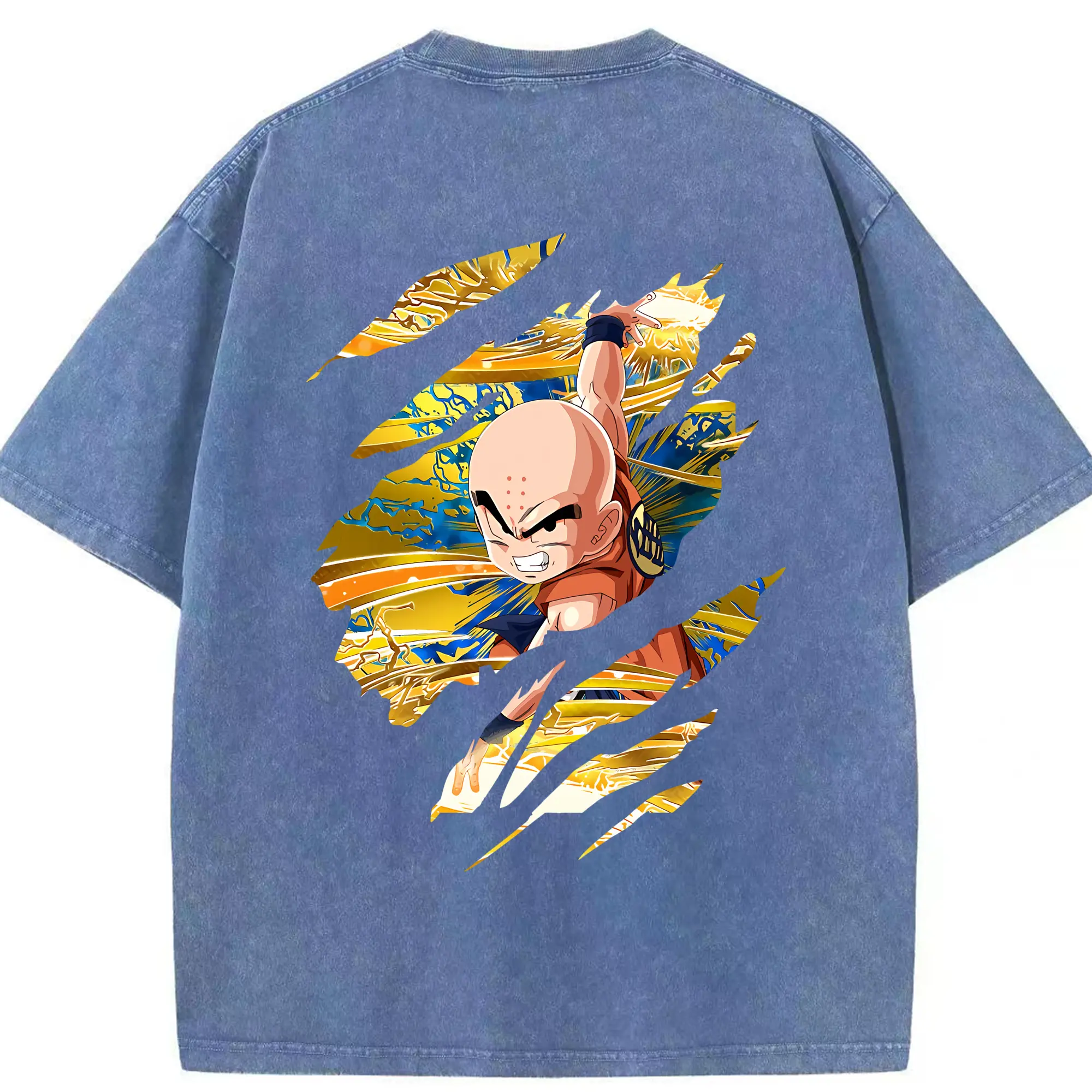 ドラゴンボール グッズクリリン - 綿100% ヴィンテージ風 半袖Tシャツ ・ フロントプリント ・ 柔らか肌触り ・ 通気性 快適 ・ スポーツ カジュアル 外出用