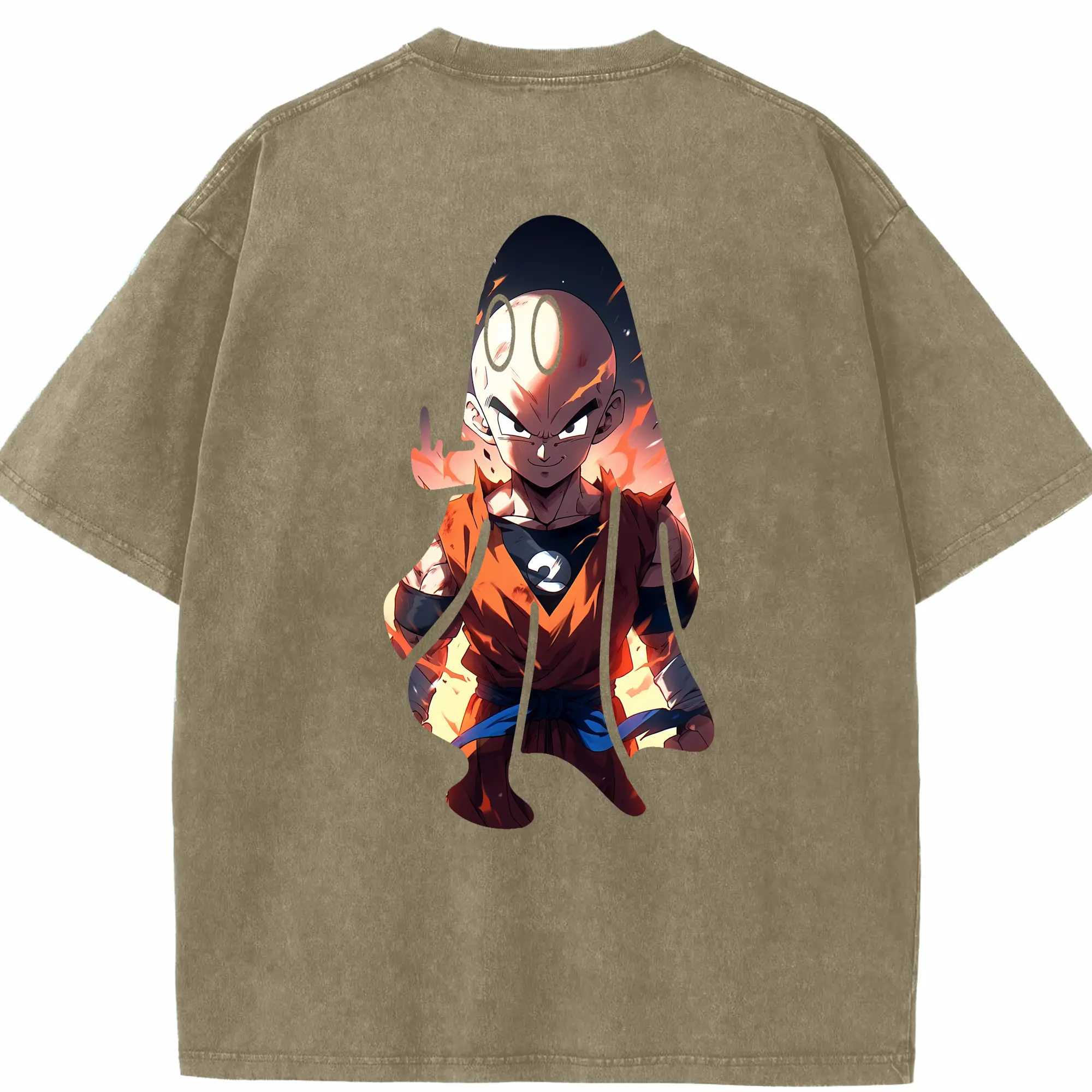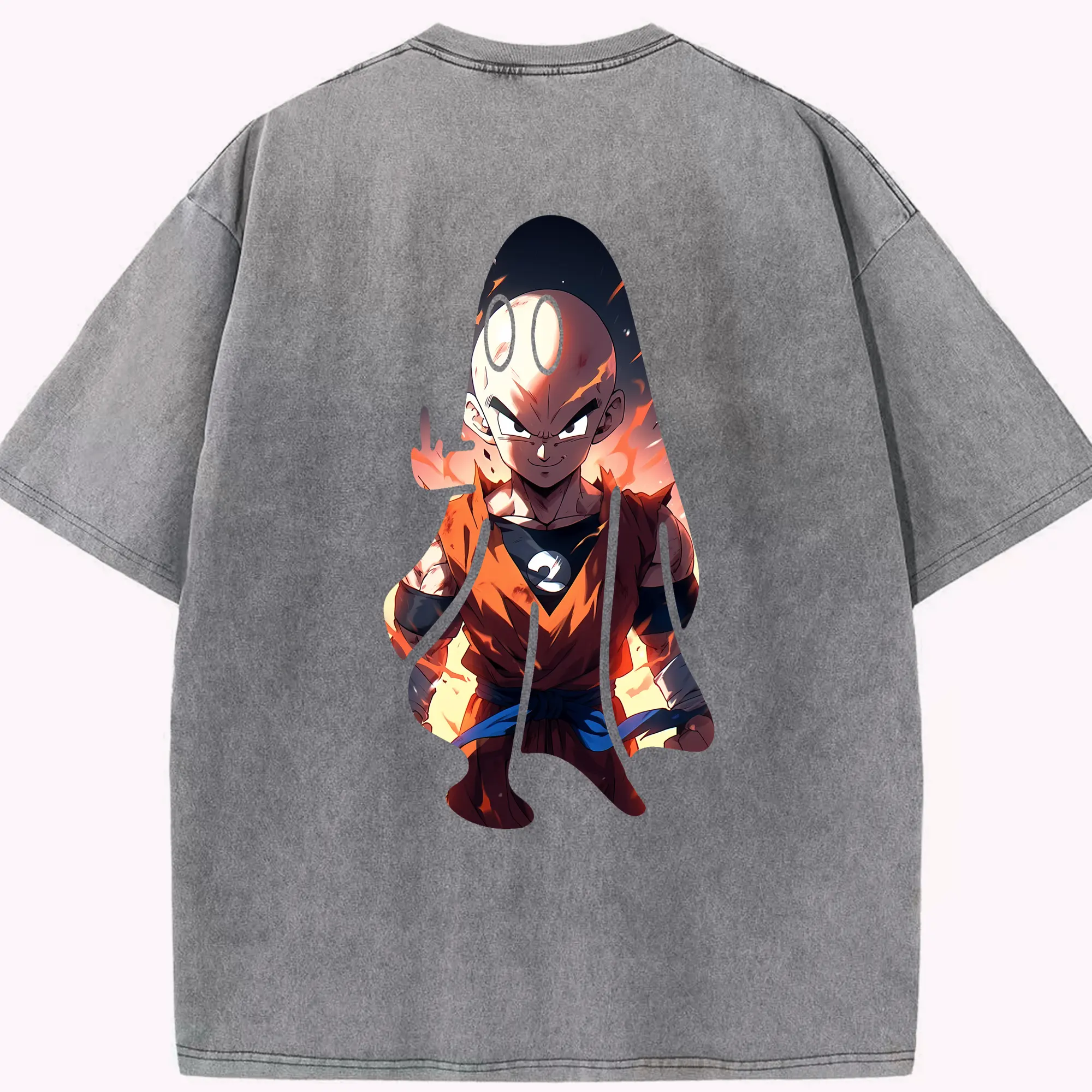 ドラゴンボール グッズクリリン - 綿100% ヴィンテージ風 半袖Tシャツ ・ フロントプリント ・ 柔らか肌触り ・ 通気性 快適 ・ スポーツ カジュアル 外出用