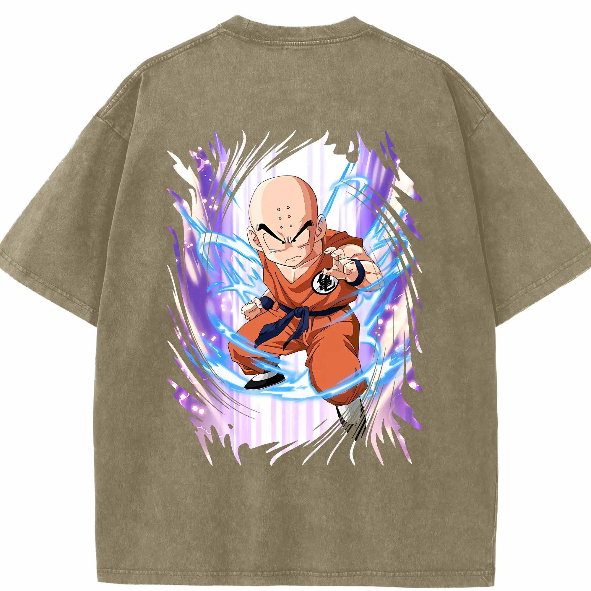 ドラゴンボール グッズクリリン - 綿100% ヴィンテージ風 半袖Tシャツ ・ フロントプリント ・ 柔らか肌触り ・ 通気性 快適 ・ スポーツ カジュアル 外出用