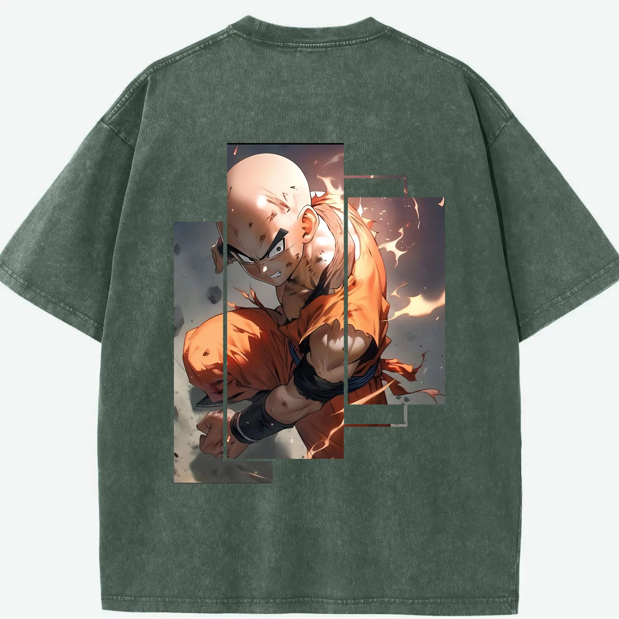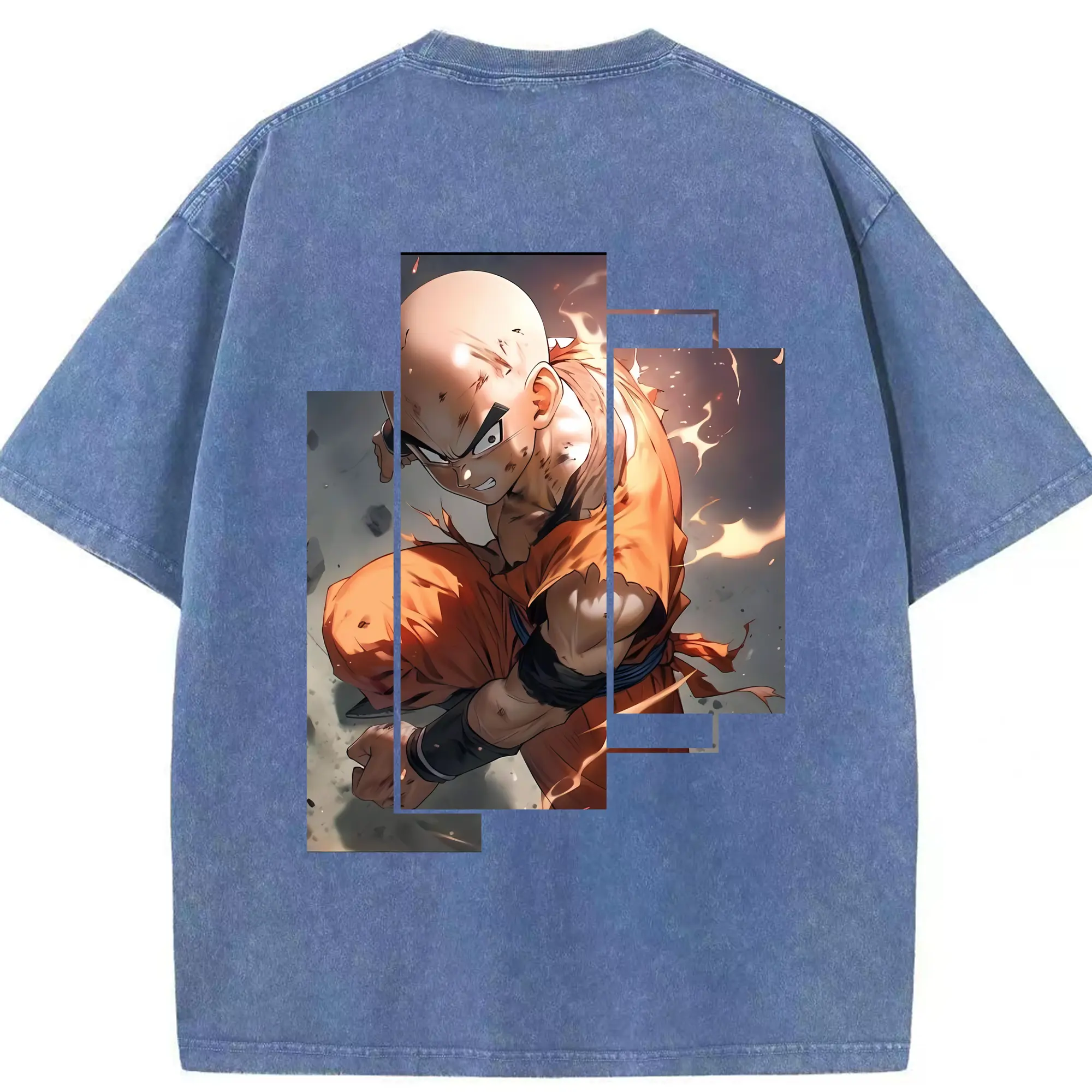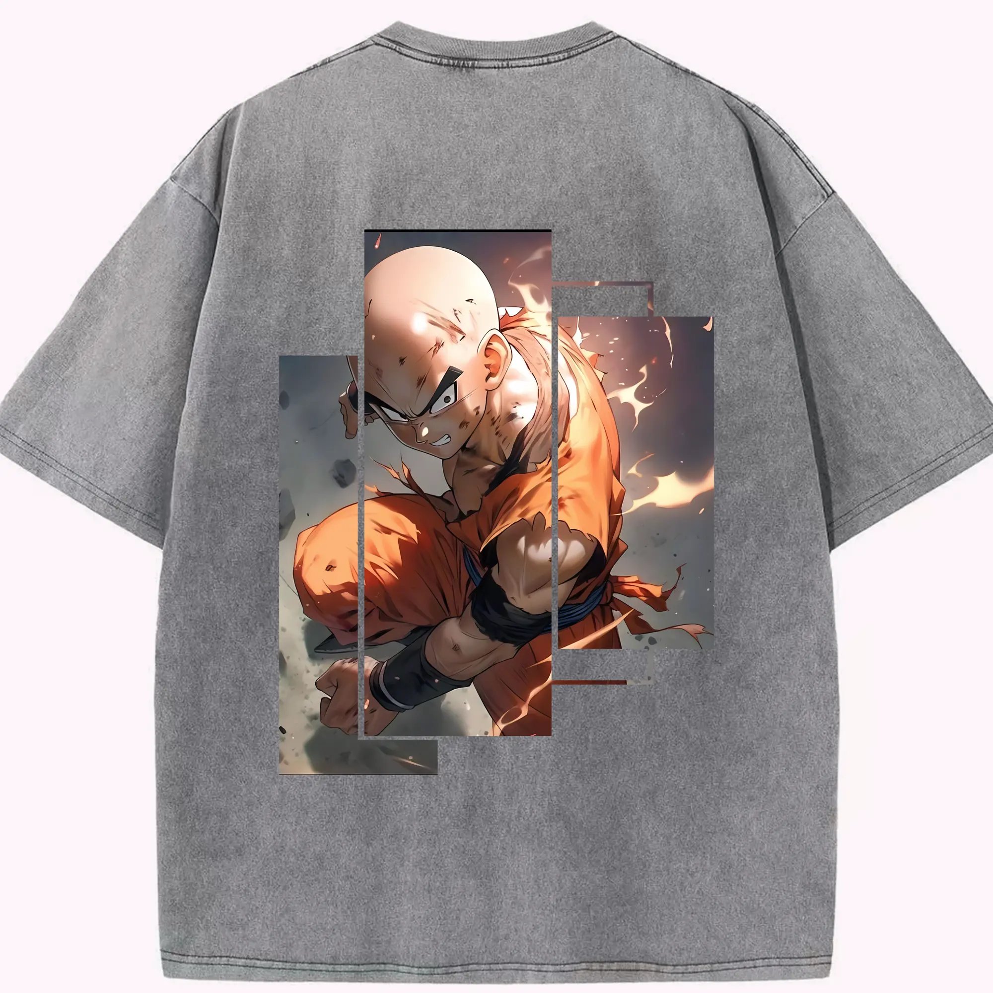 ドラゴンボール グッズクリリン - 綿100% ヴィンテージ風 半袖Tシャツ ・ フロントプリント ・ 柔らか肌触り ・ 通気性 快適 ・ スポーツ カジュアル 外出用