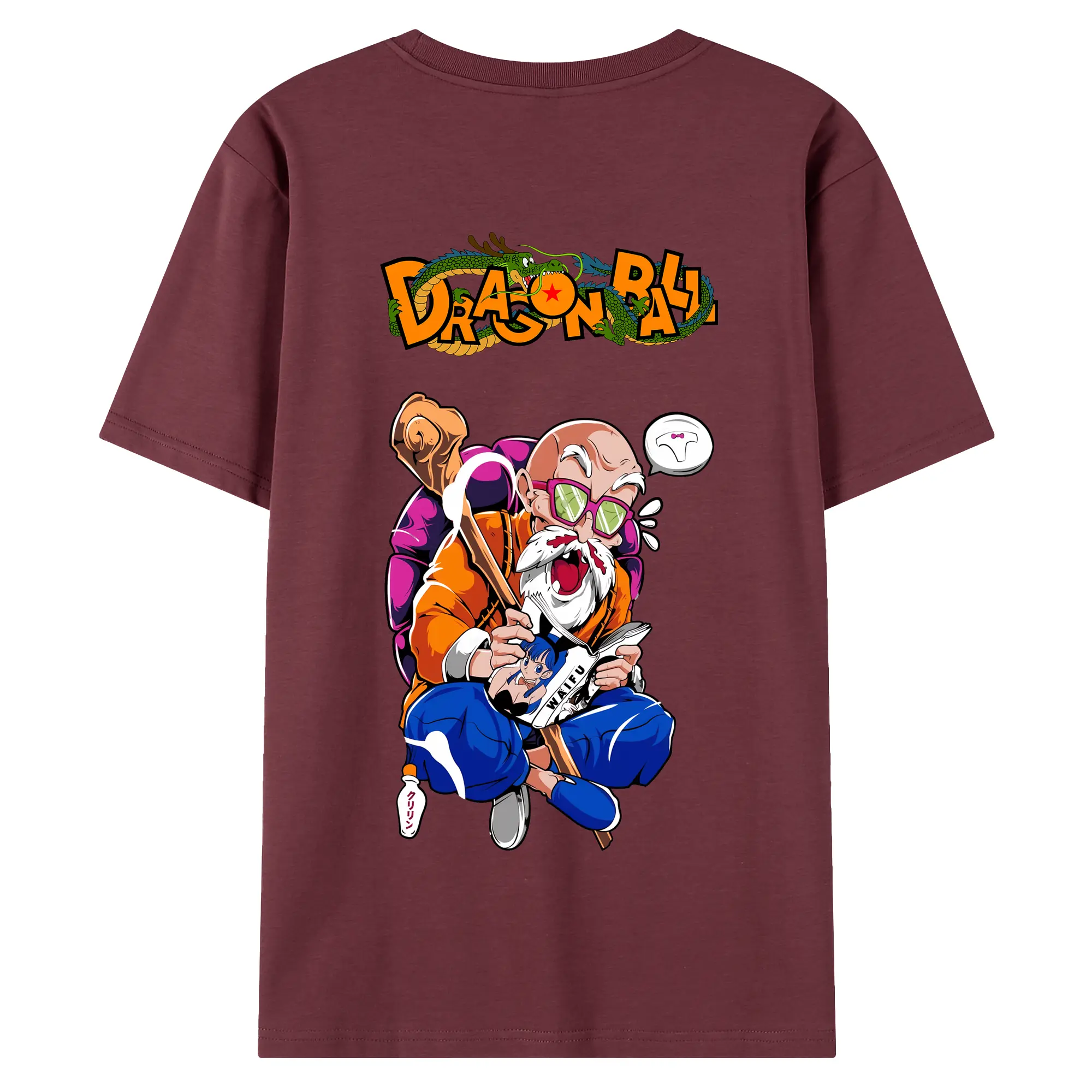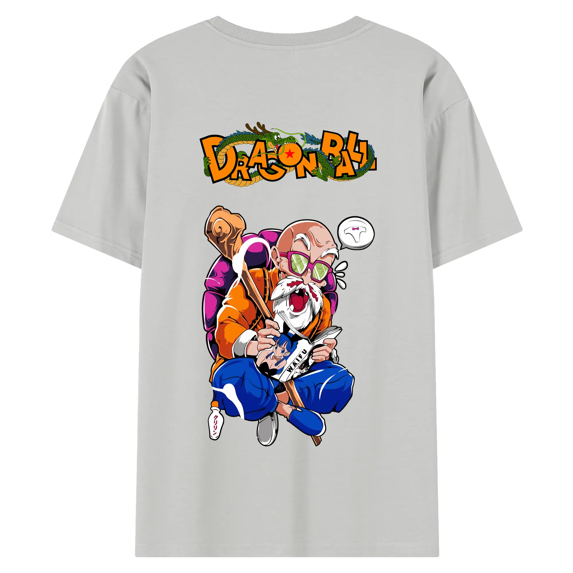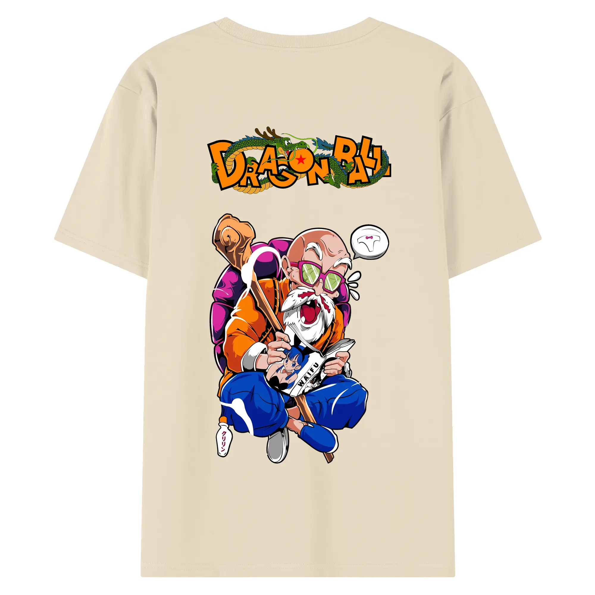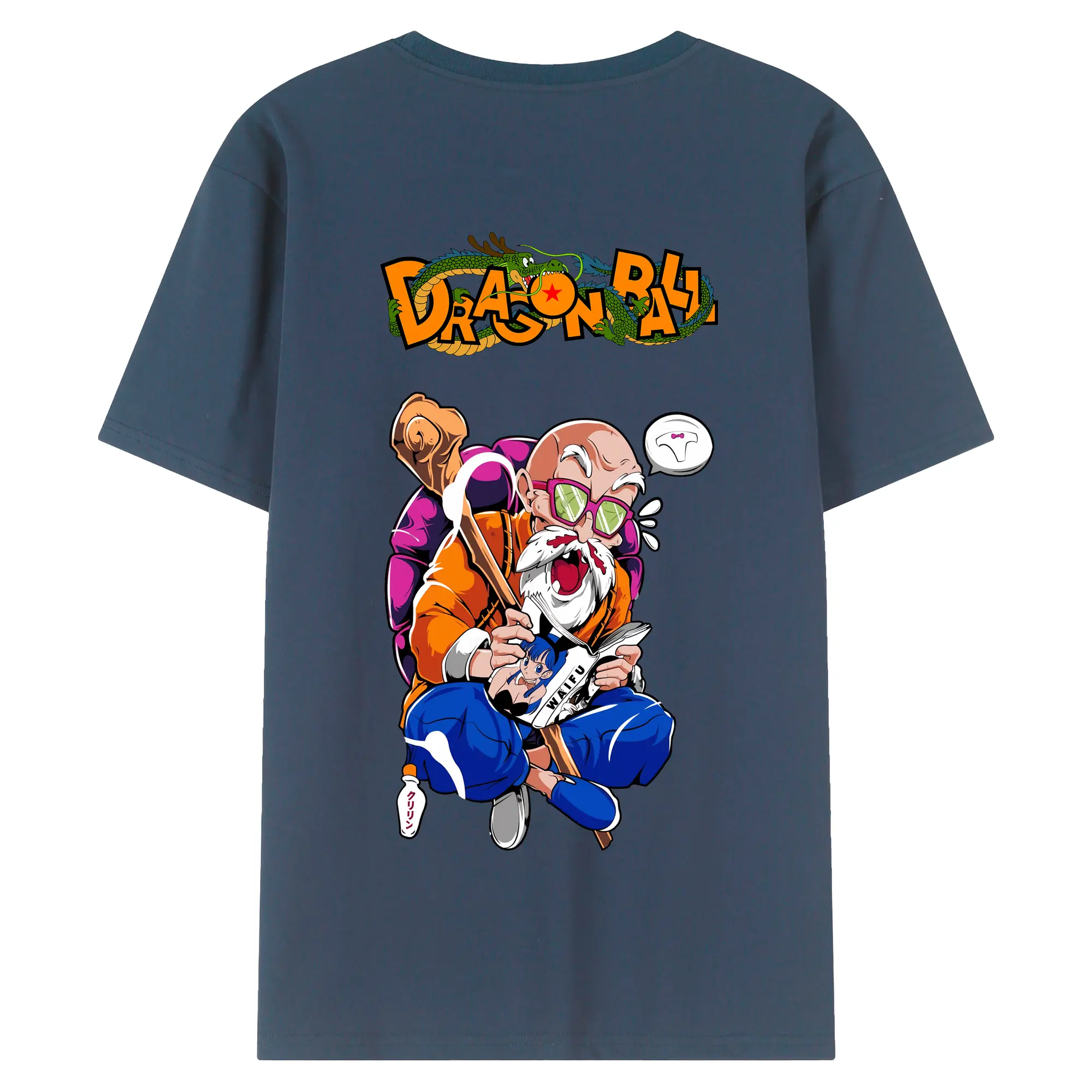 ドラゴンボール グッズ 亀仙人 - 綿100% ヴィンテージ風 半袖Tシャツ ・ 背面プリント ・ 柔らか肌触り ・ 通気性 快適 ・ スポーツ カジュアル 外出用