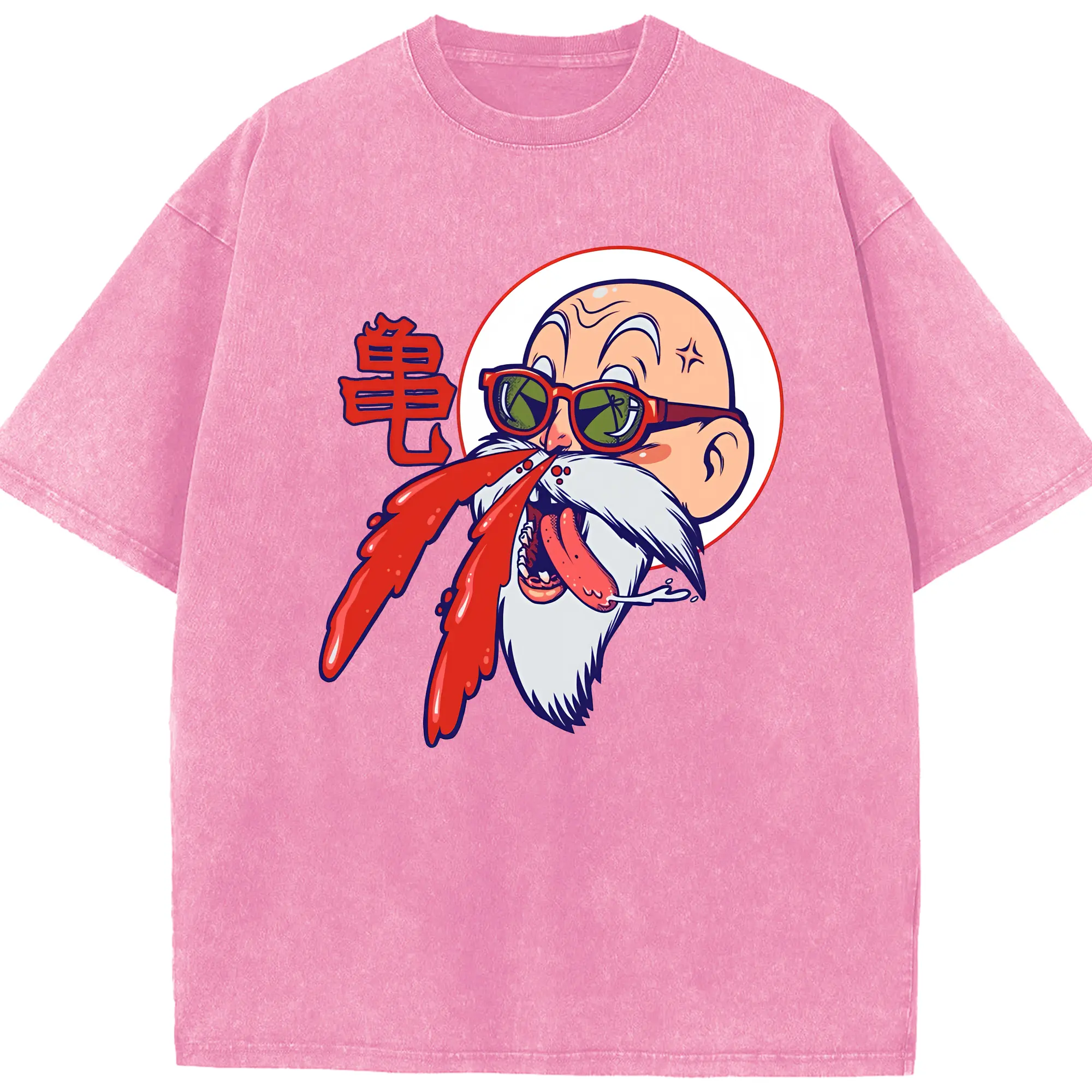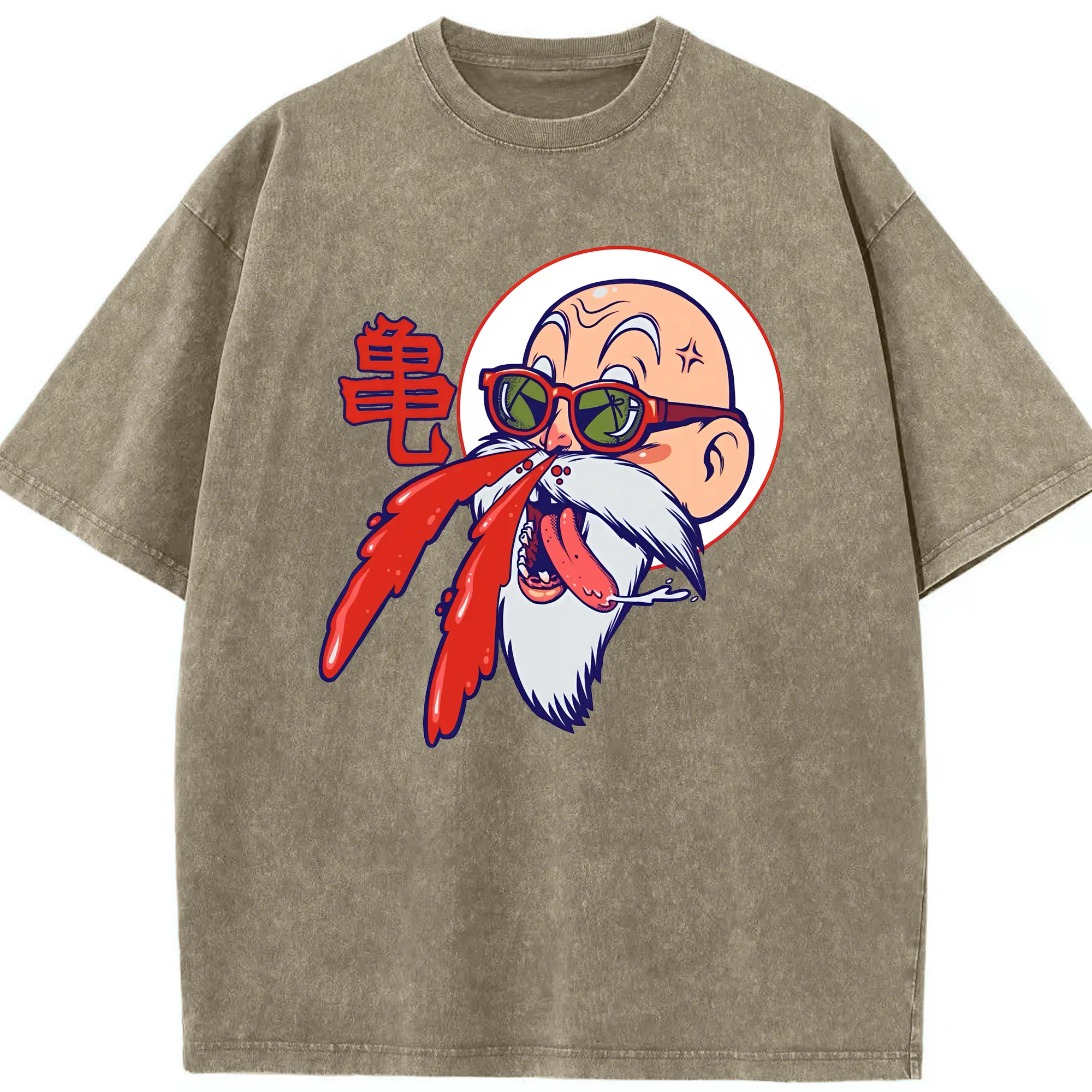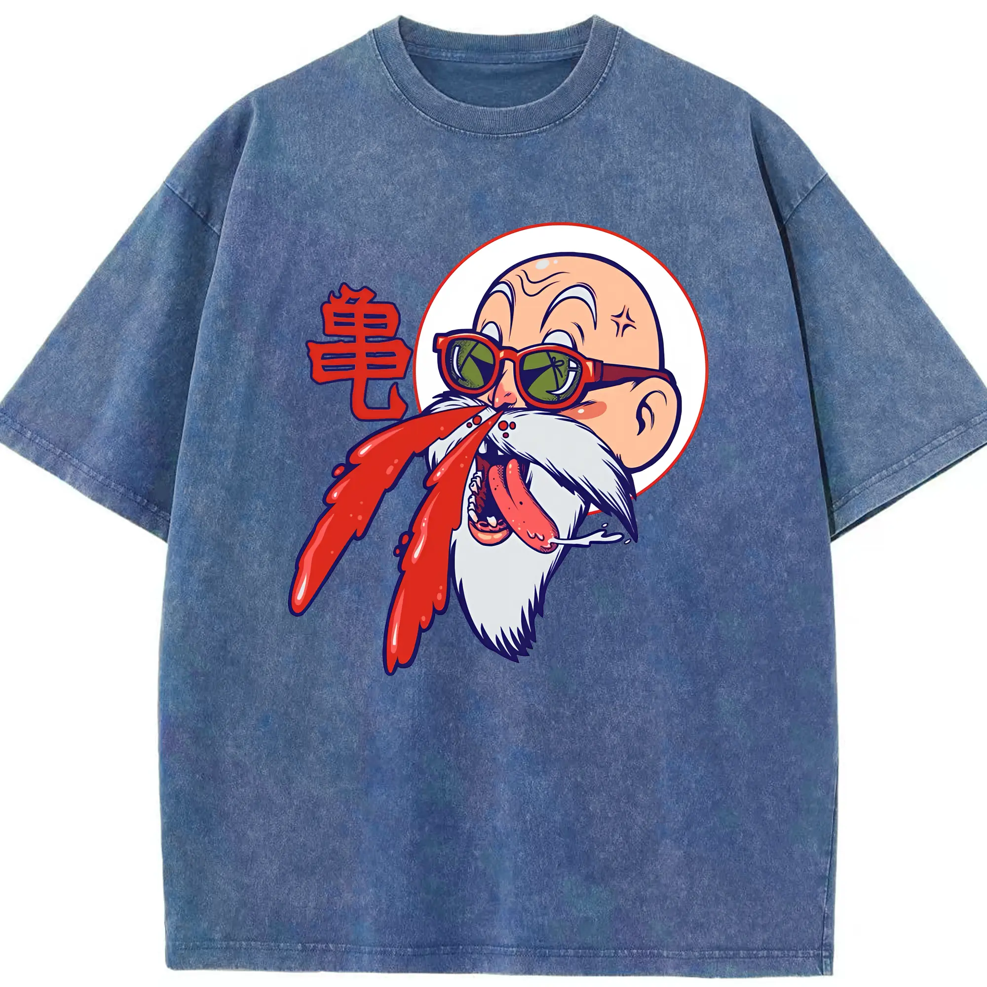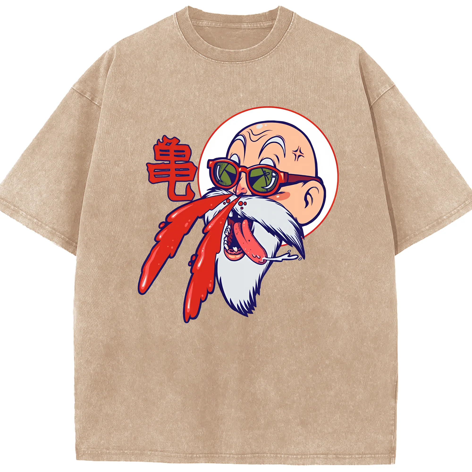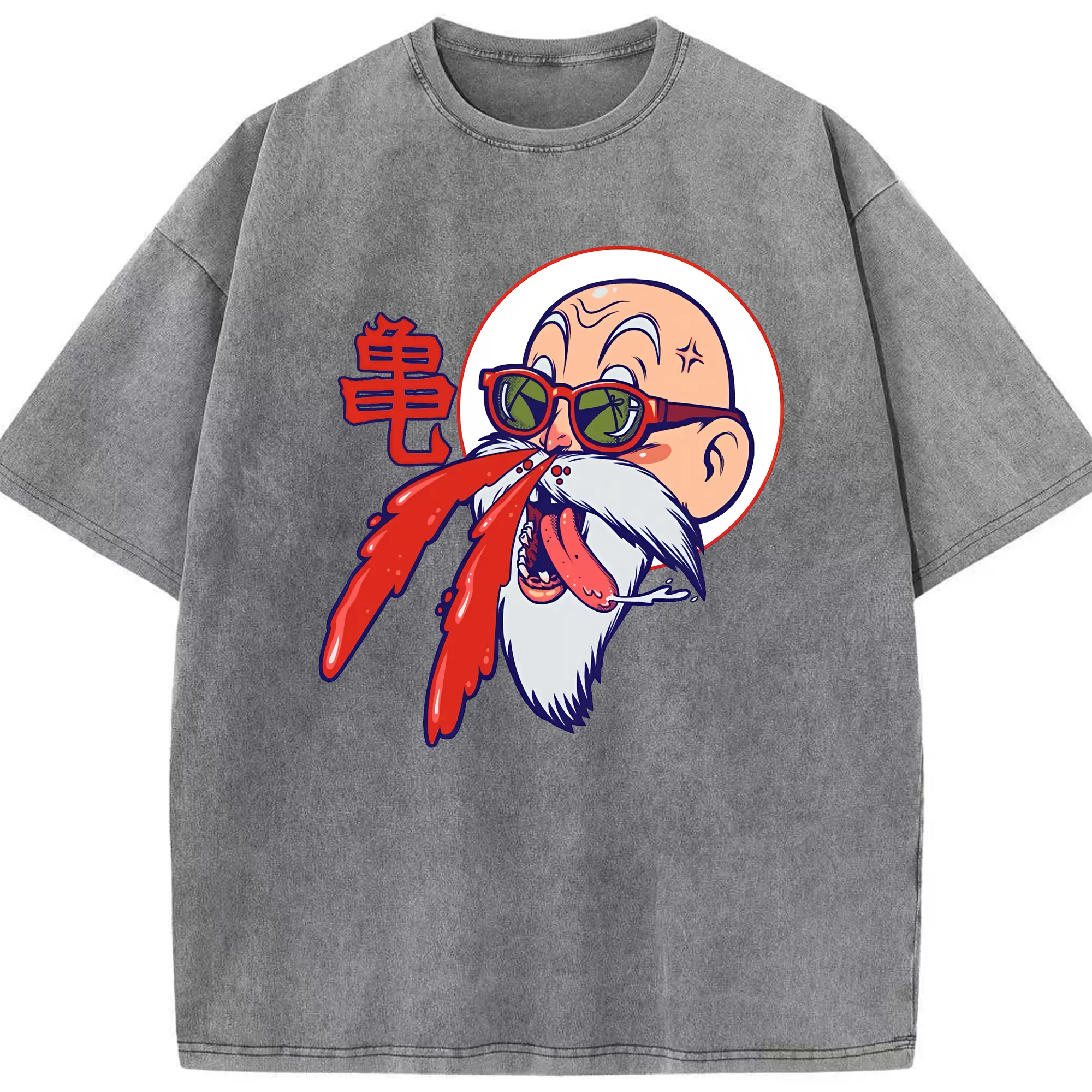 ドラゴンボール グッズ 亀仙人 - 綿100% ヴィンテージ風 半袖Tシャツ ・ 背面プリント ・ 柔らか肌触り ・ 通気性 快適 ・ スポーツ カジュアル 外出用