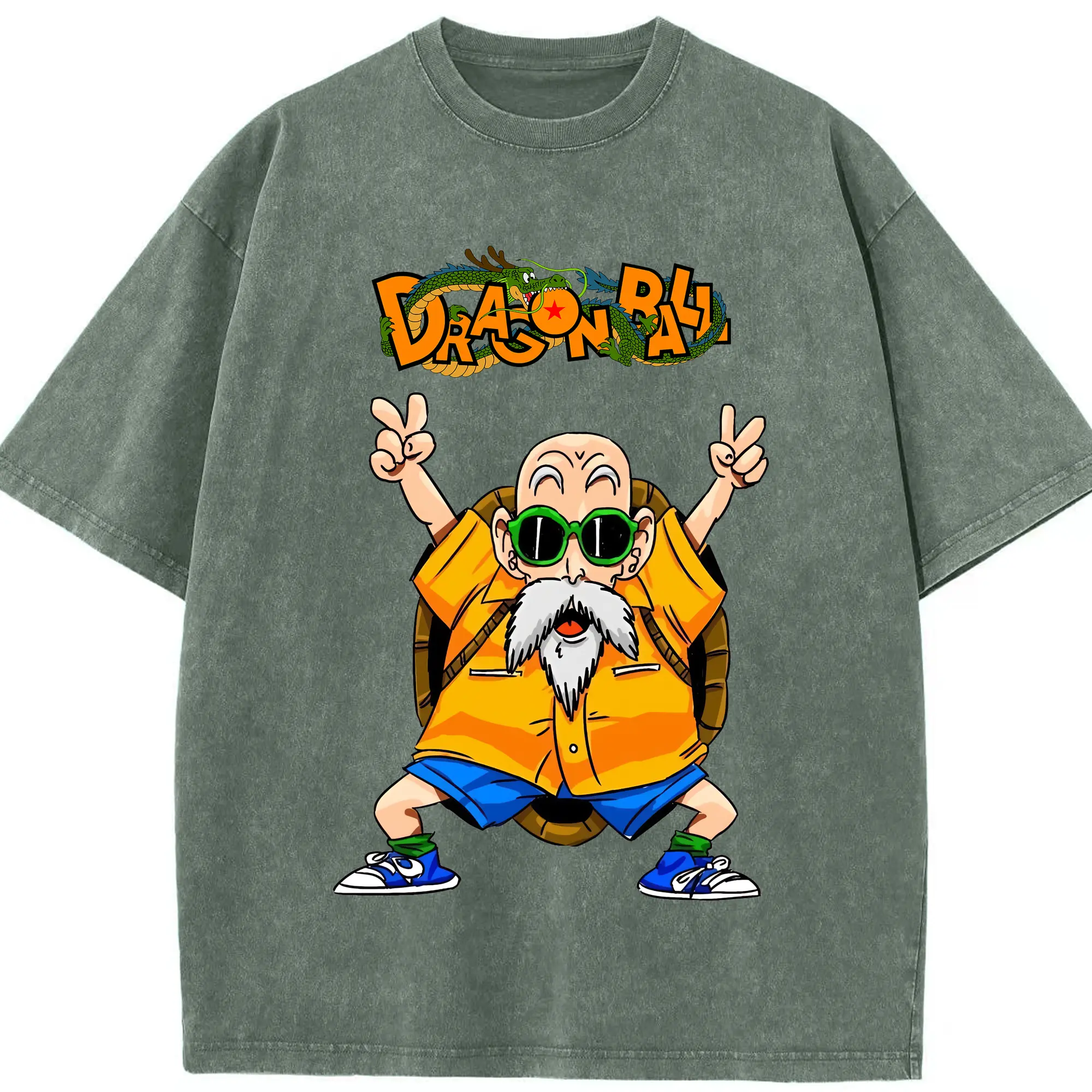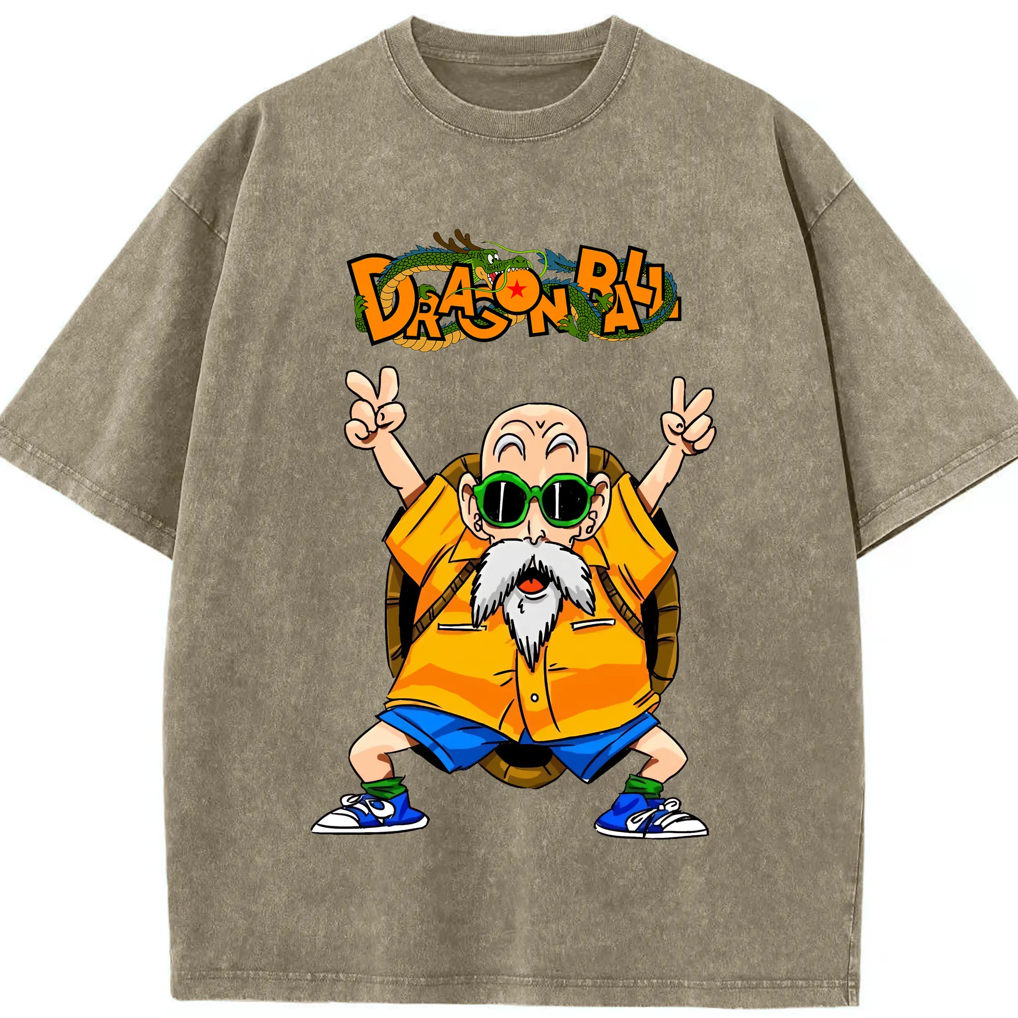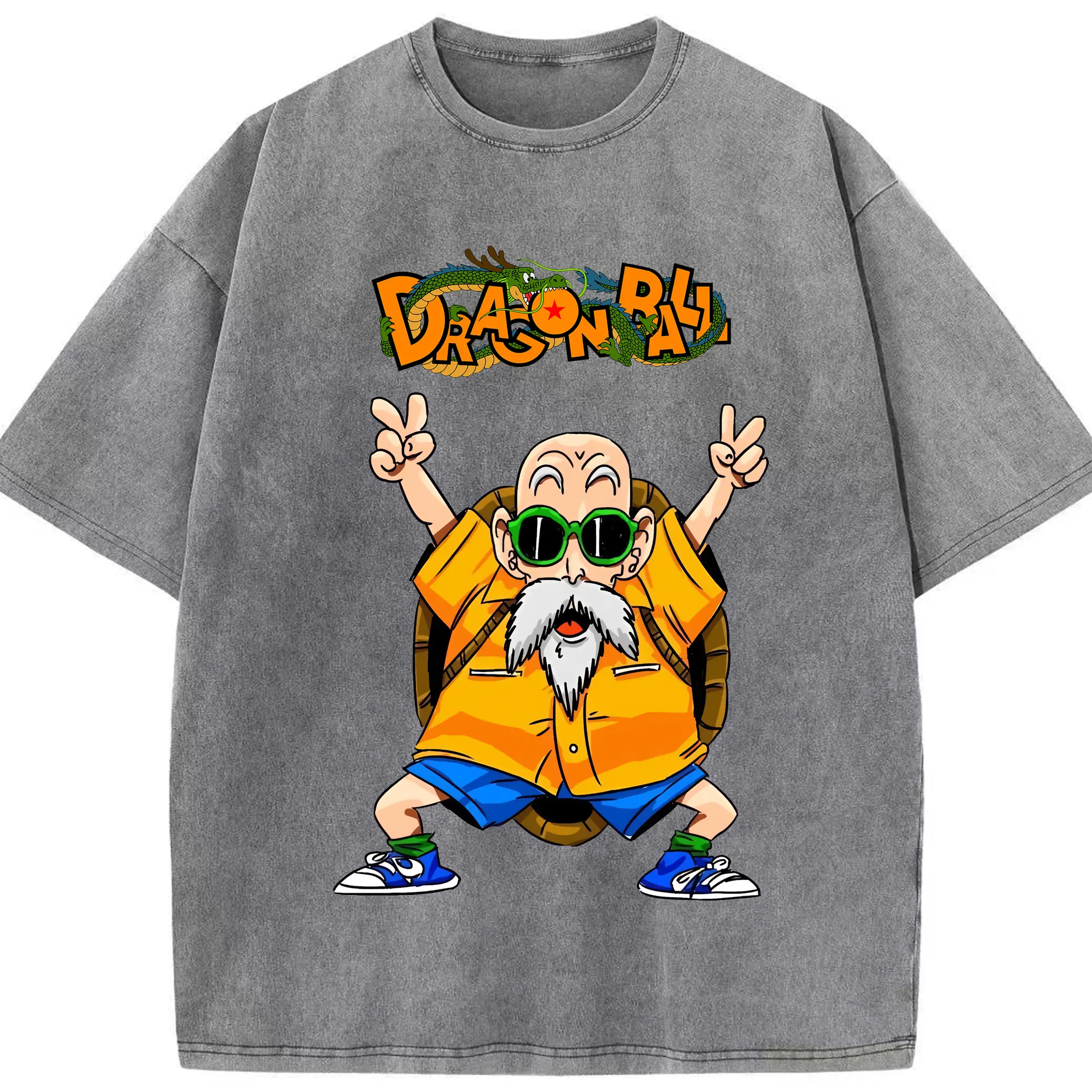 ドラゴンボール グッズ 亀仙人 - 綿100% ヴィンテージ風 半袖Tシャツ ・ 背面プリント ・ 柔らか肌触り ・ 通気性 快適 ・ スポーツ カジュアル 外出用