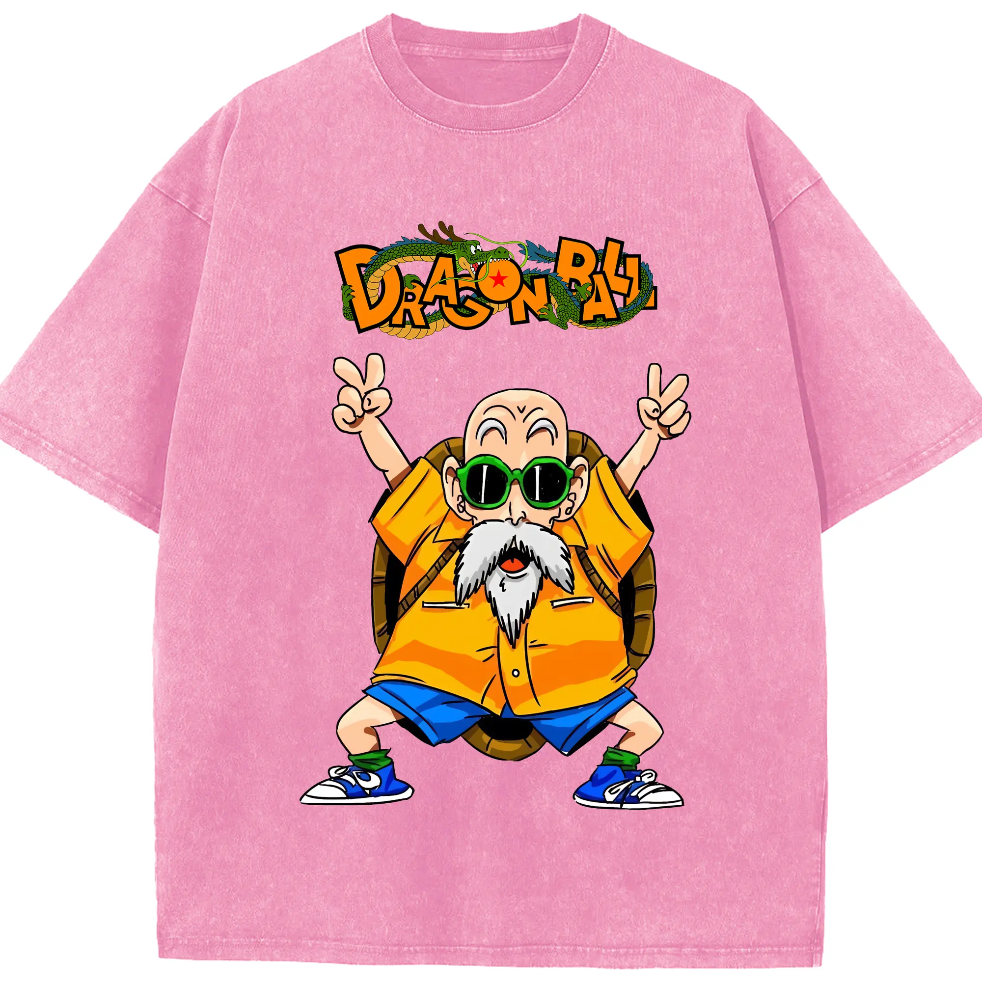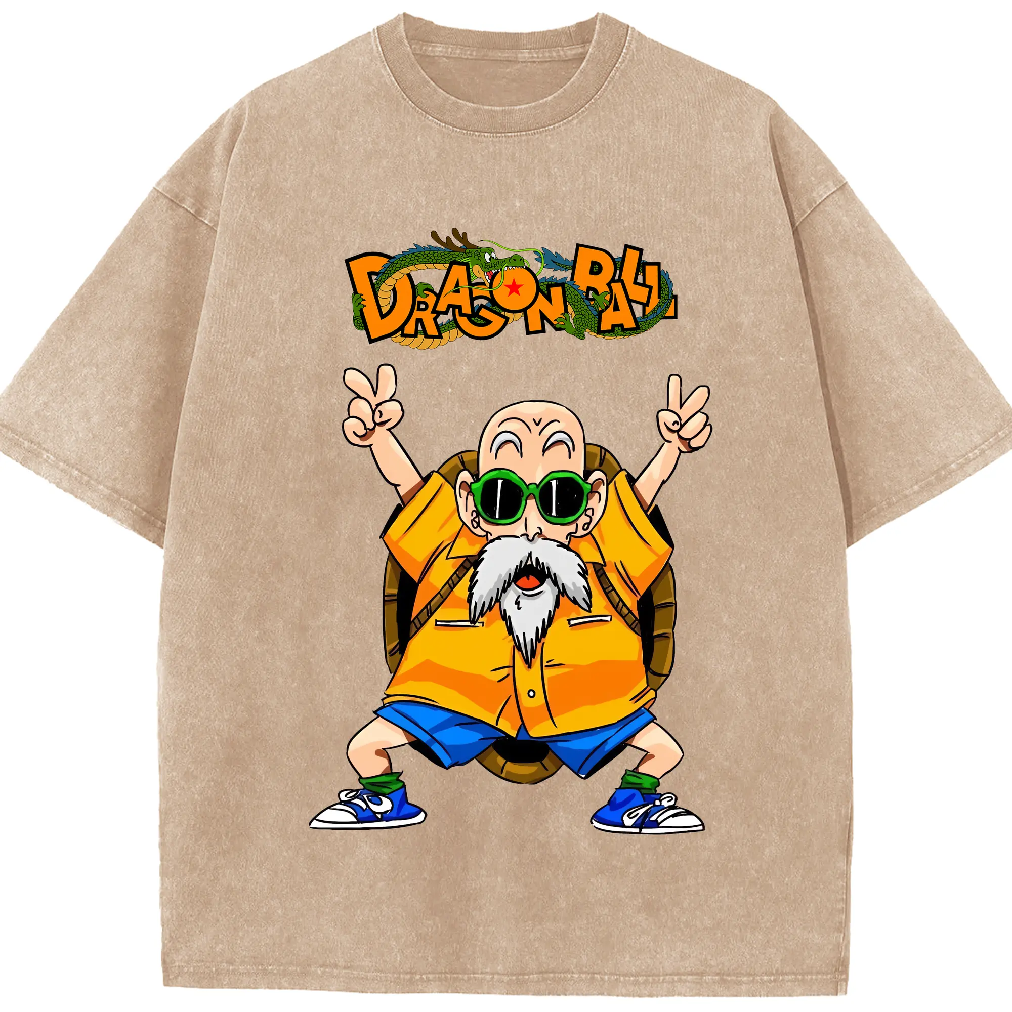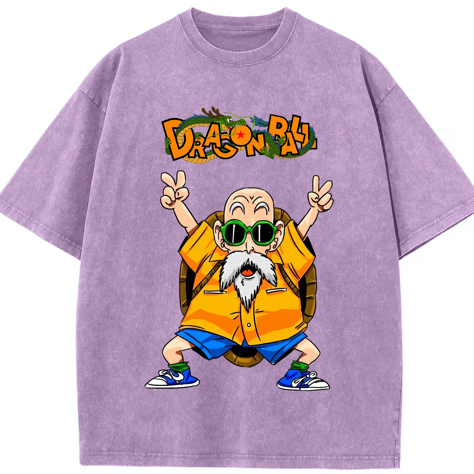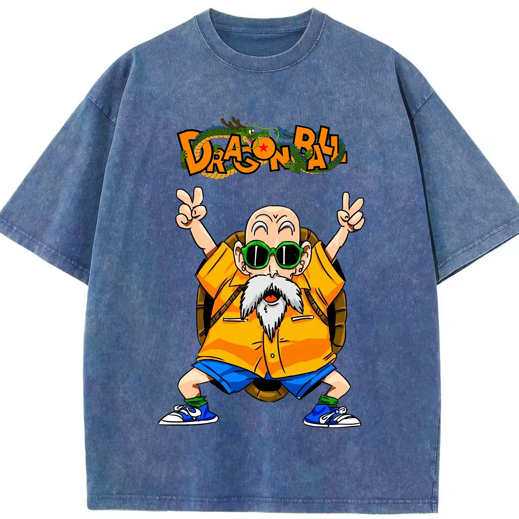 ドラゴンボール グッズ 亀仙人 - 綿100% ヴィンテージ風 半袖Tシャツ ・ 背面プリント ・ 柔らか肌触り ・ 通気性 快適 ・ スポーツ カジュアル 外出用