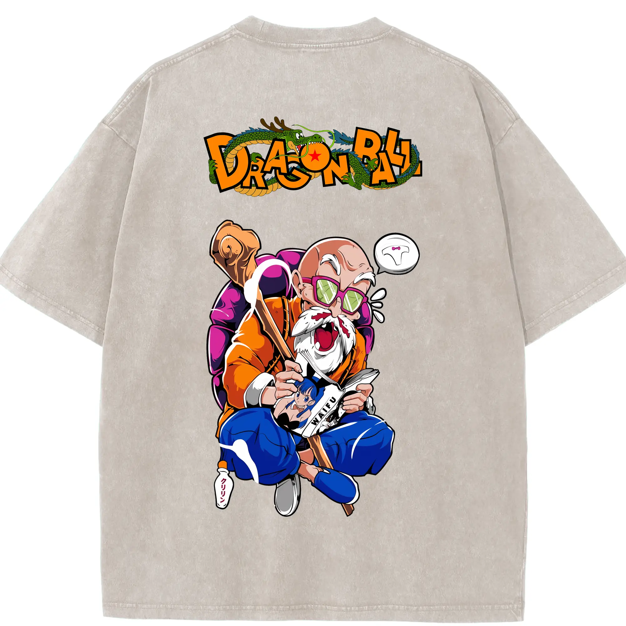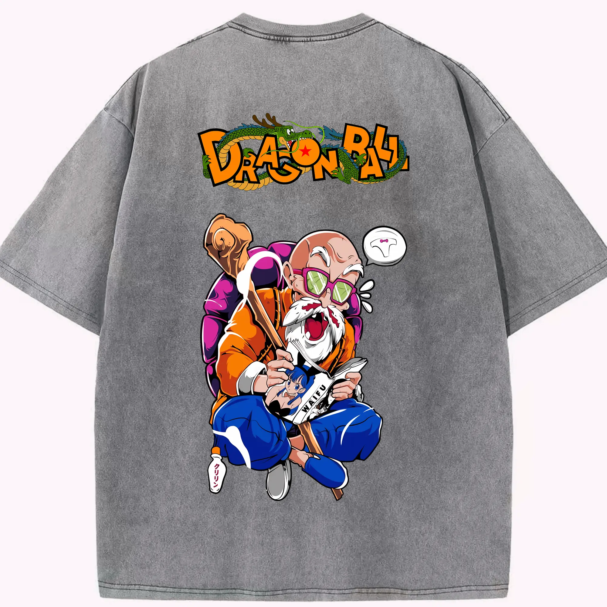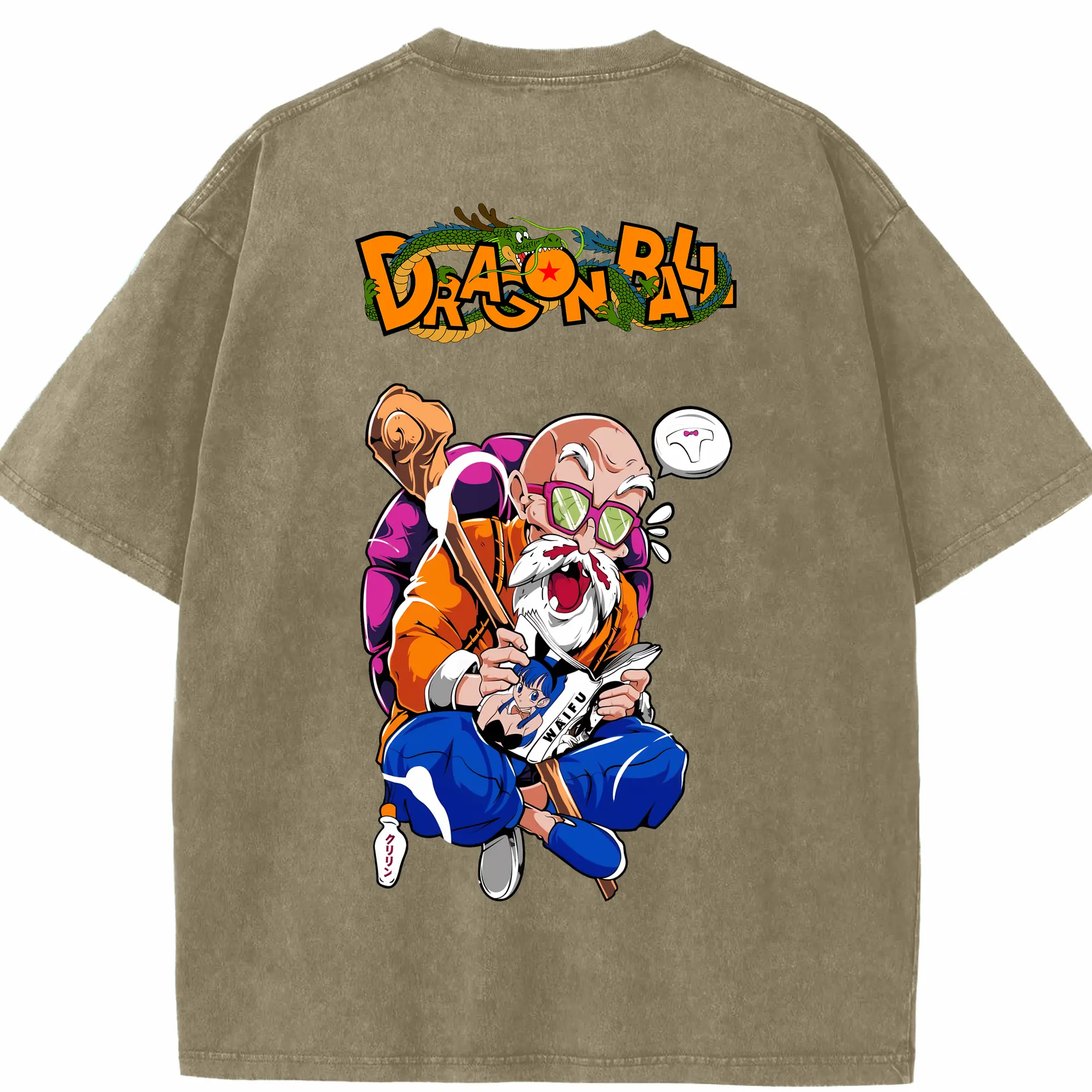 ドラゴンボール グッズ 亀仙人 - 綿100% ヴィンテージ風 半袖Tシャツ ・ フロントプリント ・ 柔らか肌触り ・ 通気性 快適 ・ スポーツ カジュアル 外出用