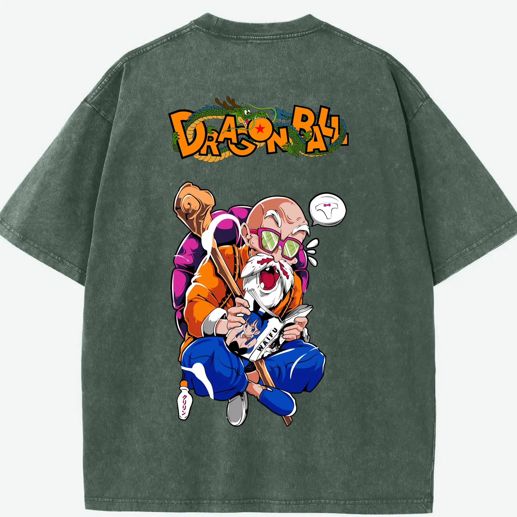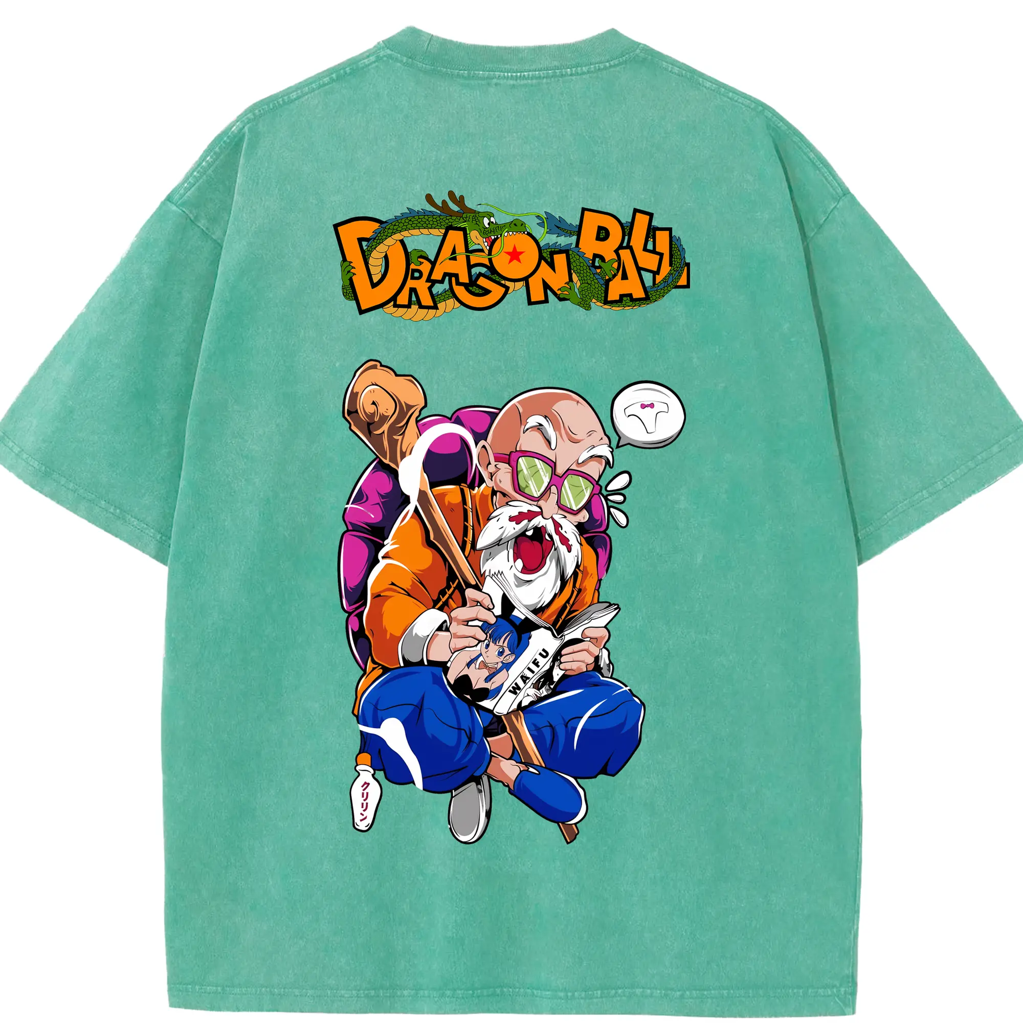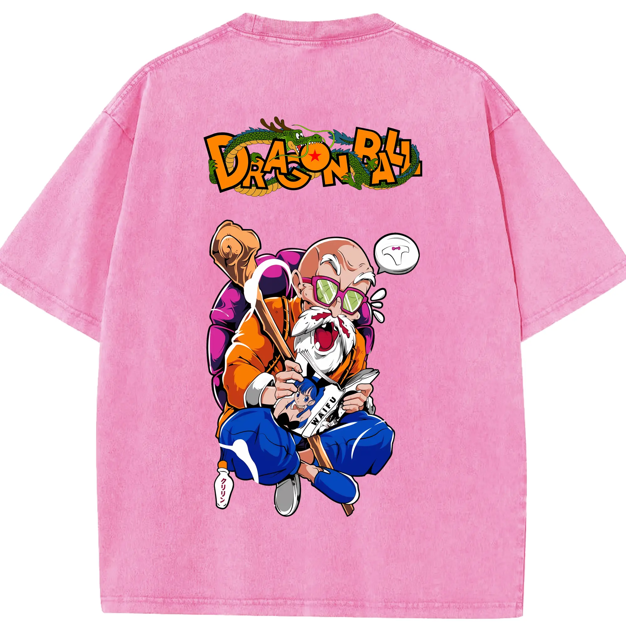 ドラゴンボール グッズ 亀仙人 - 綿100% ヴィンテージ風 半袖Tシャツ ・ フロントプリント ・ 柔らか肌触り ・ 通気性 快適 ・ スポーツ カジュアル 外出用