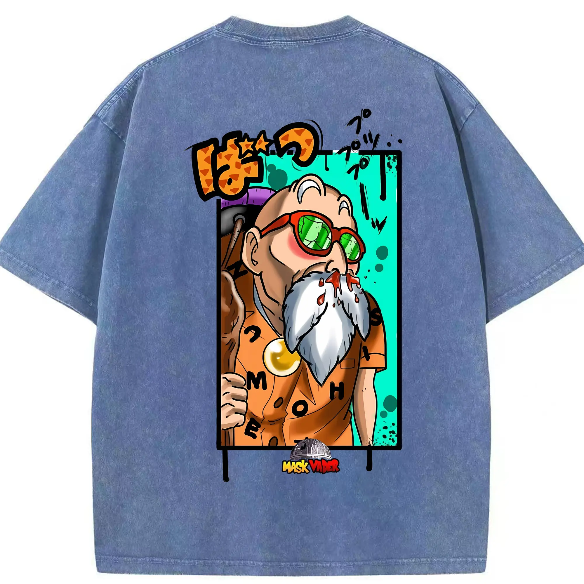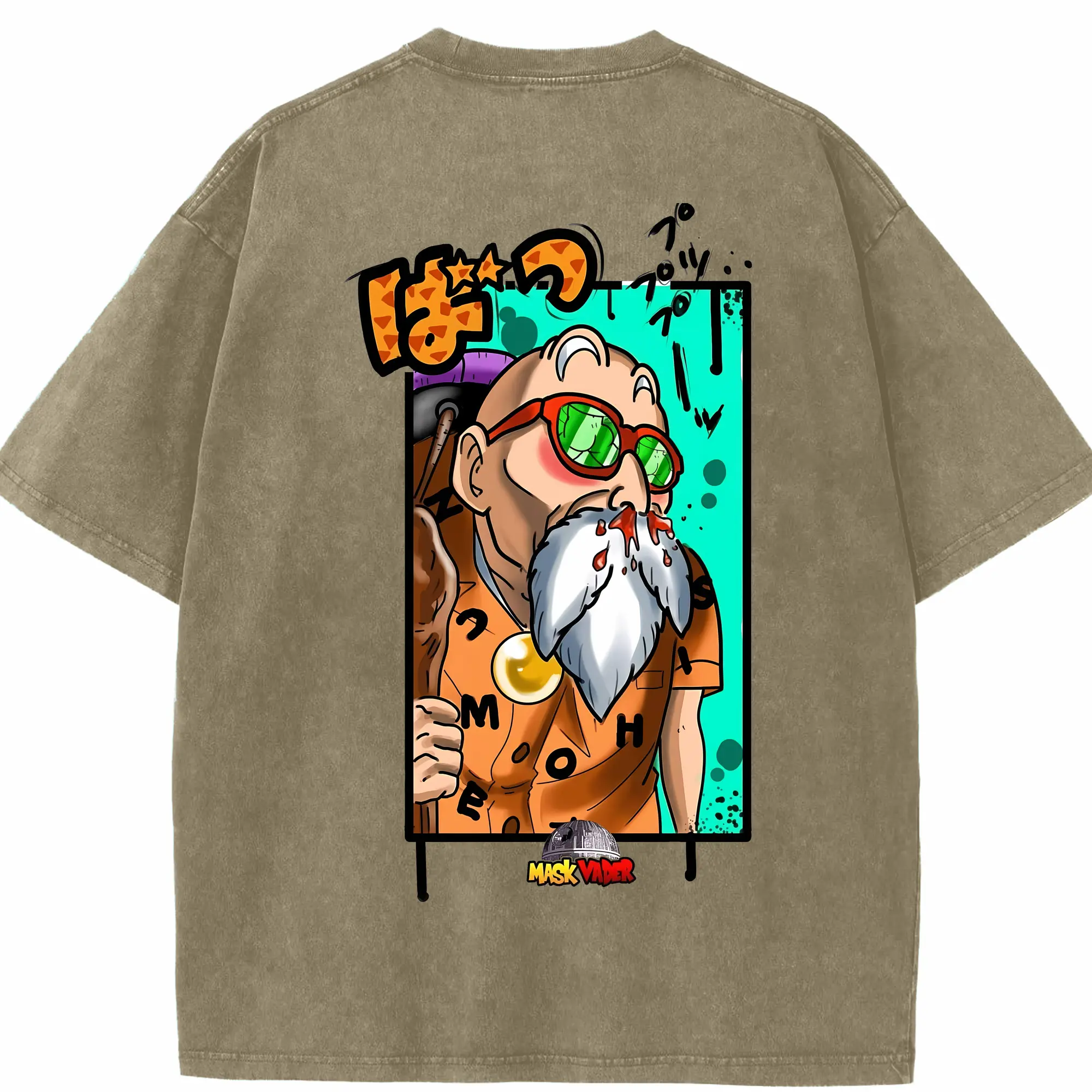 ドラゴンボール グッズ 亀仙人 - 綿100% ヴィンテージ風 半袖Tシャツ ・ フロントプリント ・ 柔らか肌触り ・ 通気性 快適 ・ スポーツ カジュアル 外出用