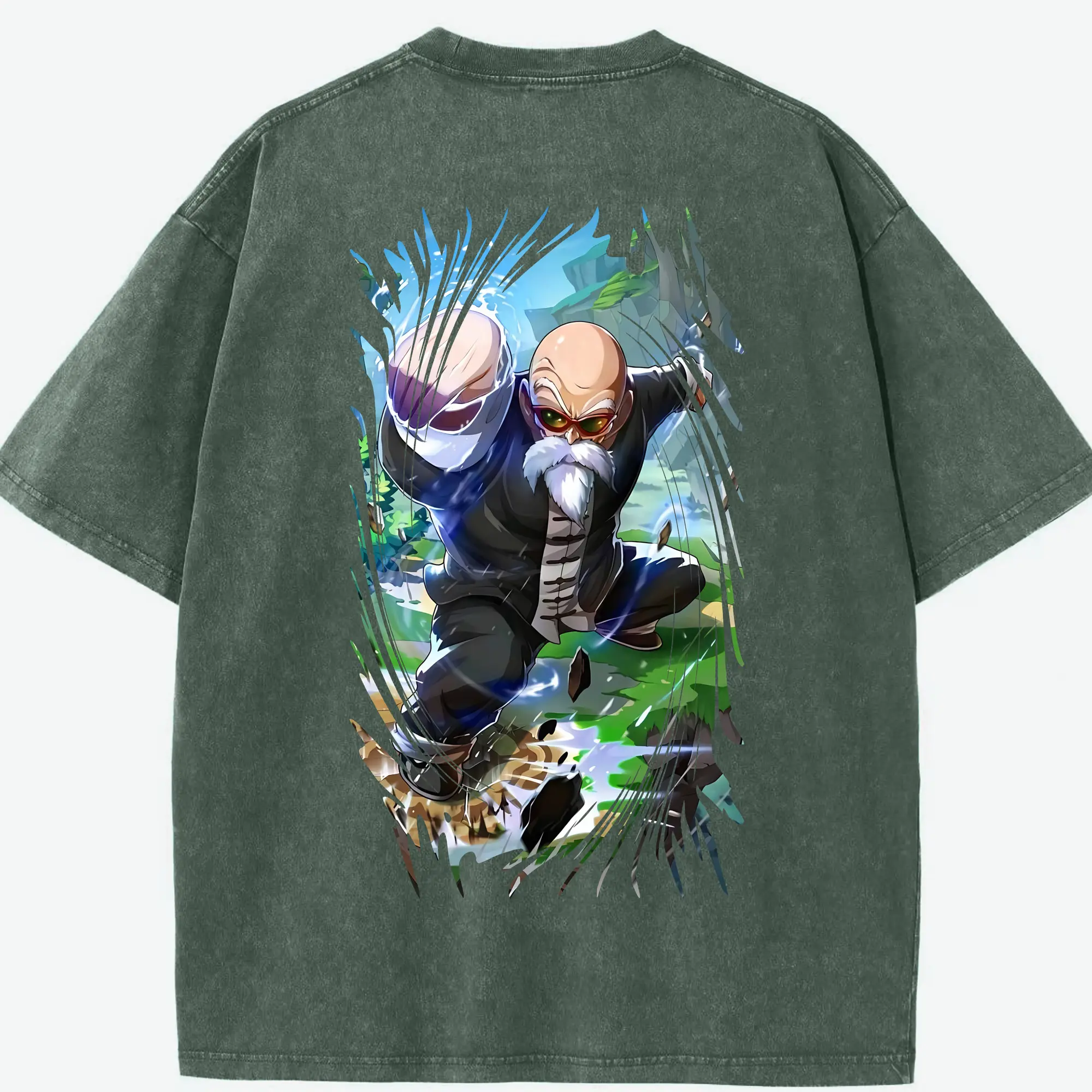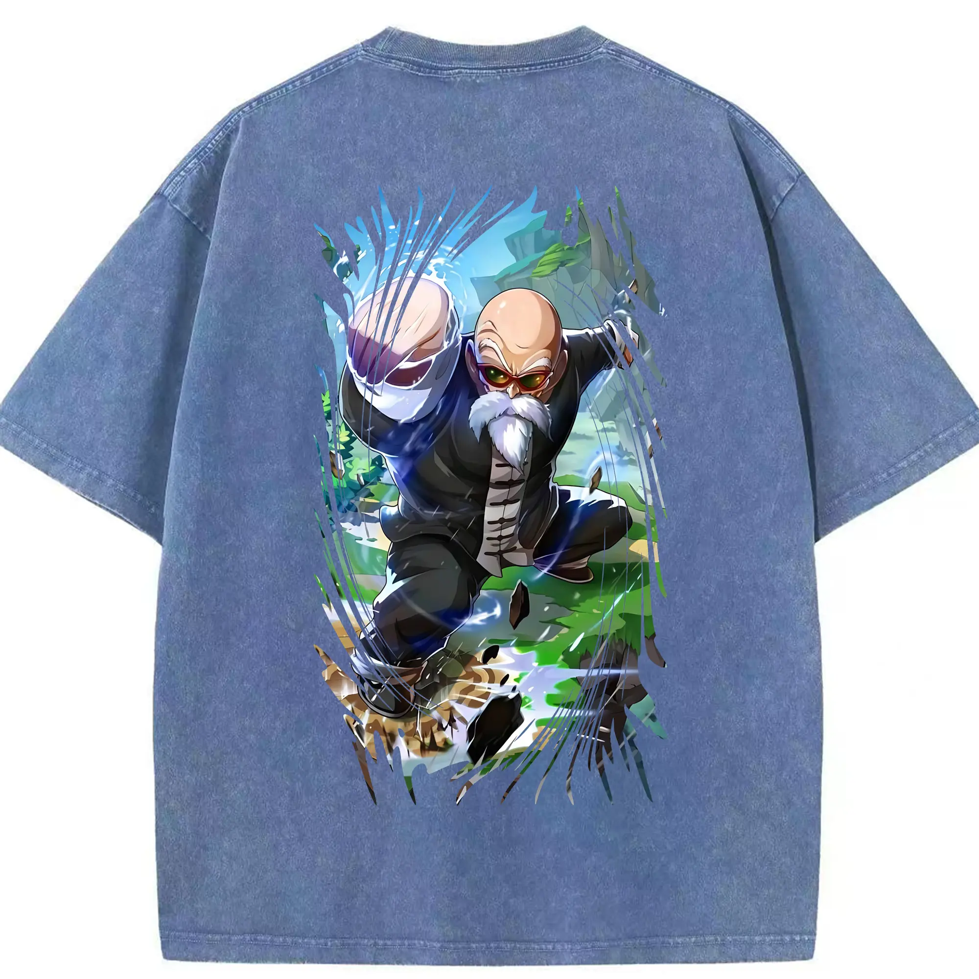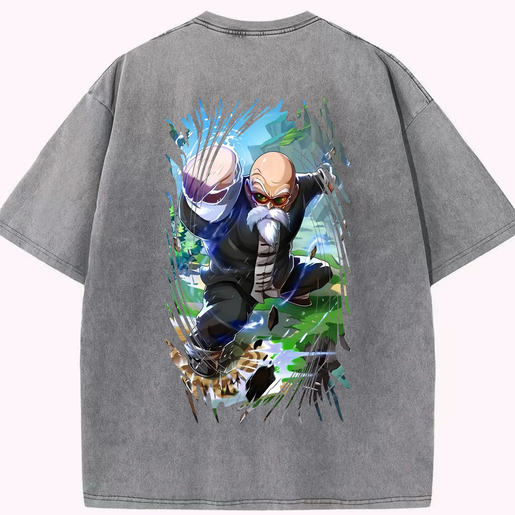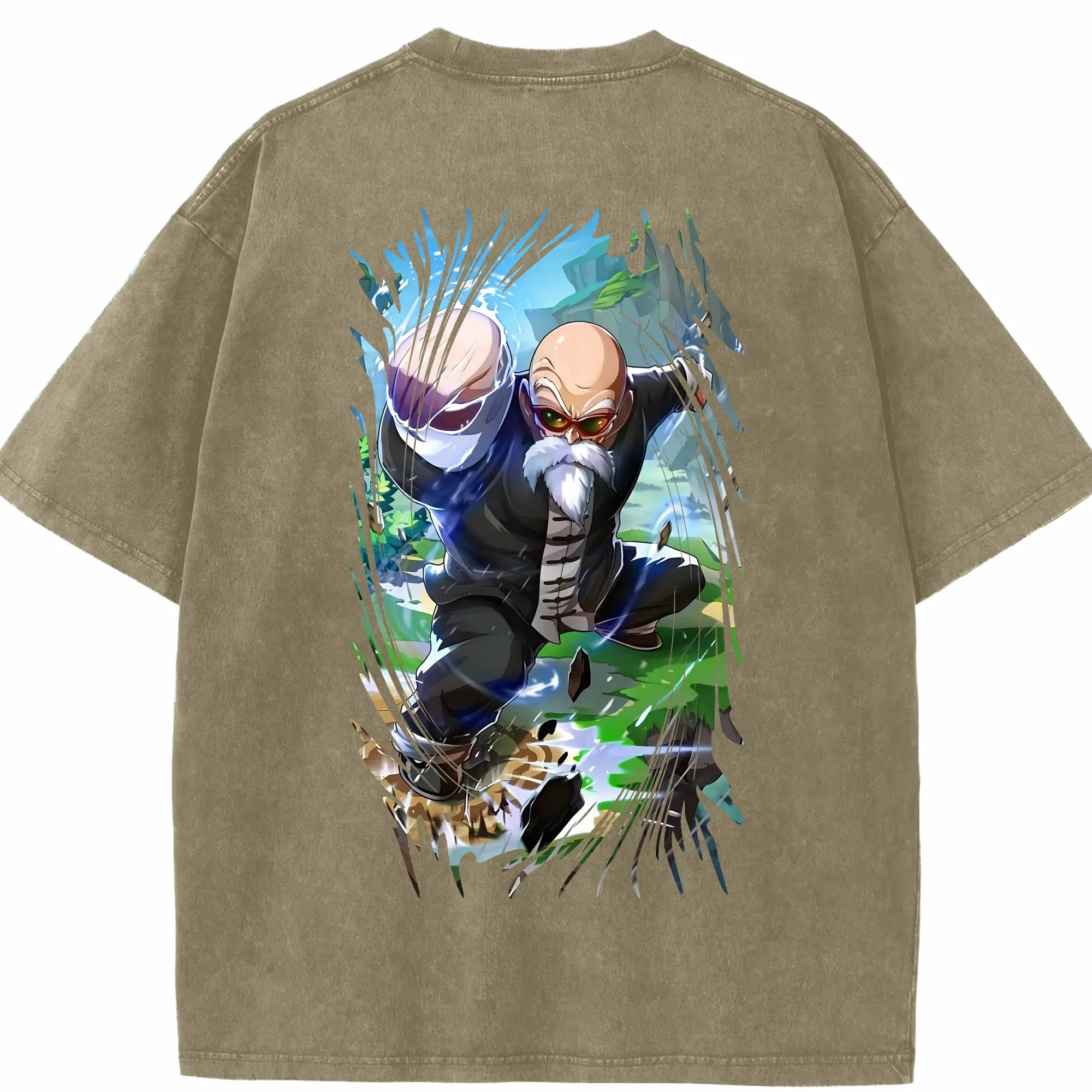 ドラゴンボール グッズ 亀仙人 - 綿100% ヴィンテージ風 半袖Tシャツ ・ フロントプリント ・ 柔らか肌触り ・ 通気性 快適 ・ スポーツ カジュアル 外出用