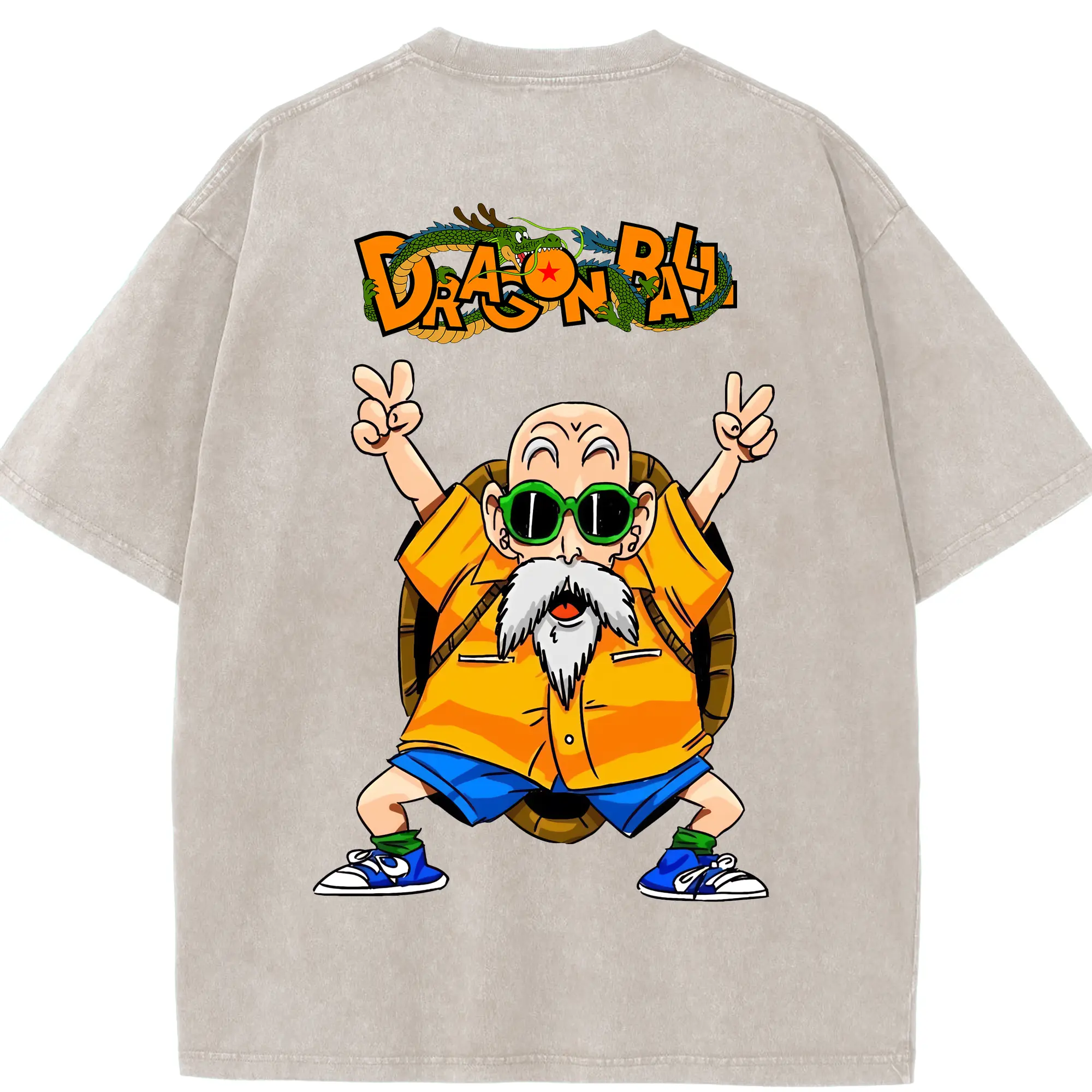ドラゴンボール グッズ 亀仙人 - 綿100% ヴィンテージ風 半袖Tシャツ ・ フロントプリント ・ 柔らか肌触り ・ 通気性 快適 ・ スポーツ カジュアル 外出用