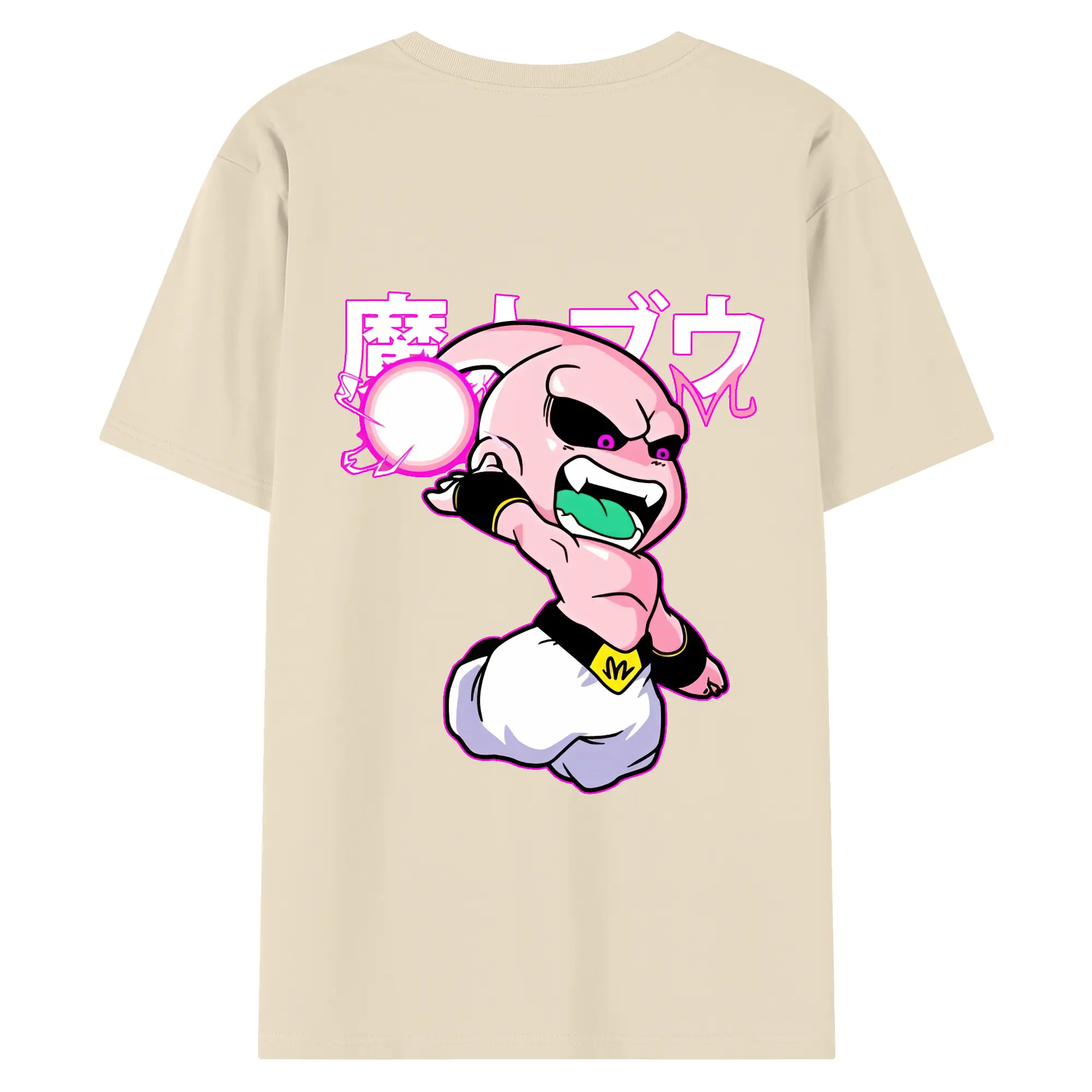 ドラゴンボール グッズ まじん ブウ - 綿100% ヴィンテージ風 半袖Tシャツ ・ 背面プリント ・ 柔らか肌触り ・ 通気性 快適 ・ スポーツ カジュアル 外出用