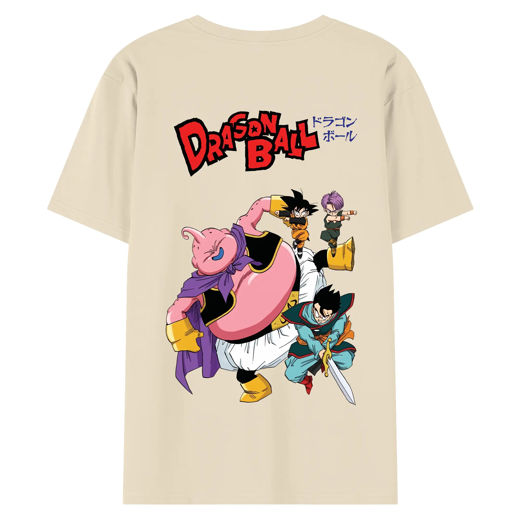 ドラゴンボール グッズ まじん ブウ - 綿100% ヴィンテージ風 半袖Tシャツ ・ 背面プリント ・ 柔らか肌触り ・ 通気性 快適 ・ スポーツ カジュアル 外出用