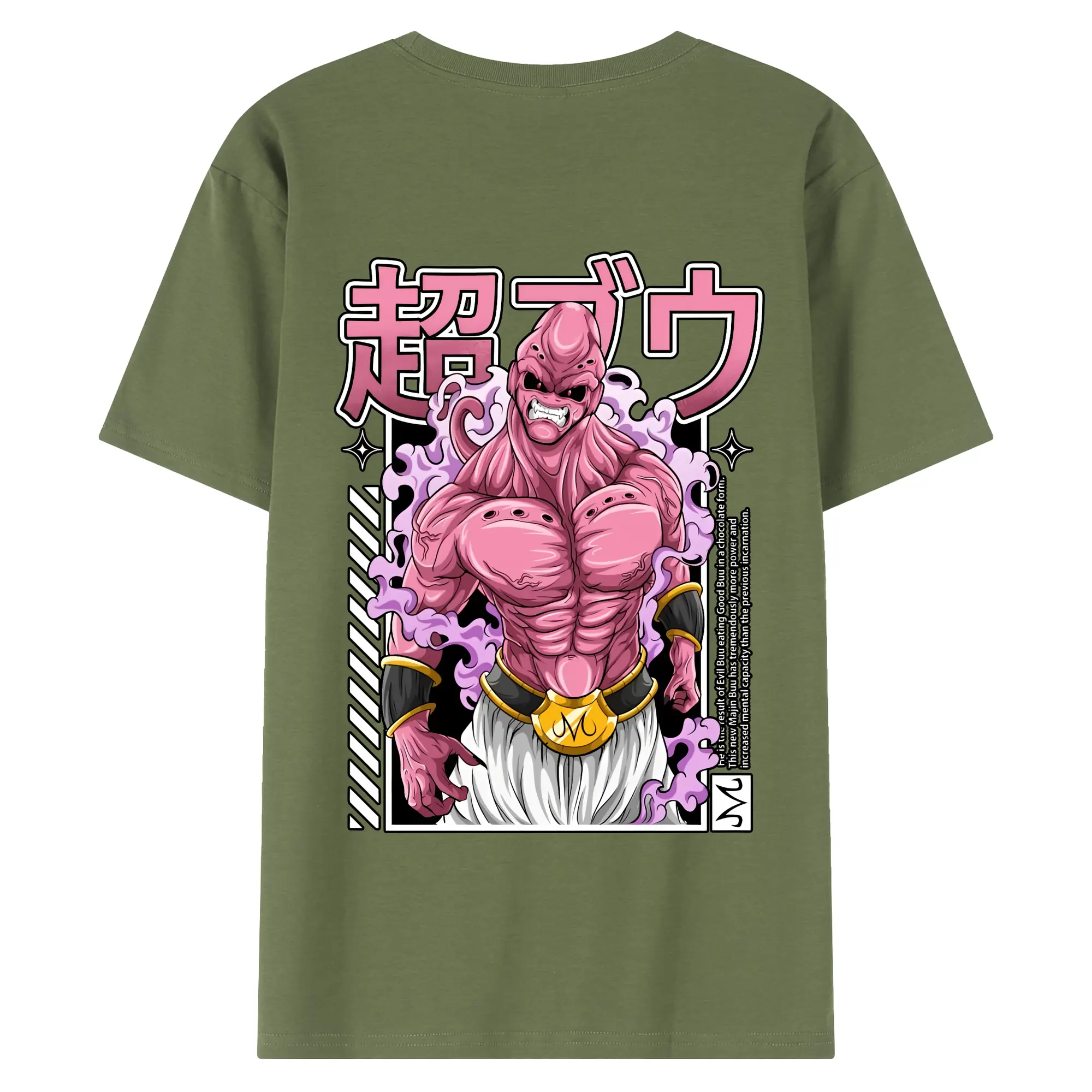 ドラゴンボール グッズ まじん ブウ - 綿100% ヴィンテージ風 半袖Tシャツ ・ 背面プリント ・ 柔らか肌触り ・ 通気性 快適 ・ スポーツ カジュアル 外出用