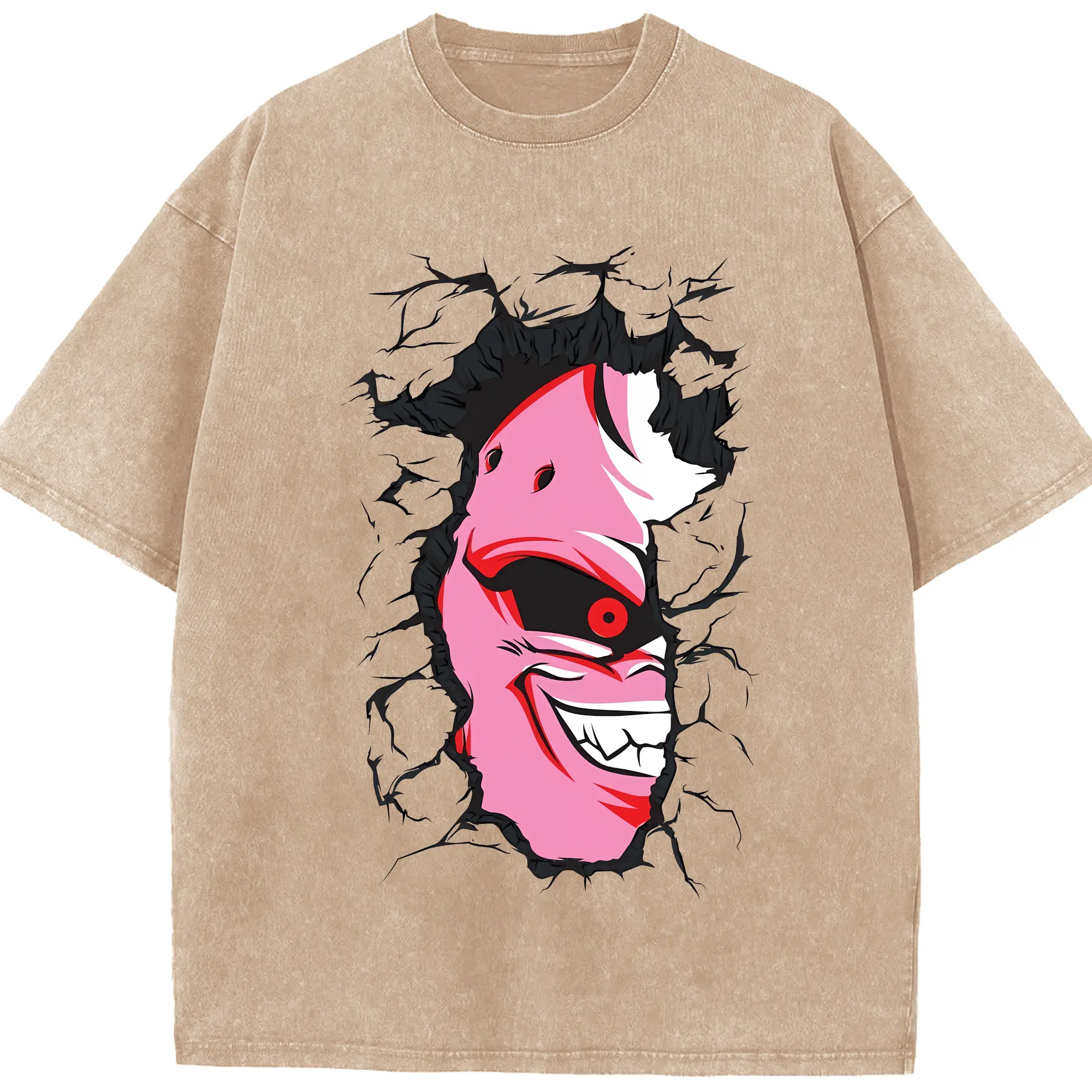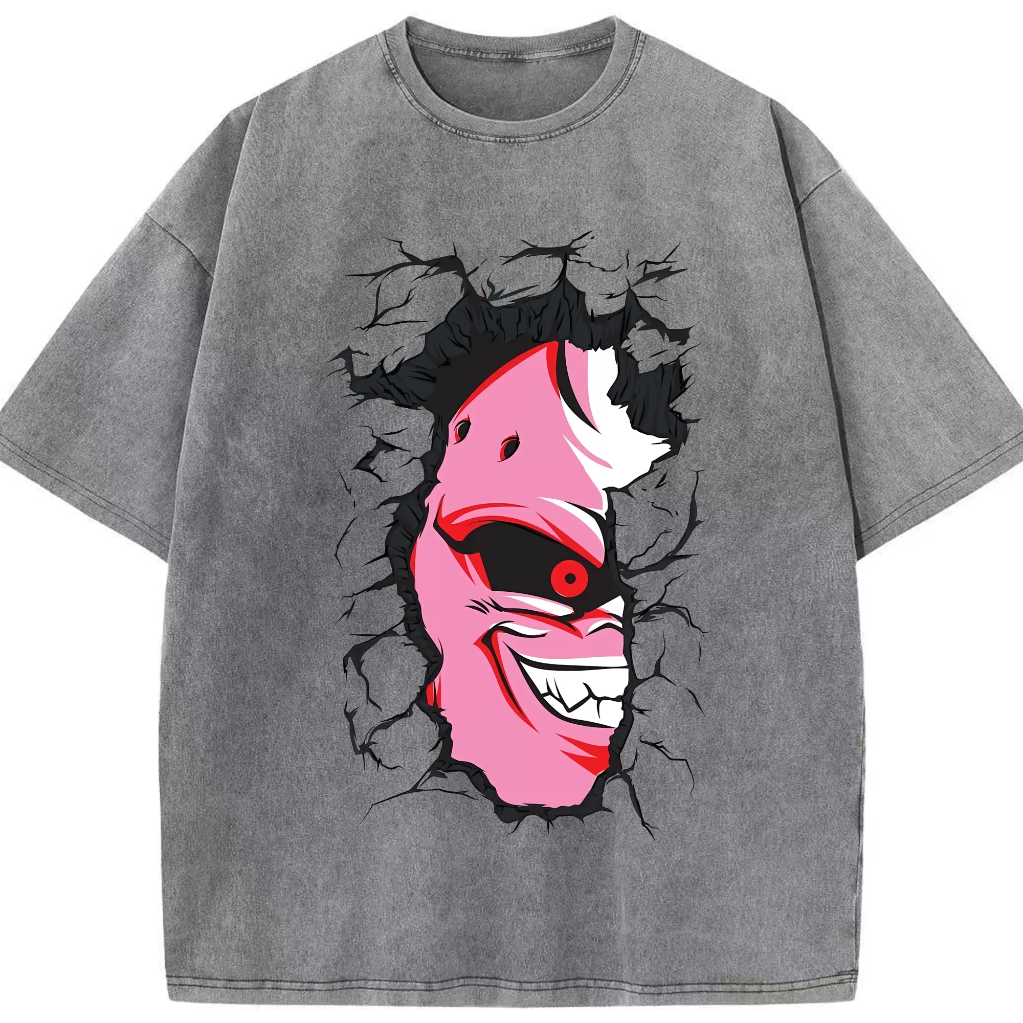 ドラゴンボール グッズ まじん ブウ - 綿100% ヴィンテージ風 半袖Tシャツ ・ 背面プリント ・ 柔らか肌触り ・ 通気性 快適 ・ スポーツ カジュアル 外出用