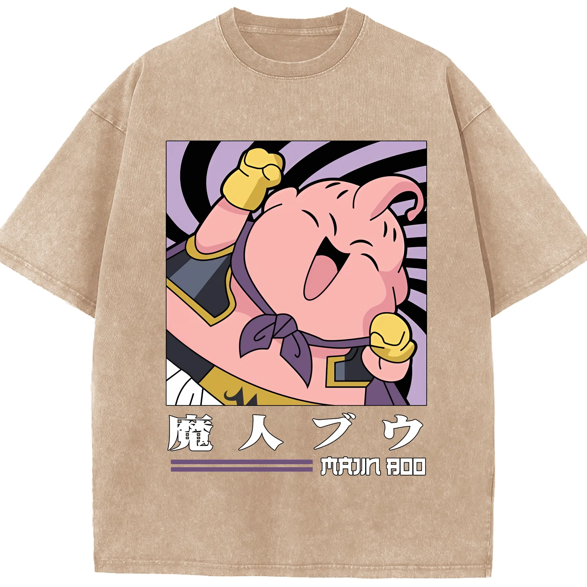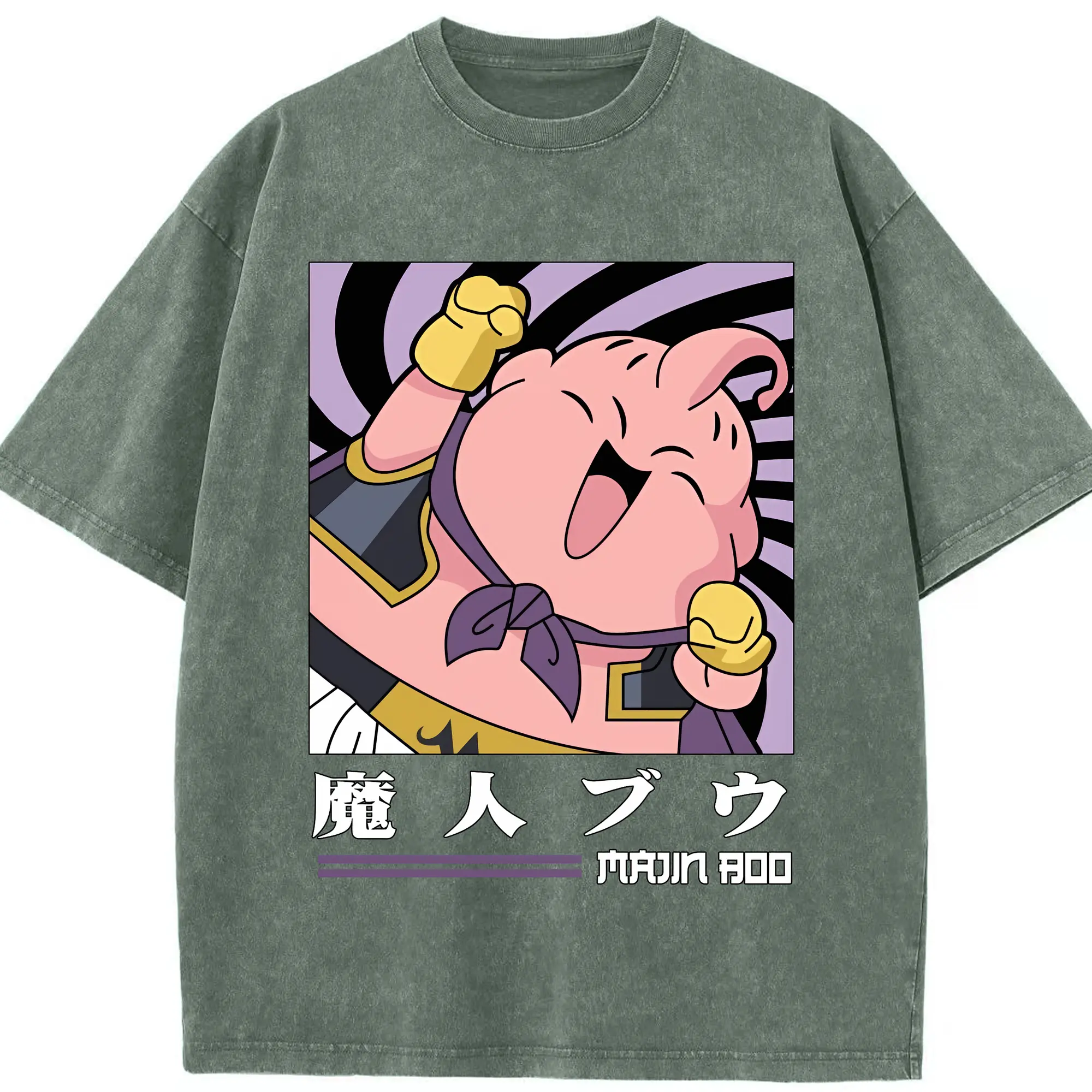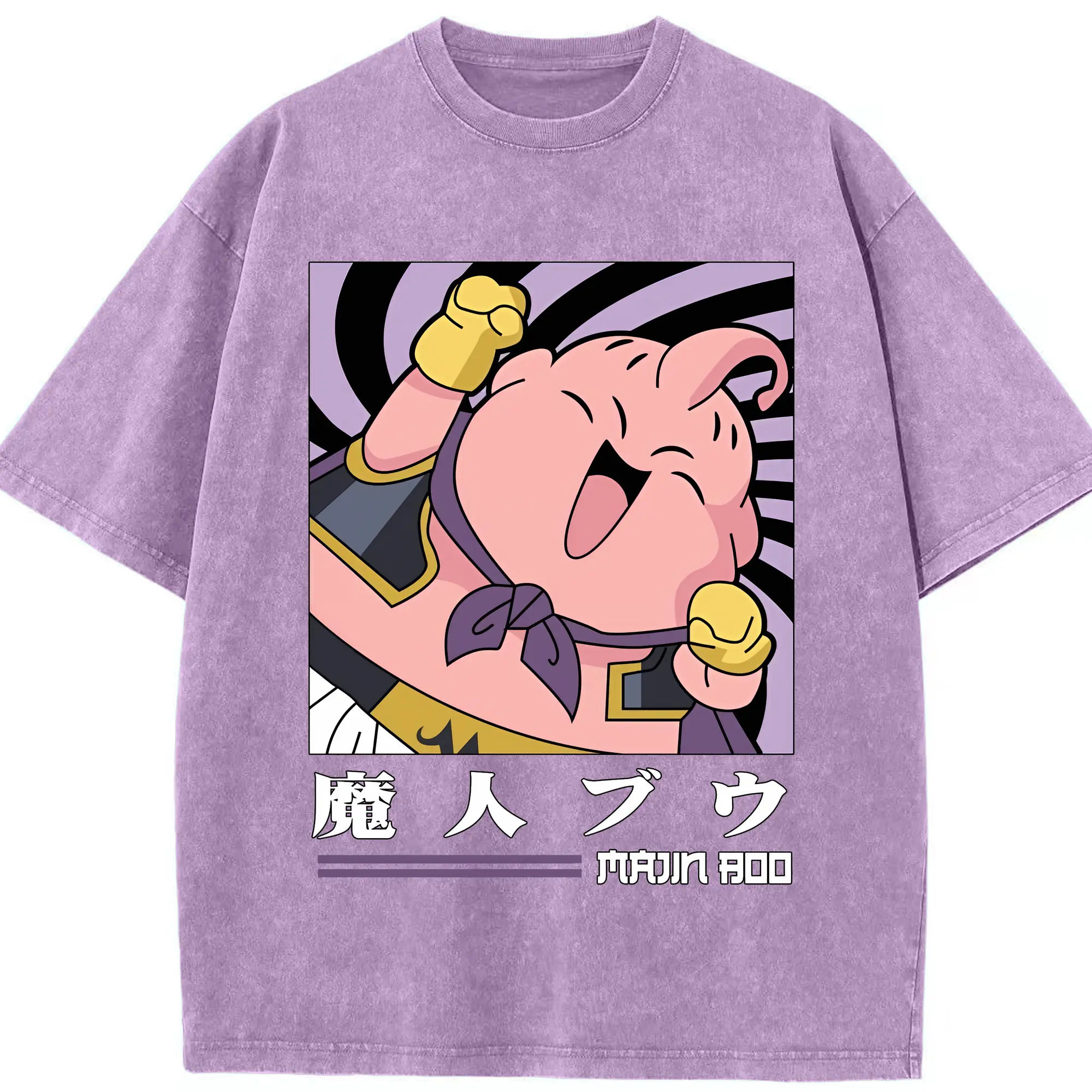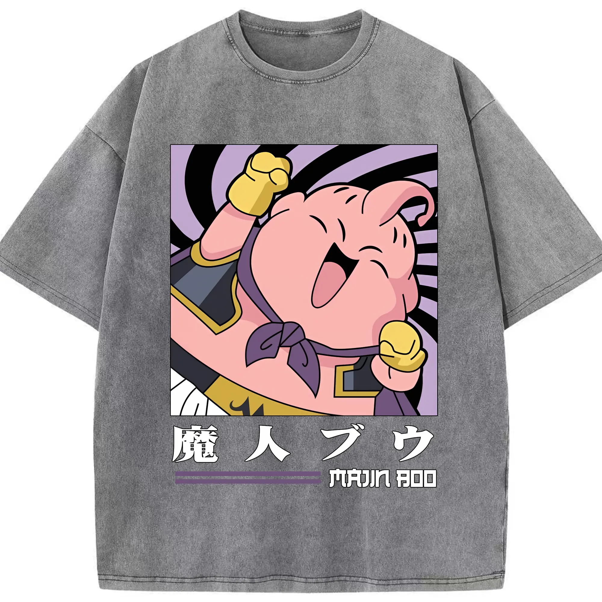 ドラゴンボール グッズ まじん ブウ - 綿100% ヴィンテージ風 半袖Tシャツ ・ 背面プリント ・ 柔らか肌触り ・ 通気性 快適 ・ スポーツ カジュアル 外出用