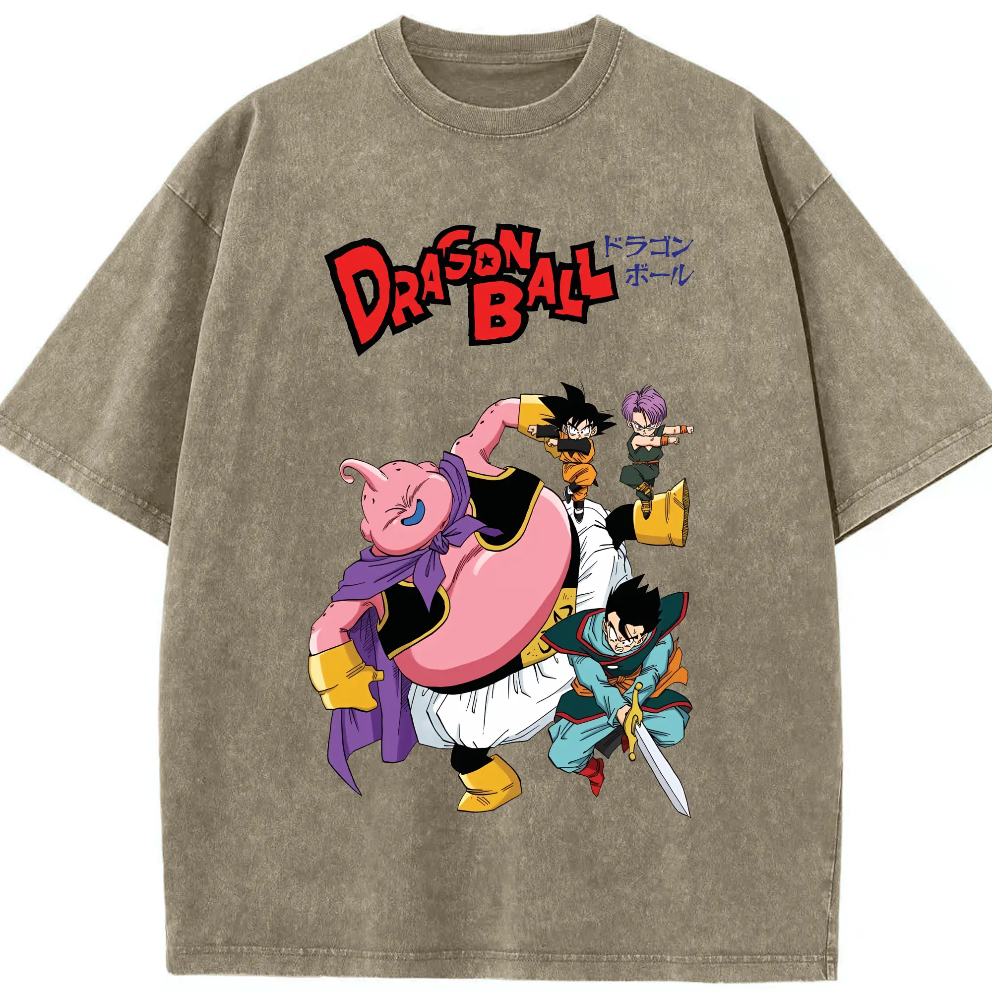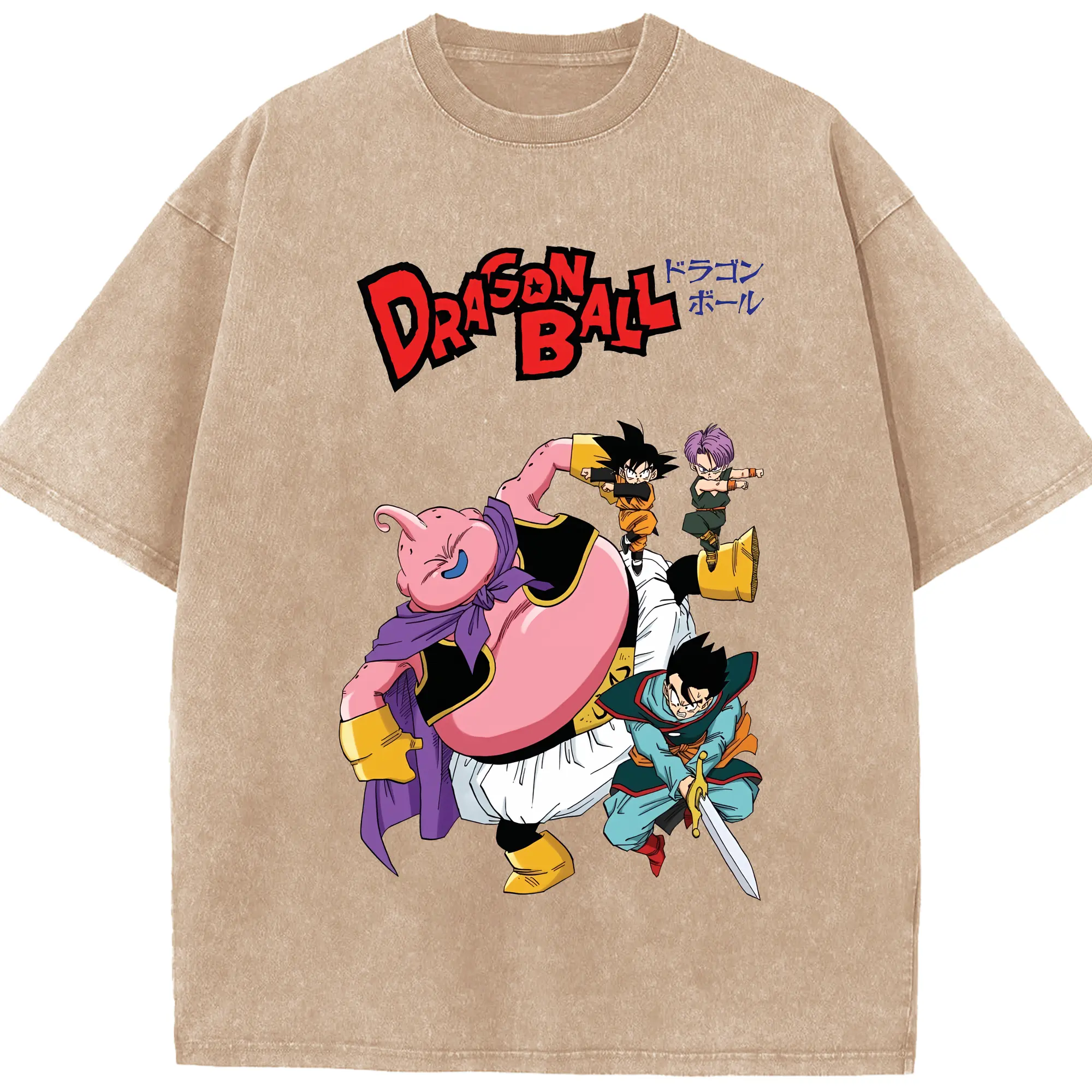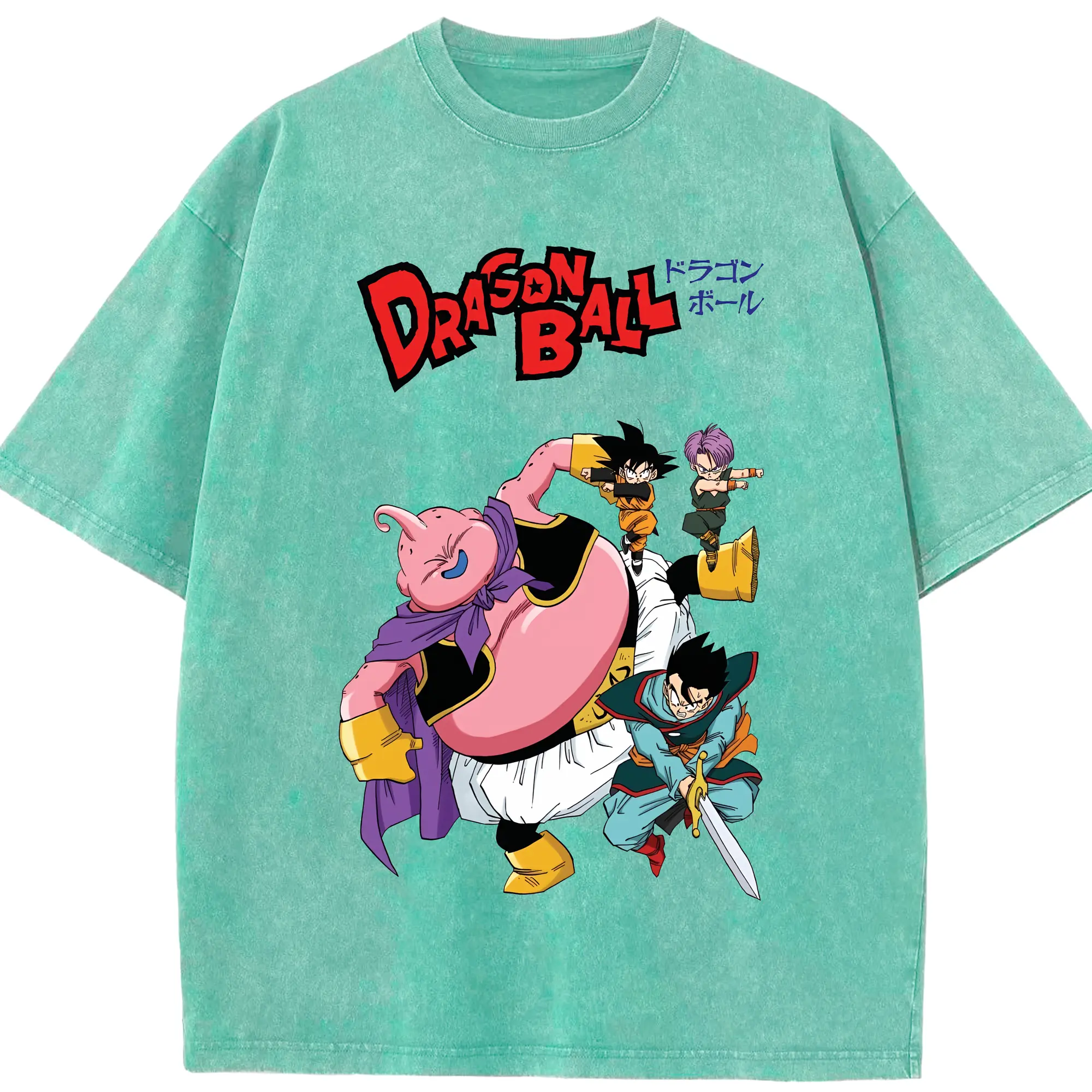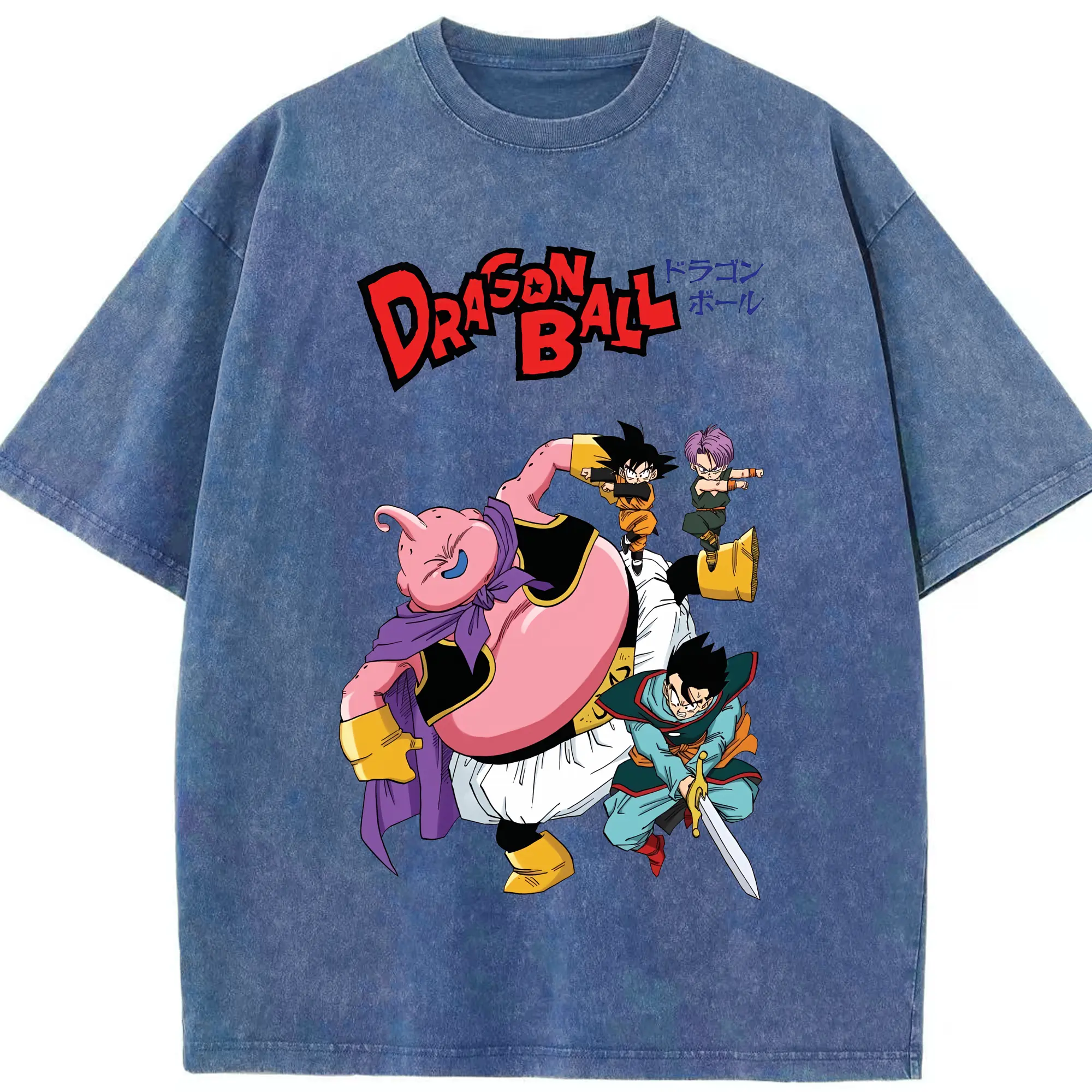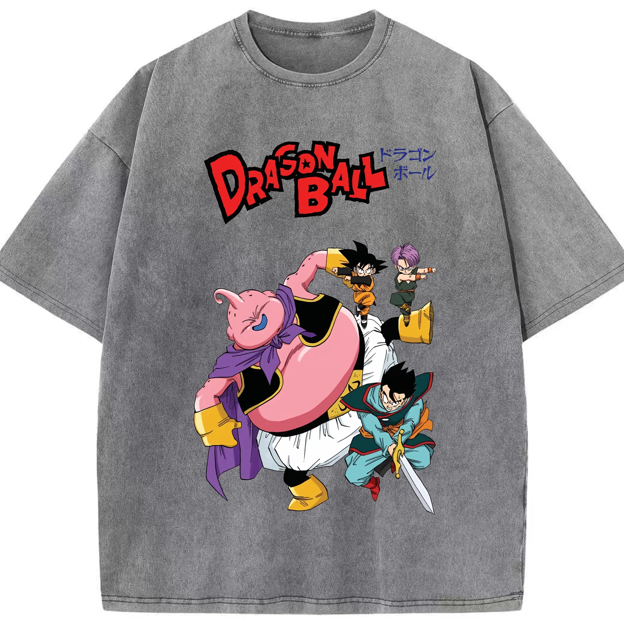 ドラゴンボール グッズ まじん ブウ - 綿100% ヴィンテージ風 半袖Tシャツ ・ 背面プリント ・ 柔らか肌触り ・ 通気性 快適 ・ スポーツ カジュアル 外出用