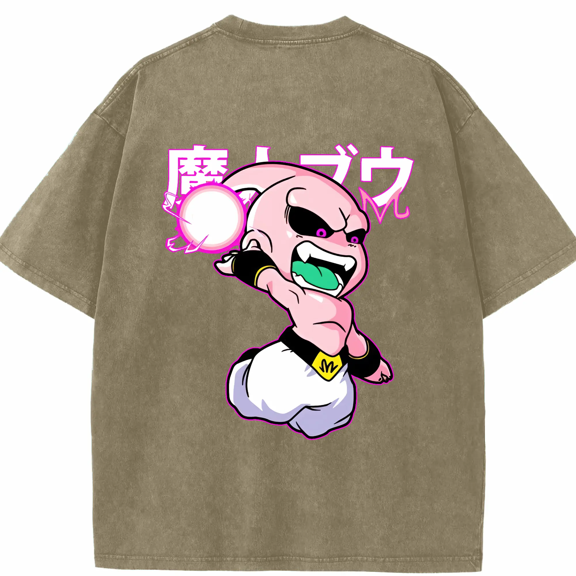 ドラゴンボール グッズ まじん ブウ - 綿100% ヴィンテージ風 半袖Tシャツ ・ フロントプリント ・ 柔らか肌触り ・ 通気性 快適 ・ スポーツ カジュアル 外出用