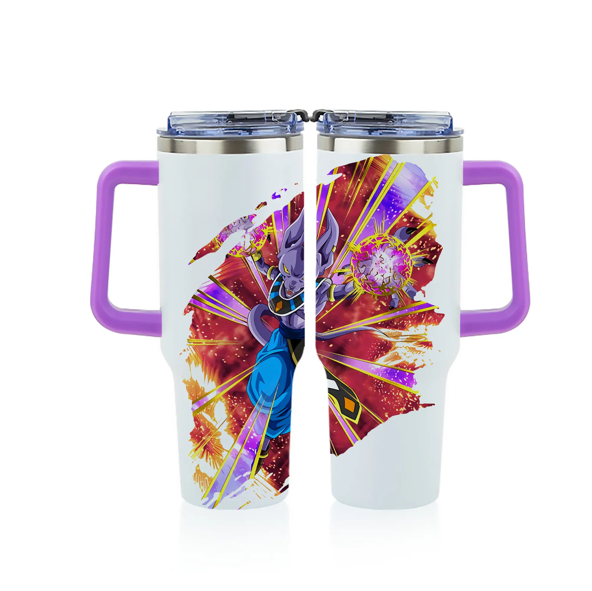 ドラゴンボール グッズ ビルス - 1200mL フルプリント車用タンブラー ・ 304ステンレス 内側 ・ 201ステンレス 外側 ・ 保温 保冷 ・ 通勤 ドライブ アウトドア用