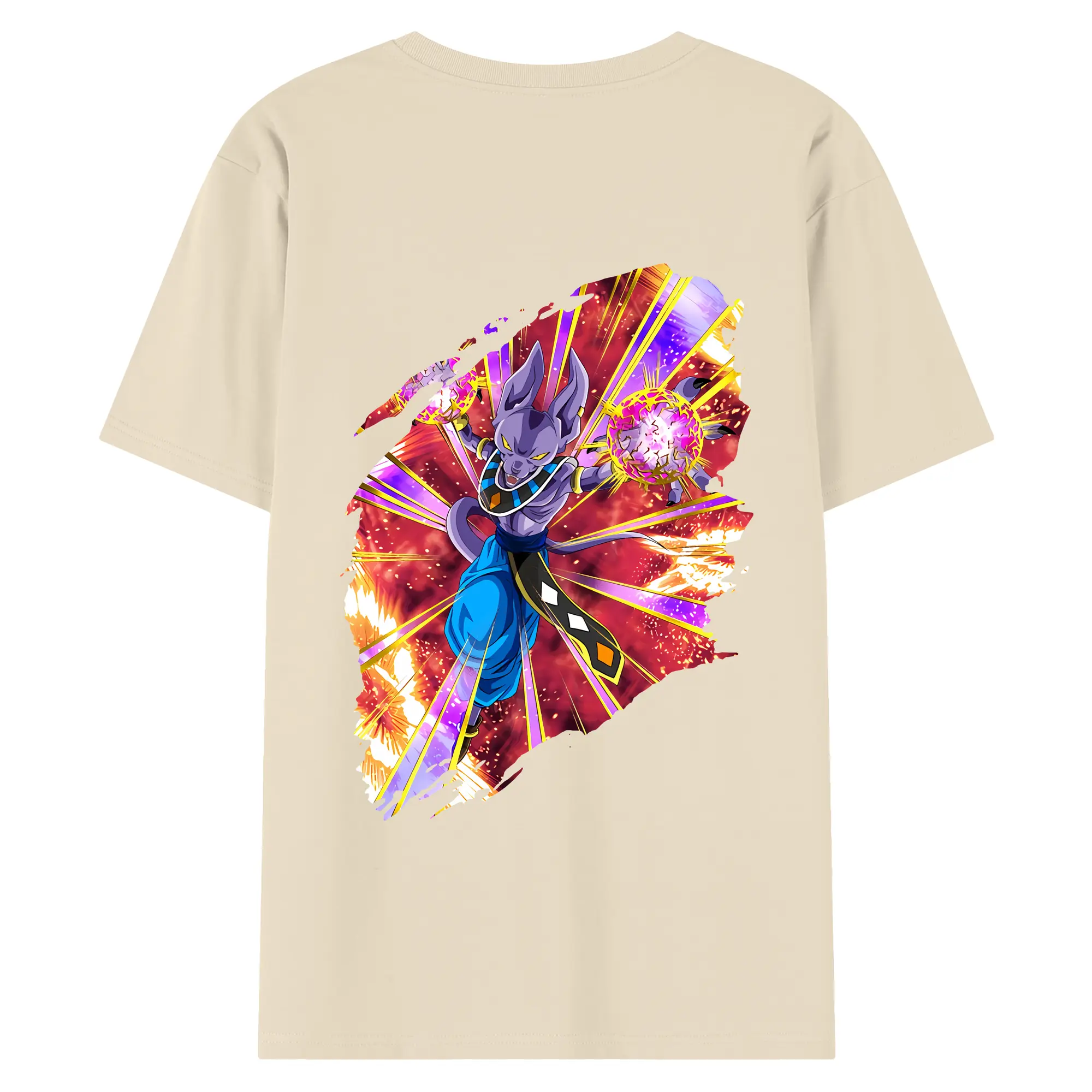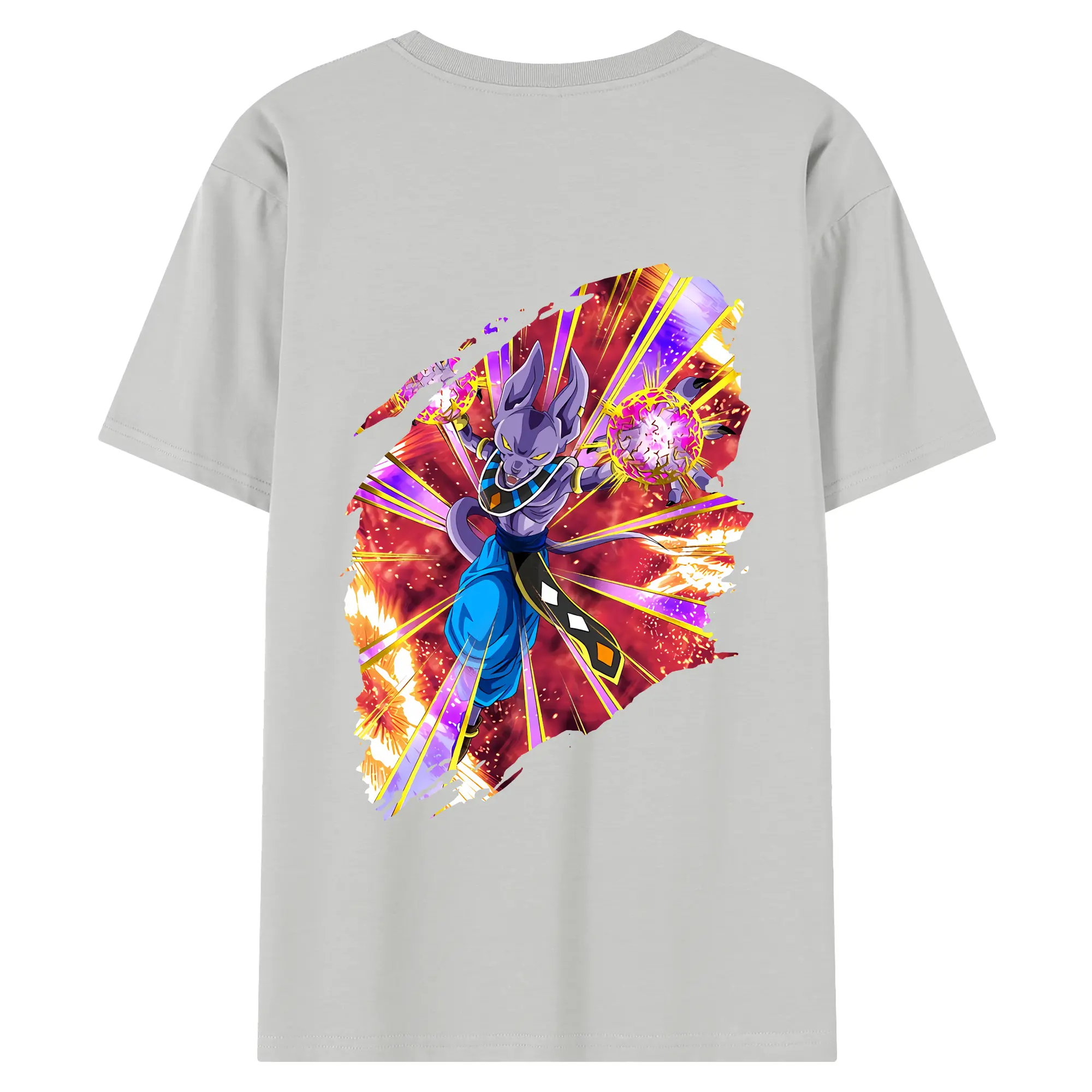 ドラゴンボール グッズ ビルス - 綿100% ヴィンテージ風 半袖Tシャツ ・ 背面プリント ・ 柔らか肌触り ・ 通気性 快適 ・ スポーツ カジュアル 外出用