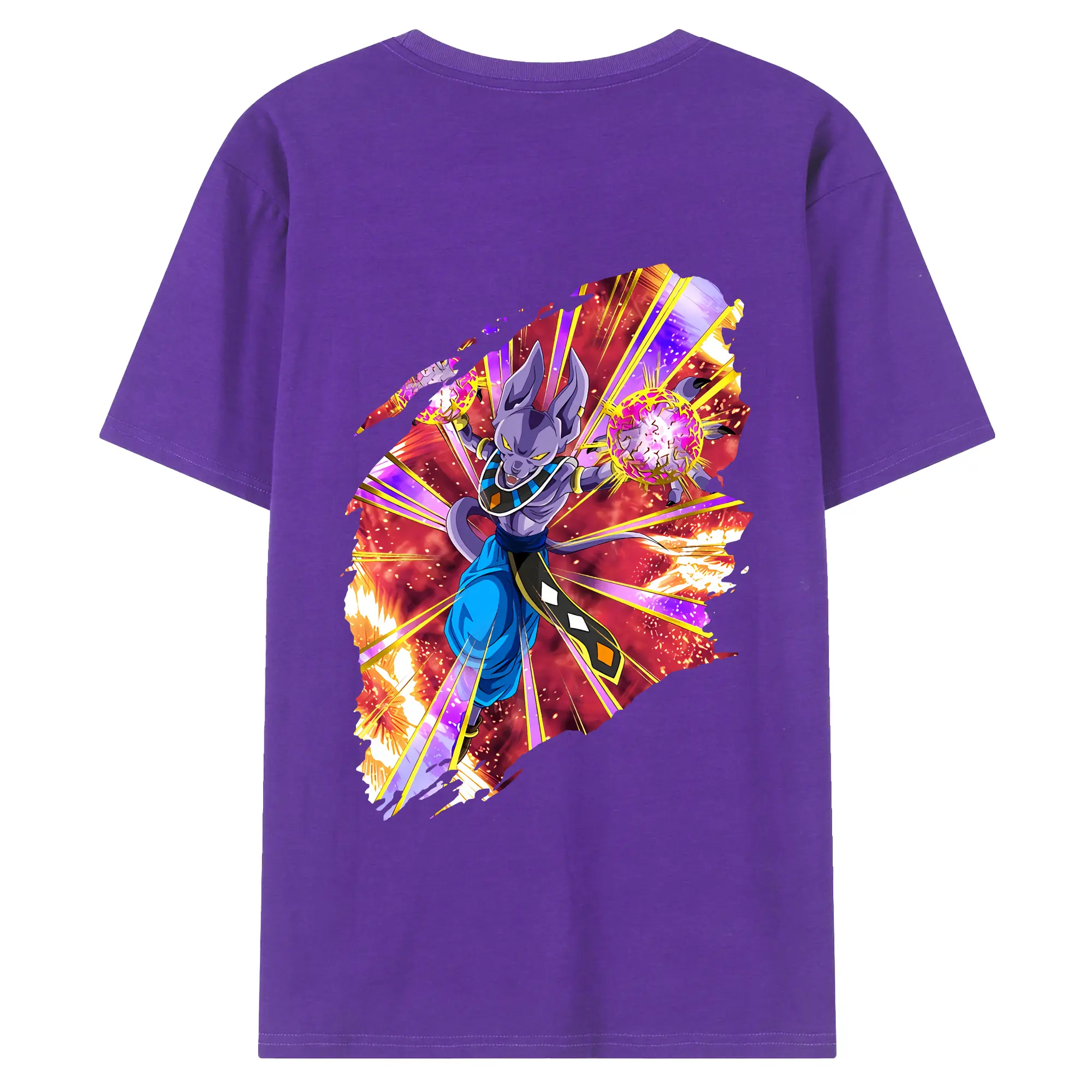 ドラゴンボール グッズ ビルス - 綿100% 半袖Tシャツ ・ フロントプリント ・ 快適 通気性 ・ 日常使い 散歩 スポーツ用