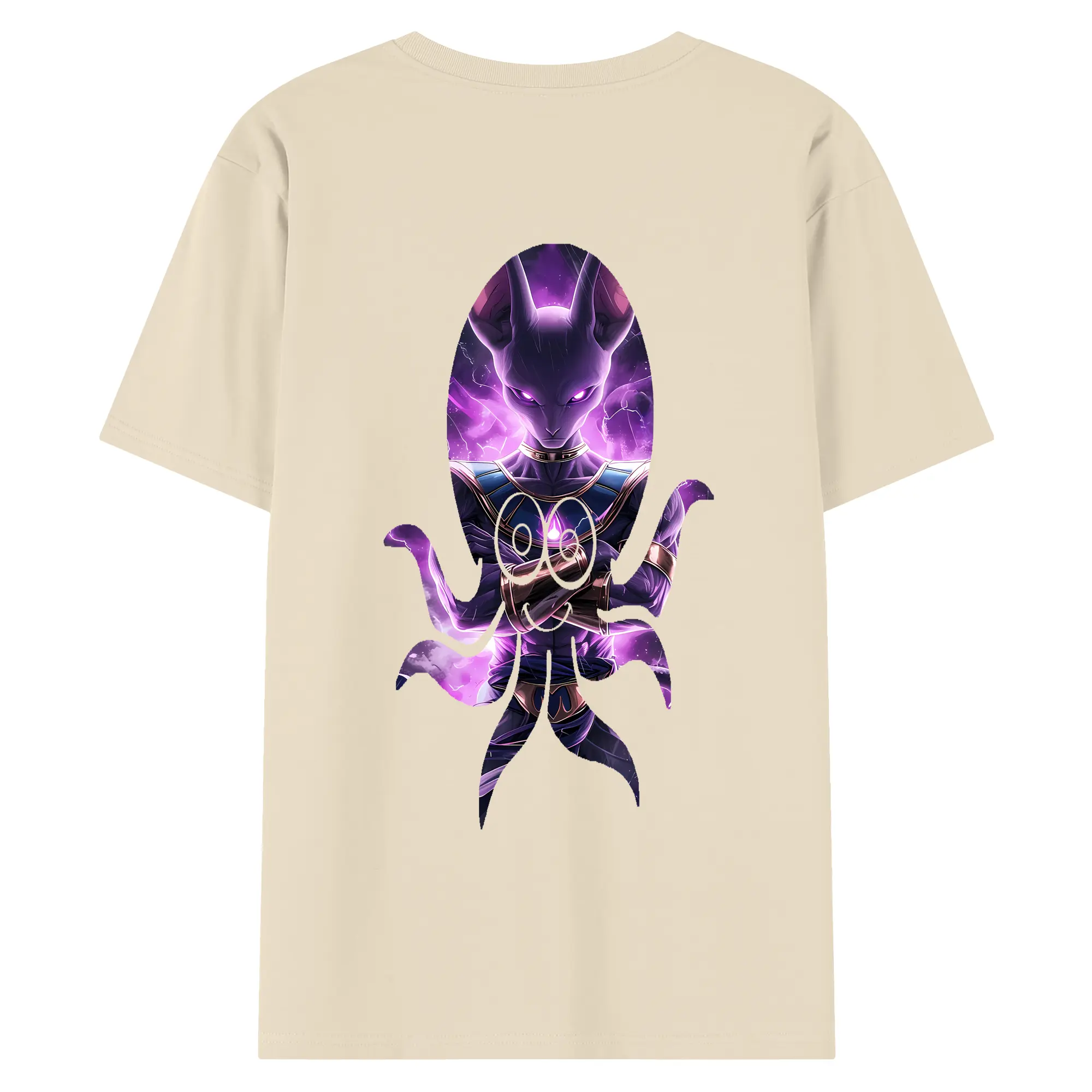 ドラゴンボール グッズ ビルス - 綿100% ヴィンテージ風 半袖Tシャツ ・ 背面プリント ・ 柔らか肌触り ・ 通気性 快適 ・ スポーツ カジュアル 外出用