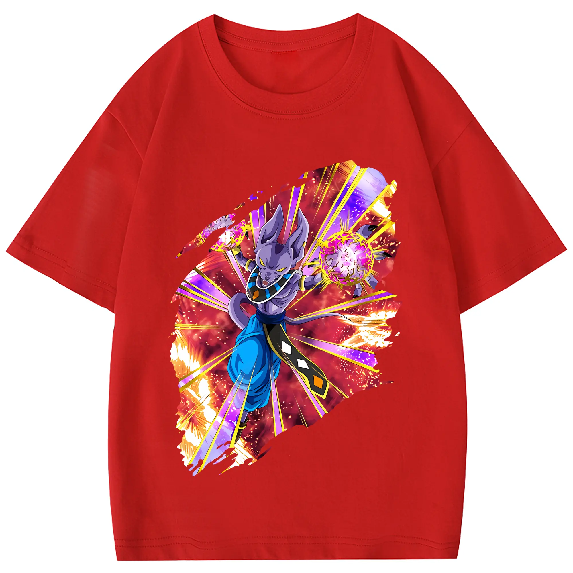 ドラゴンボール グッズ ビルス - 綿100% 半袖Tシャツ ・ フロントプリント ・ 快適 通気性 ・ 日常使い 散歩 スポーツ用
