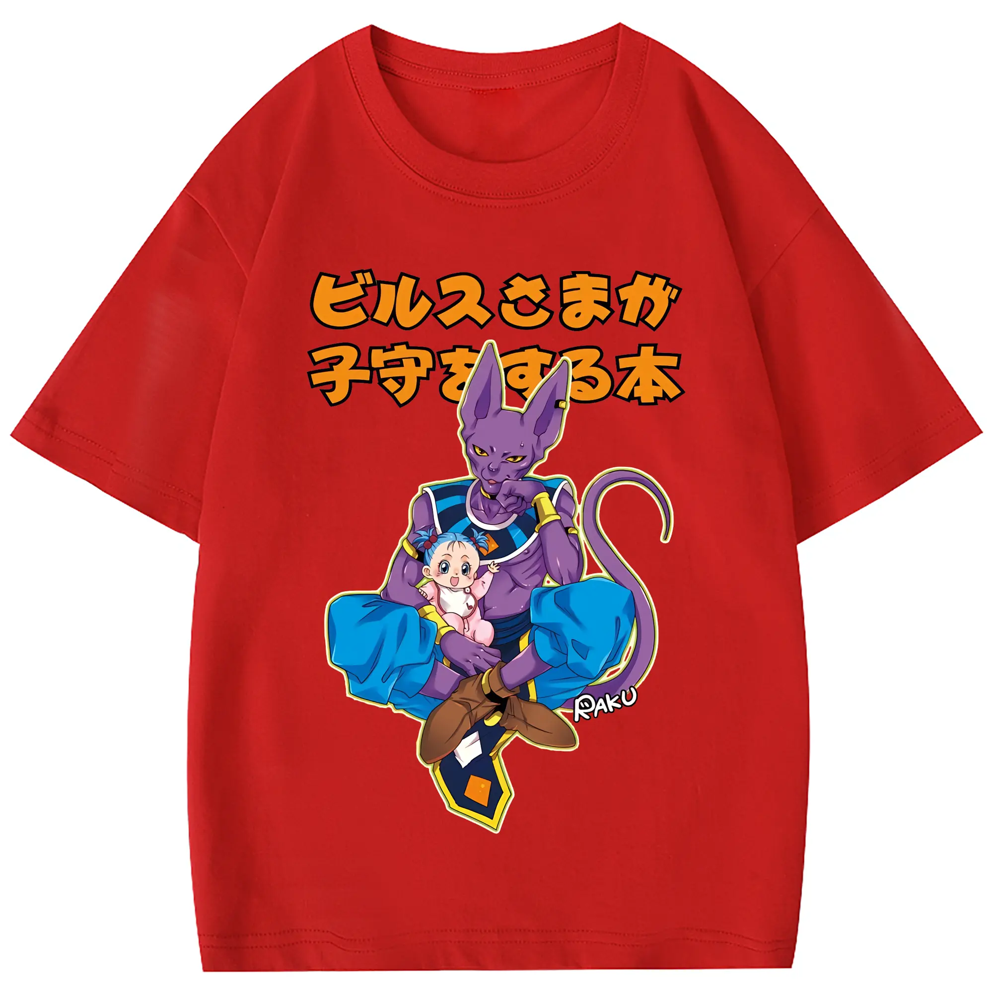 ドラゴンボール グッズ ビルス - 綿100% 半袖Tシャツ ・ フロントプリント ・ 快適 通気性 ・ 日常使い 散歩 スポーツ用