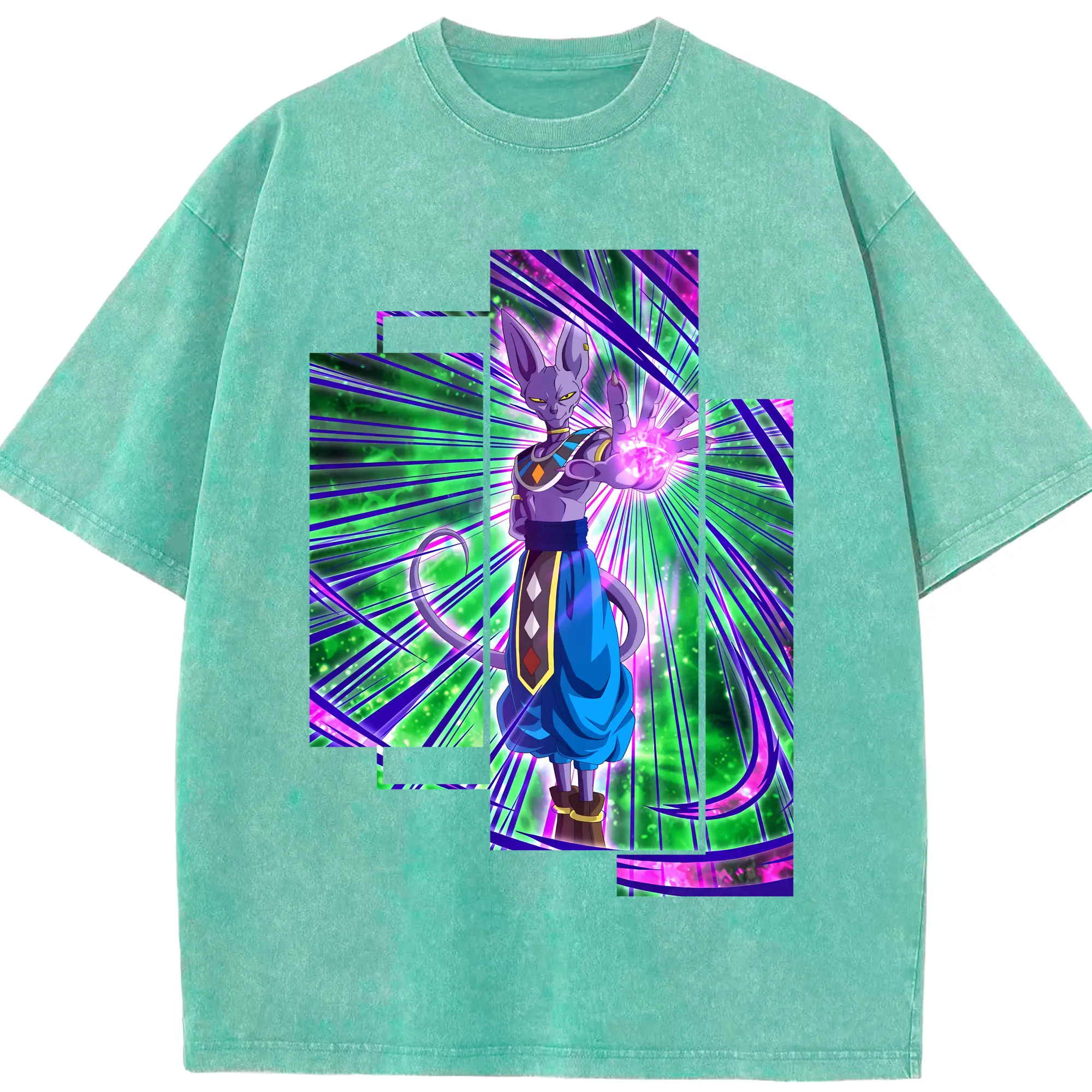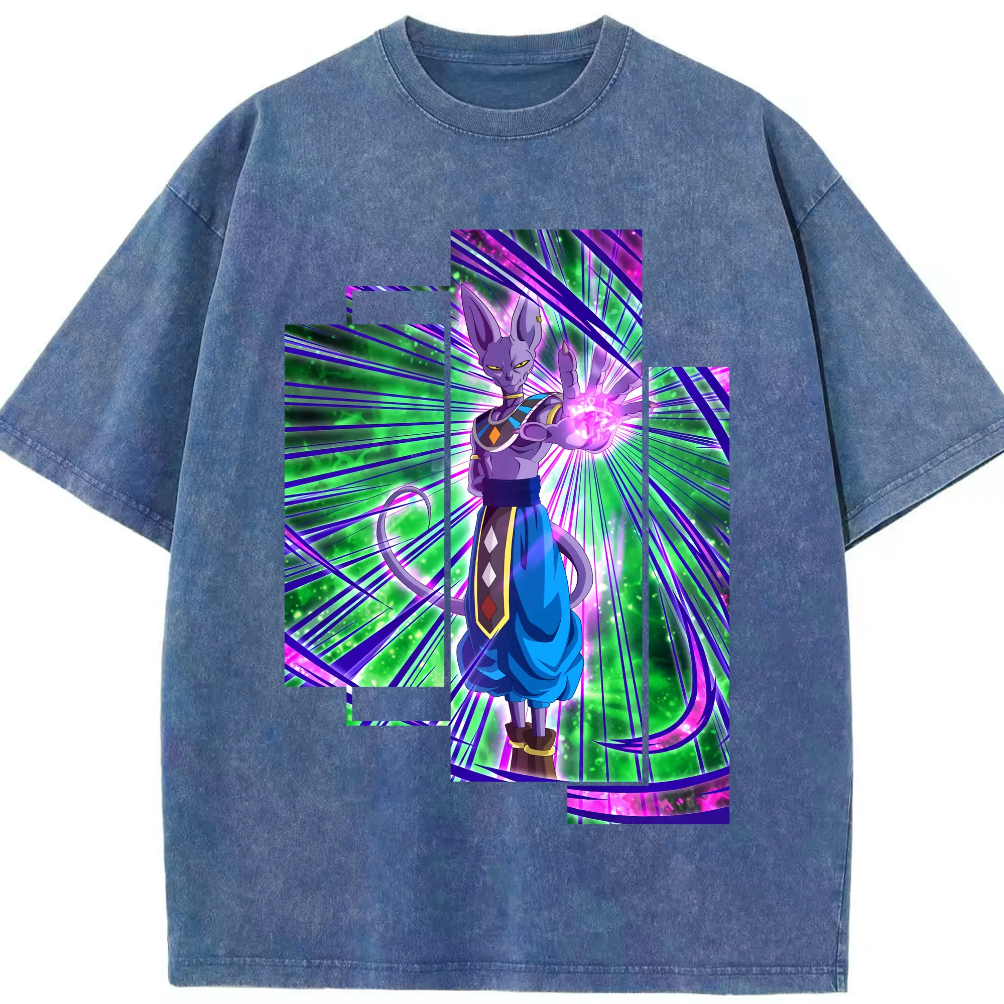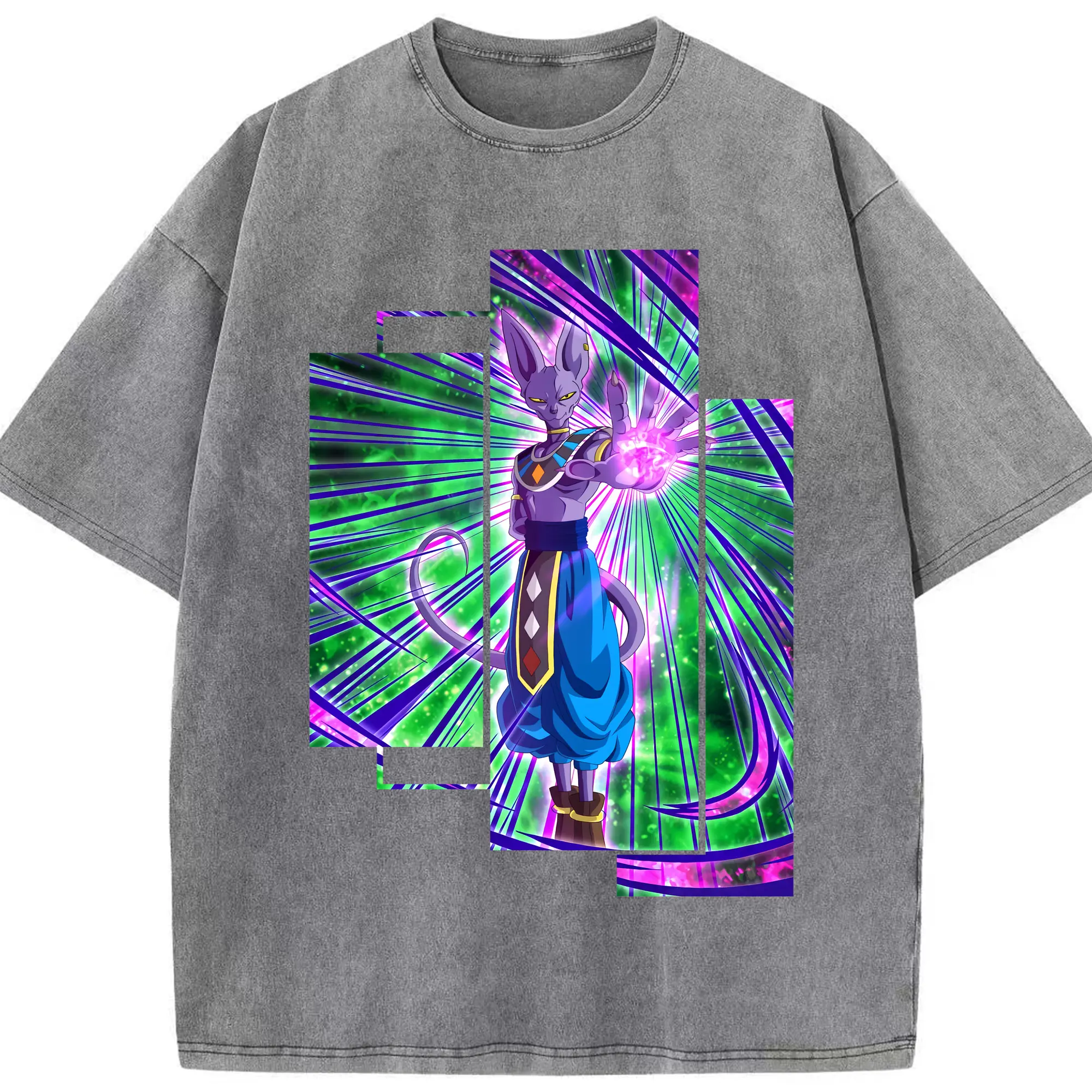ドラゴンボール グッズ ビルス - 綿100% ヴィンテージ風 半袖Tシャツ ・ 背面プリント ・ 柔らか肌触り ・ 通気性 快適 ・ スポーツ カジュアル 外出用