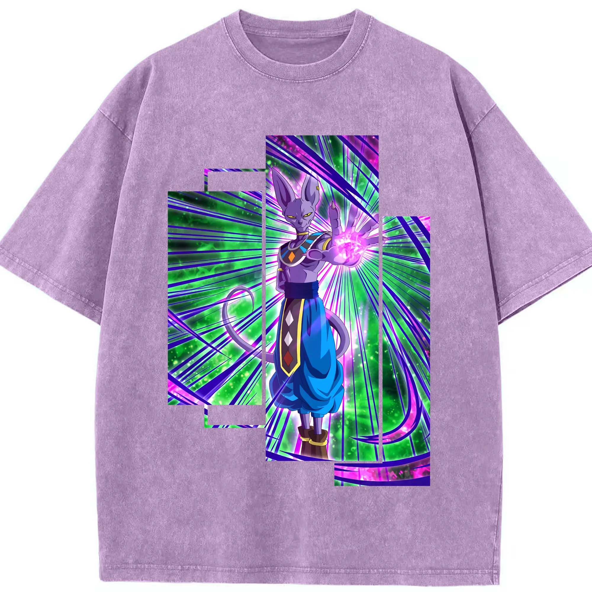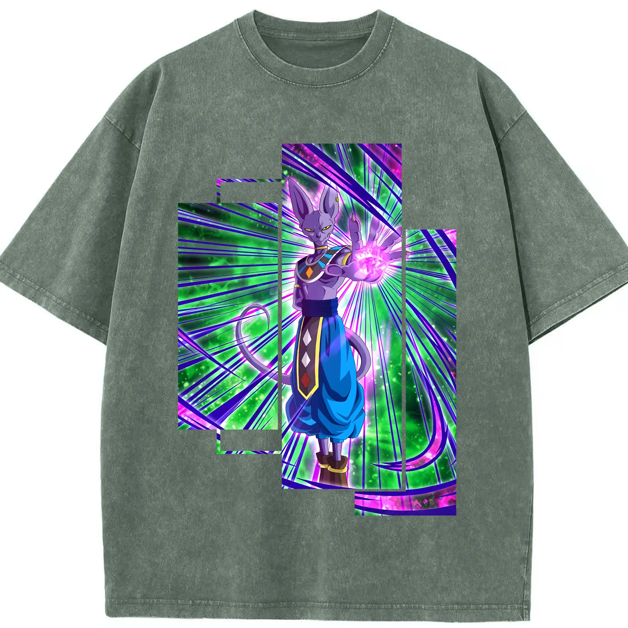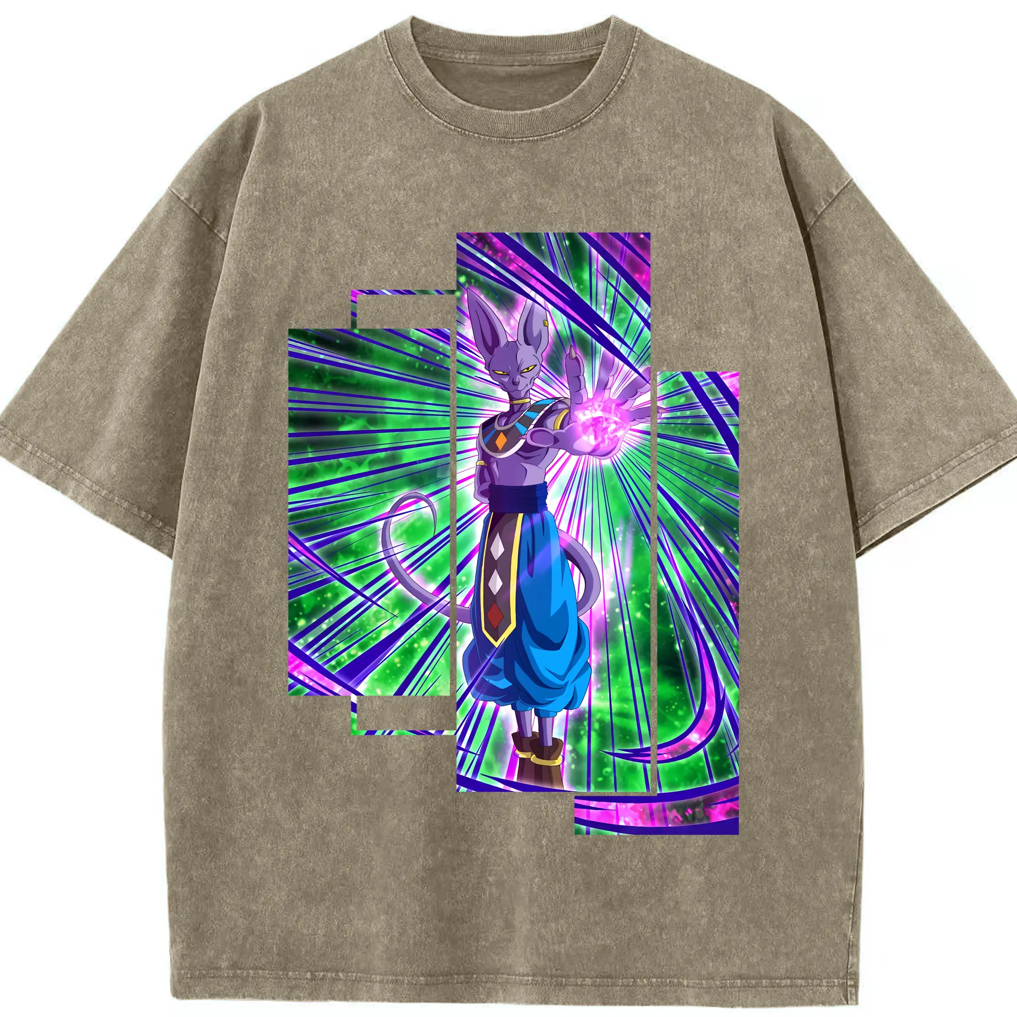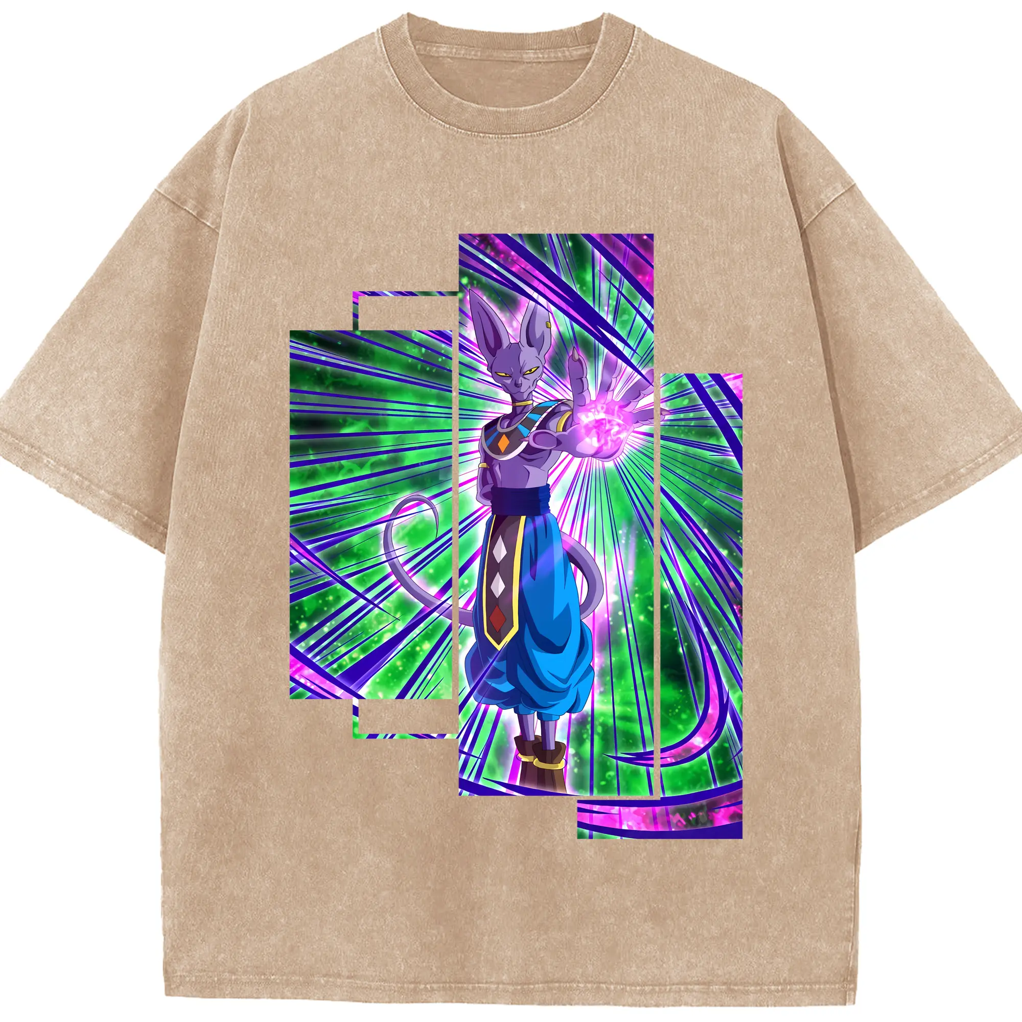 ドラゴンボール グッズ ビルス - 綿100% ヴィンテージ風 半袖Tシャツ ・ 背面プリント ・ 柔らか肌触り ・ 通気性 快適 ・ スポーツ カジュアル 外出用