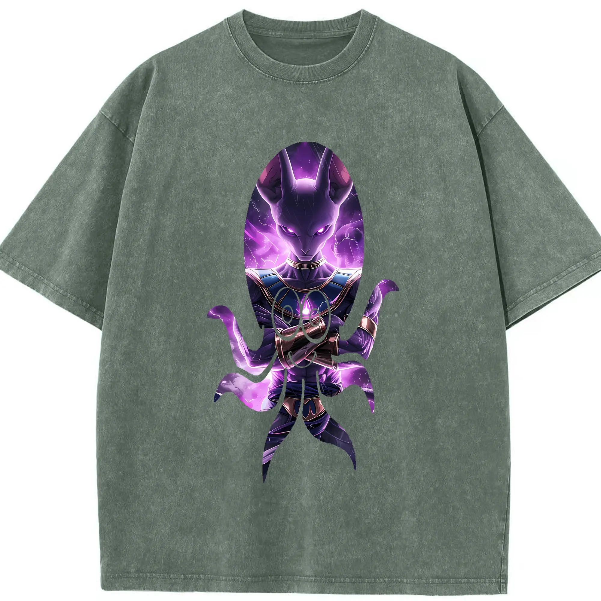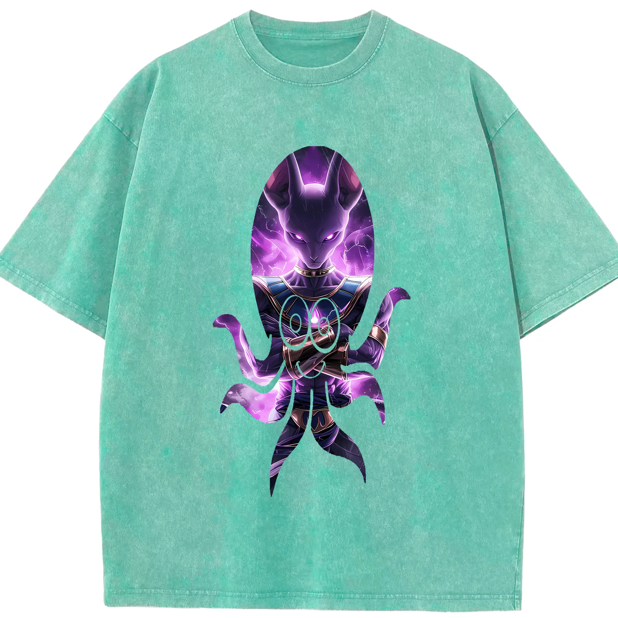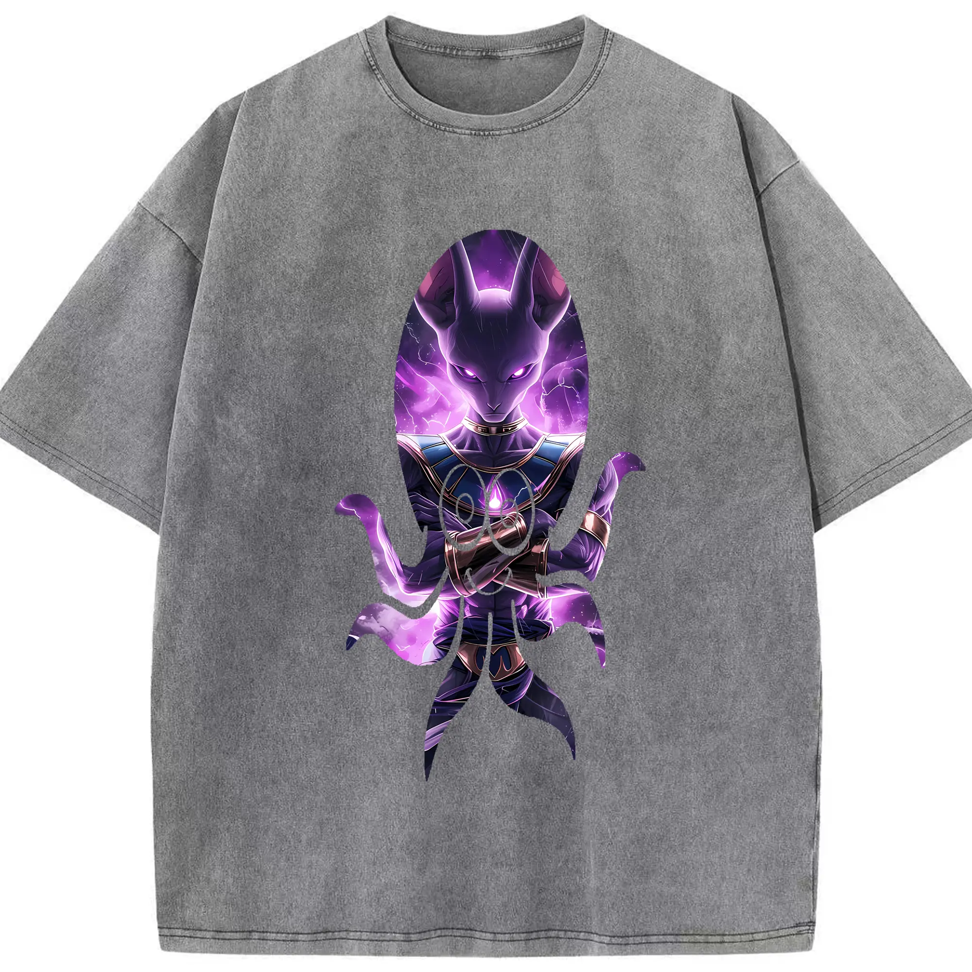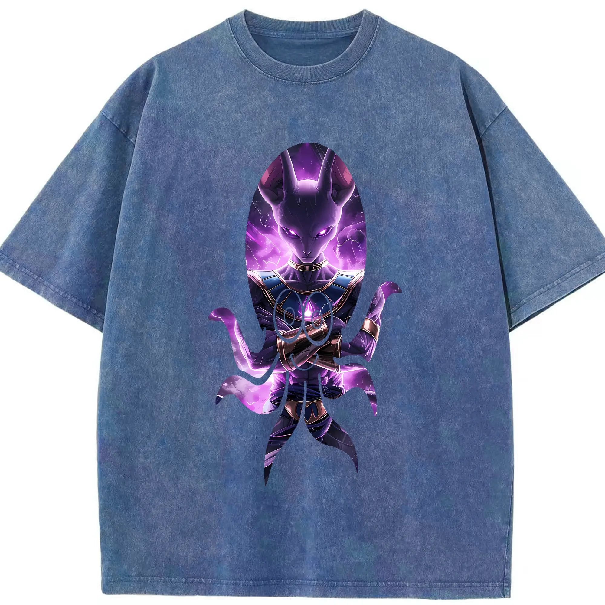 ドラゴンボール グッズ ビルス - 綿100% ヴィンテージ風 半袖Tシャツ ・ 背面プリント ・ 柔らか肌触り ・ 通気性 快適 ・ スポーツ カジュアル 外出用